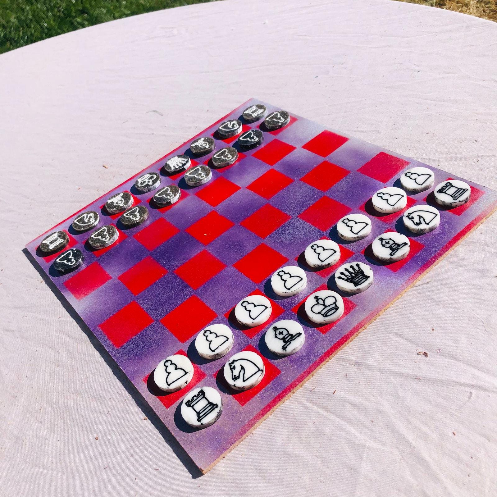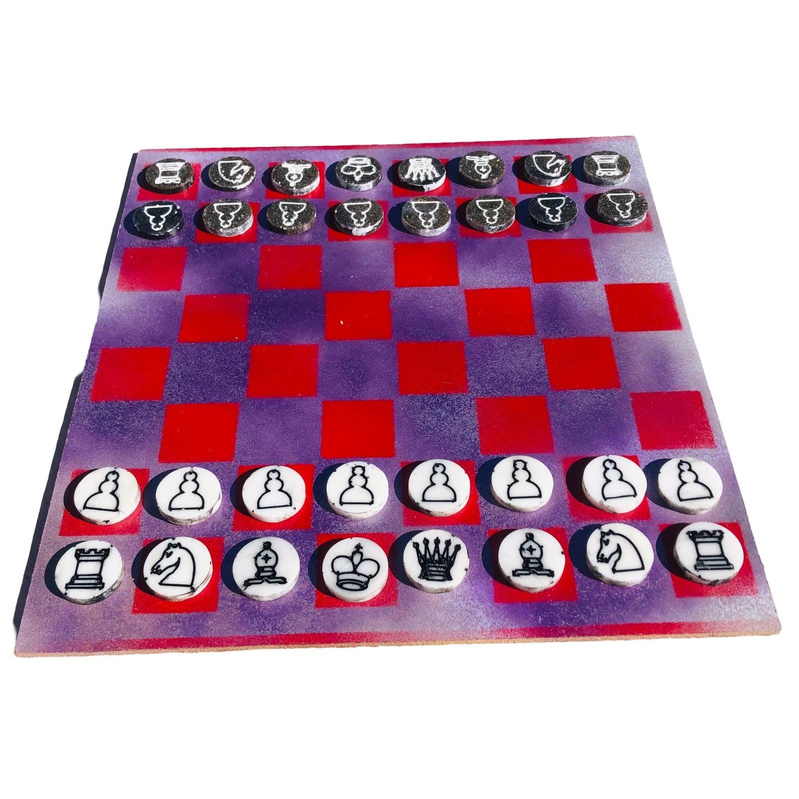 Introducing our exclusive Handcrafted Hardboard Chess Set, meticulously designed with precision and care. Measuring 12 inches by 12 inches, this chess set features a beautifully painted hardwood board that doubles as a work of art. Each set is a unique, one-of-a-kind creation, crafted by hand to ensure that no two sets are alike. Elevate your gaming experience with this exceptional chess set that combines vibrant design with the touch of artisan craftsmanship. This chess board comes with chess pieces.