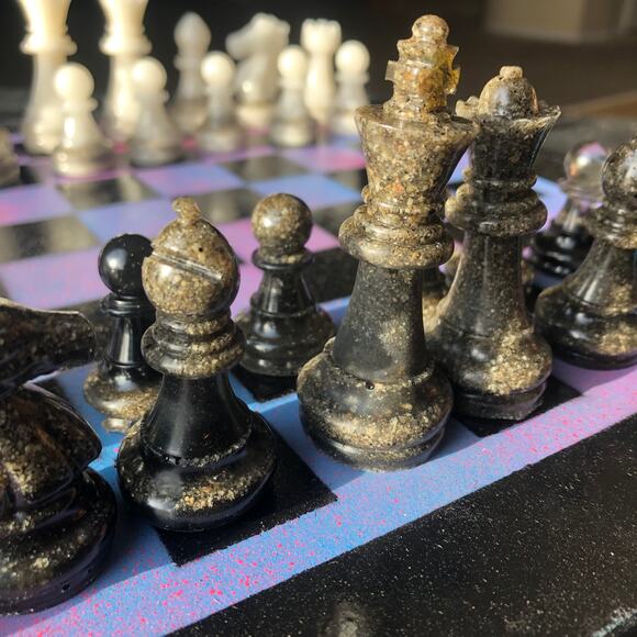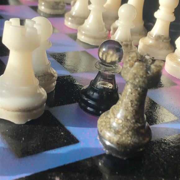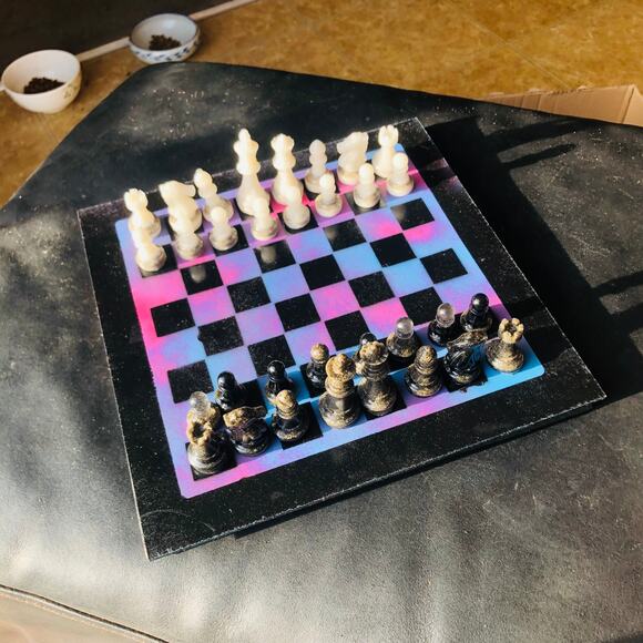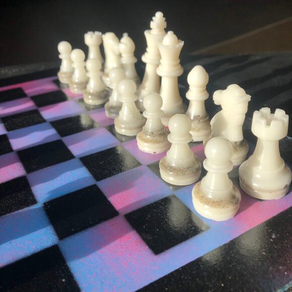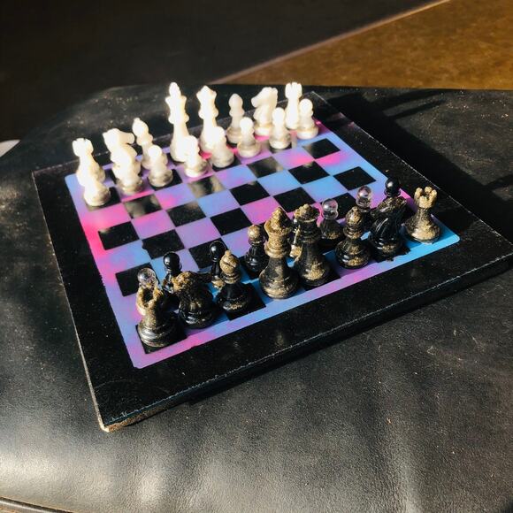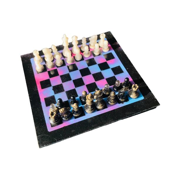 Introducing our exclusive Handcrafted Hardwood Chess Set, meticulously designed with precision and care. Measuring 12 inches by 12 inches, this chess set features a beautifully painted hardwood board that doubles as a work of art. Each set is a unique, one-of-a-kind creation, crafted by hand to ensure that no two sets are alike. Elevate your gaming experience with this exceptional chess set that combines vibrant design with the touch of artisan craftsmanship.