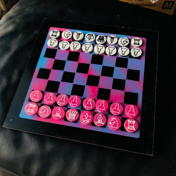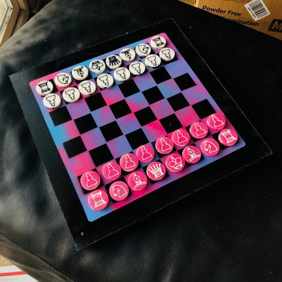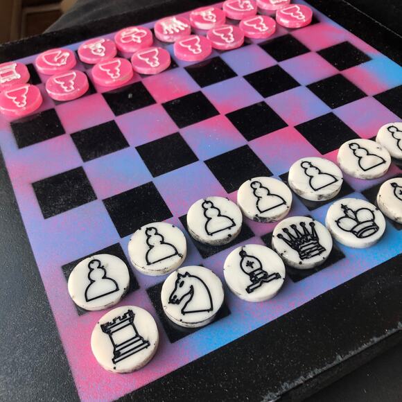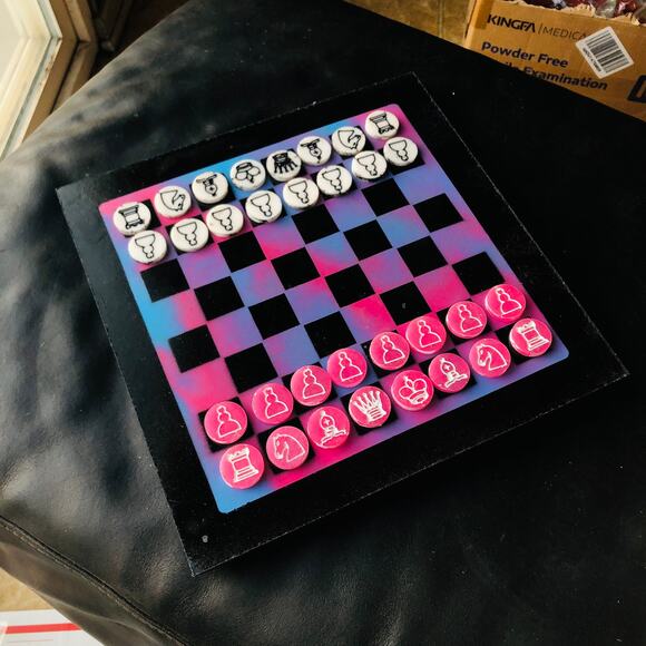 Introducing our exclusive Handcrafted Hardwood Chess Set, meticulously designed with precision and care. Measuring 12 inches by 12 inches, this chess set features a beautifully painted hardwood board that doubles as a work of art. Each set is a unique, one-of-a-kind creation, crafted by hand to ensure that no two sets are alike. Elevate your gaming experience with this exceptional chess set that combines vibrant design with the touch of artisan craftsmanship.