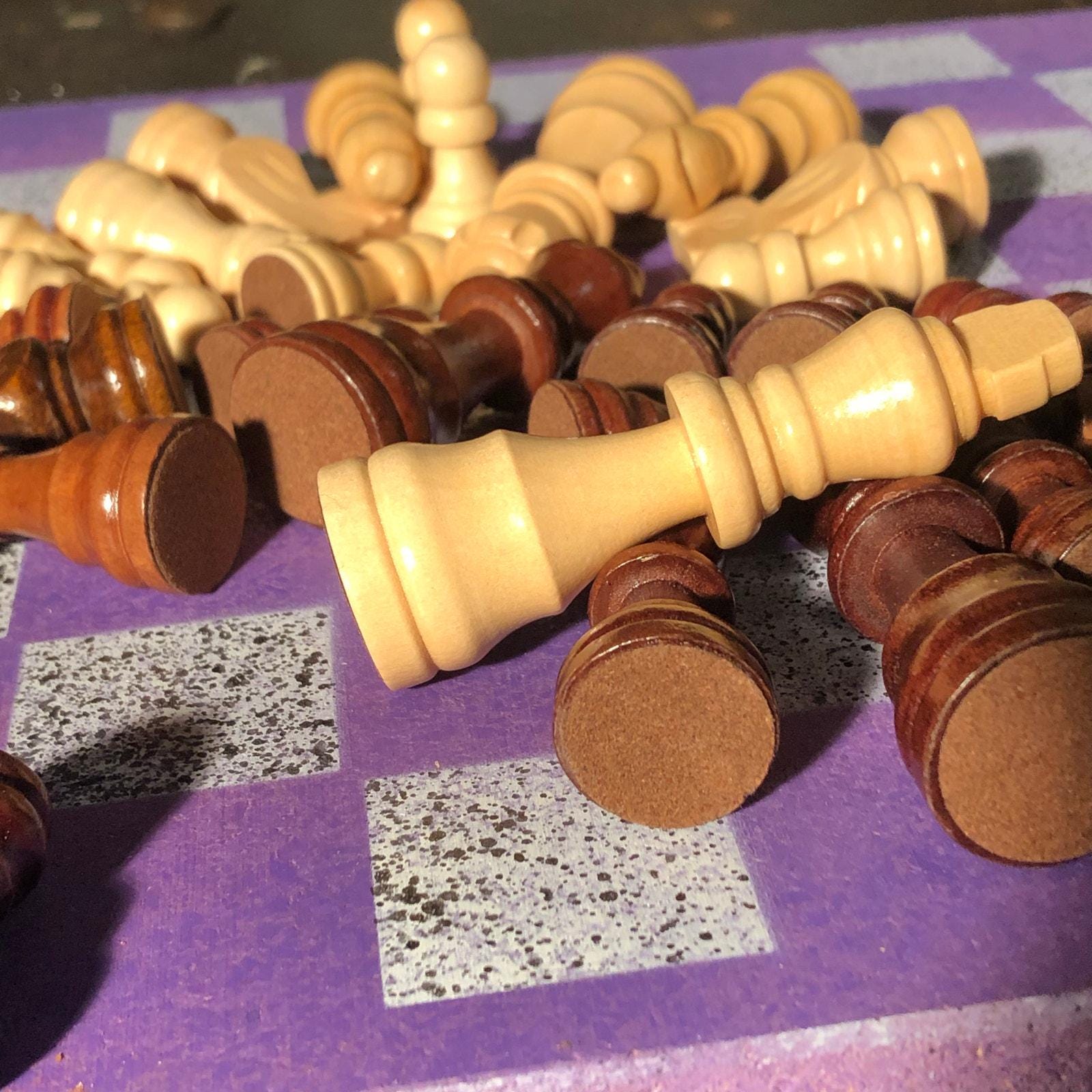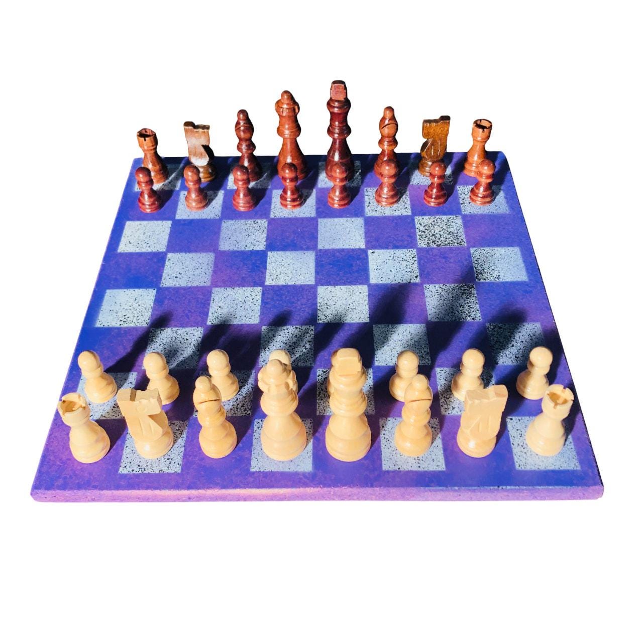 Introducing our exclusive Handcrafted Wooden Chess Set, meticulously designed with precision and care. Measuring 12 inches by 12 inches, this chess set features a beautifully painted Particle Board board that doubles as a work of art. Each set is a unique, one-of-a-kind creation, crafted by hand to ensure that no two sets are alike. Elevate your gaming experience with this exceptional chess set that combines vibrant design with the touch of artisan craftsmanship. This chess board comes with chess pieces.