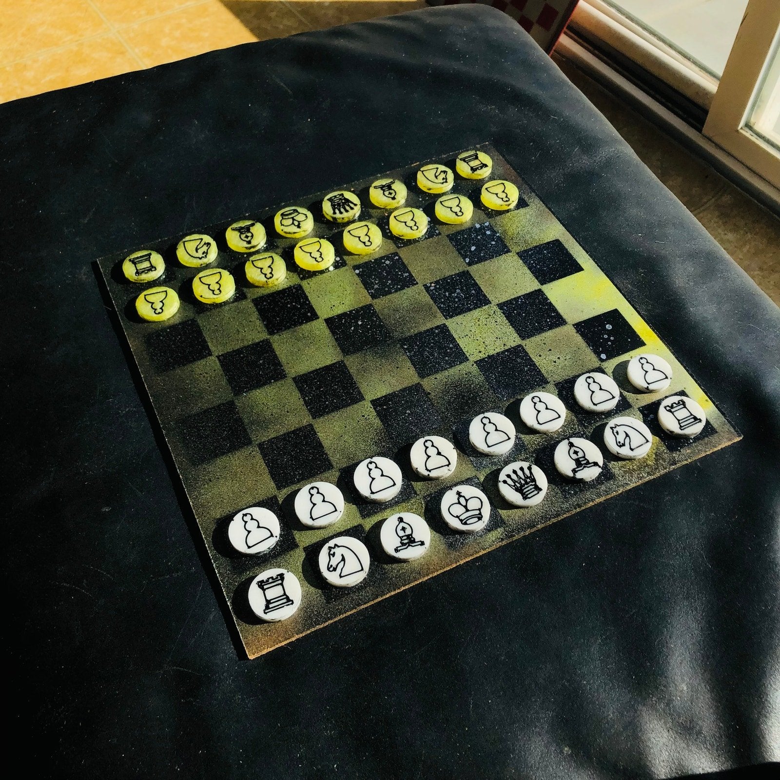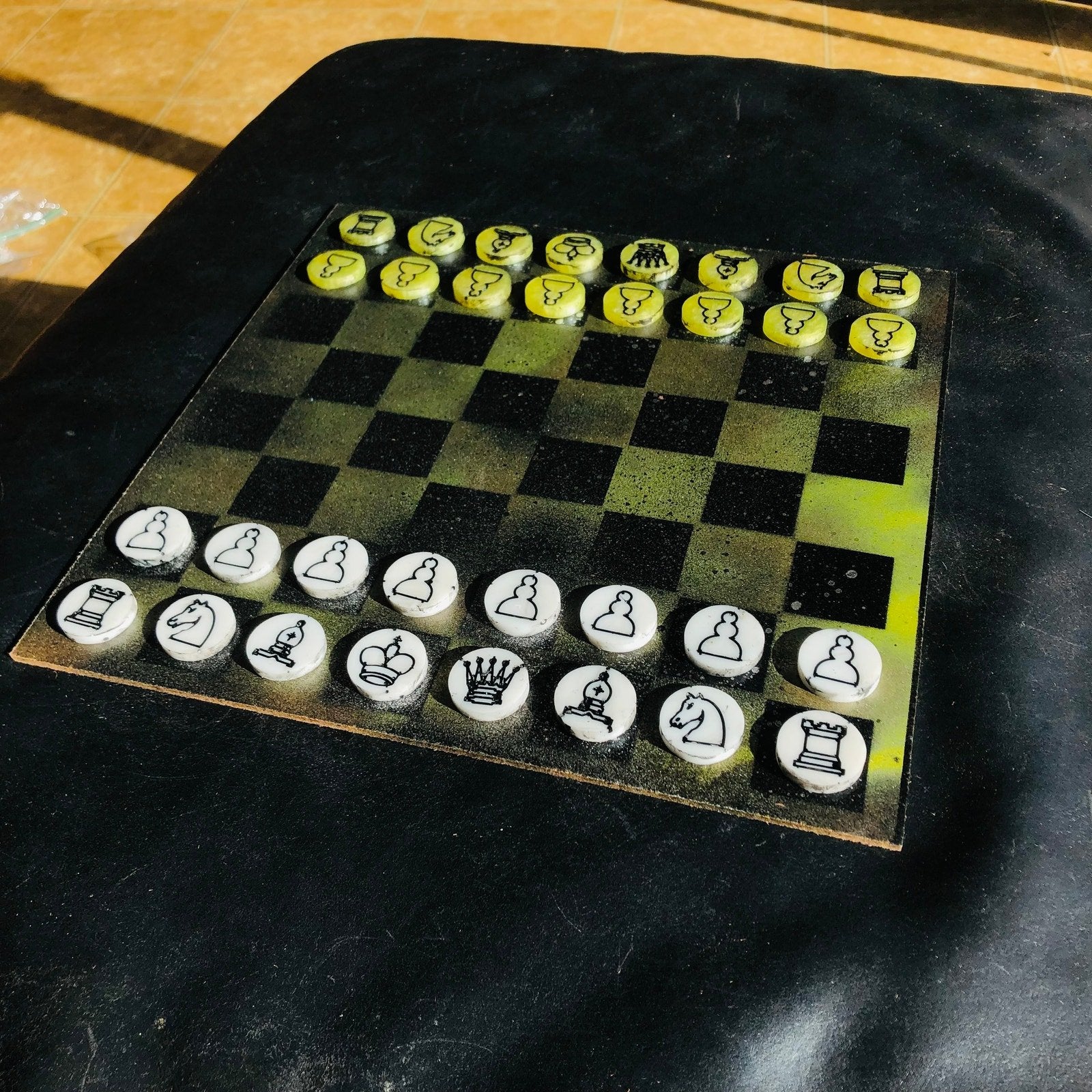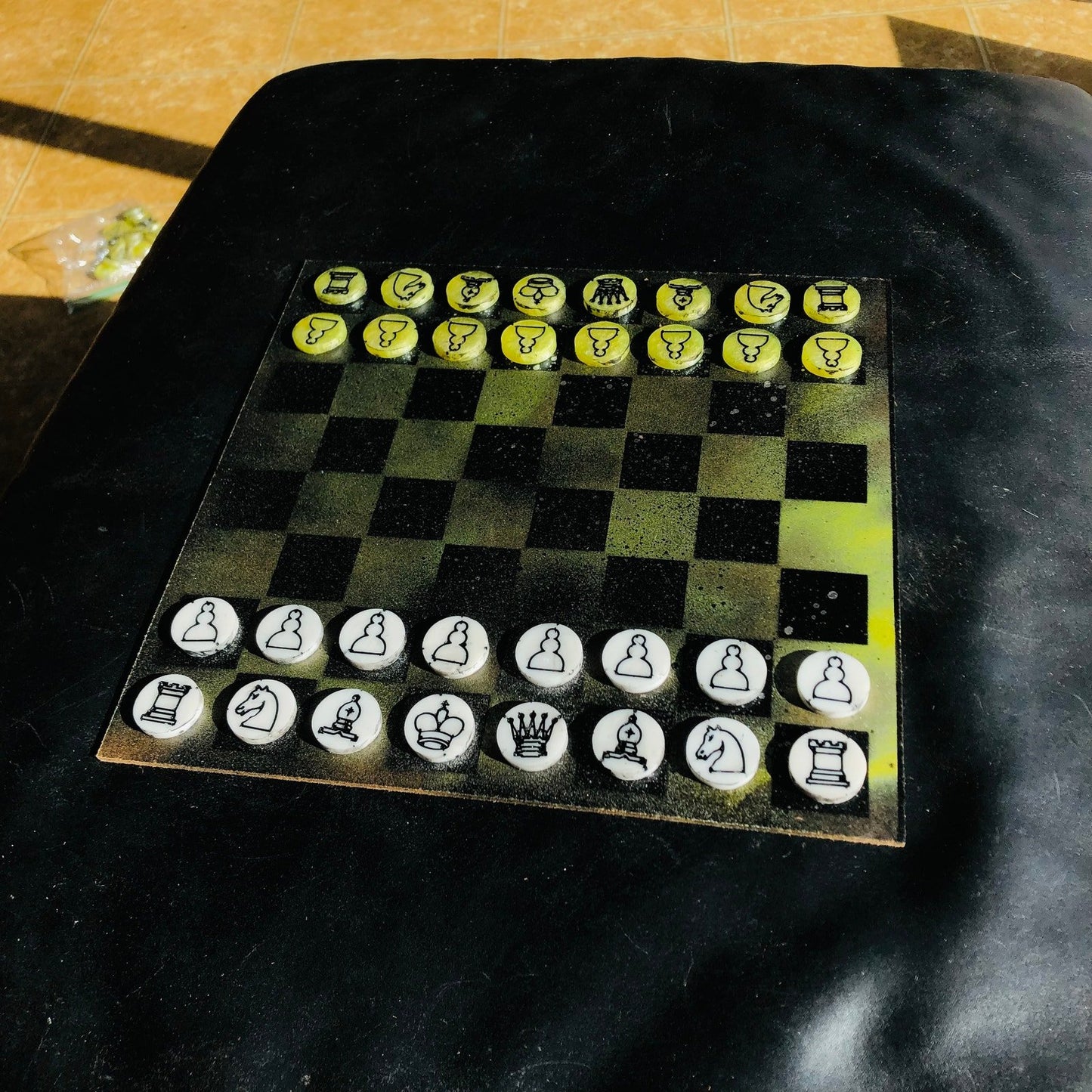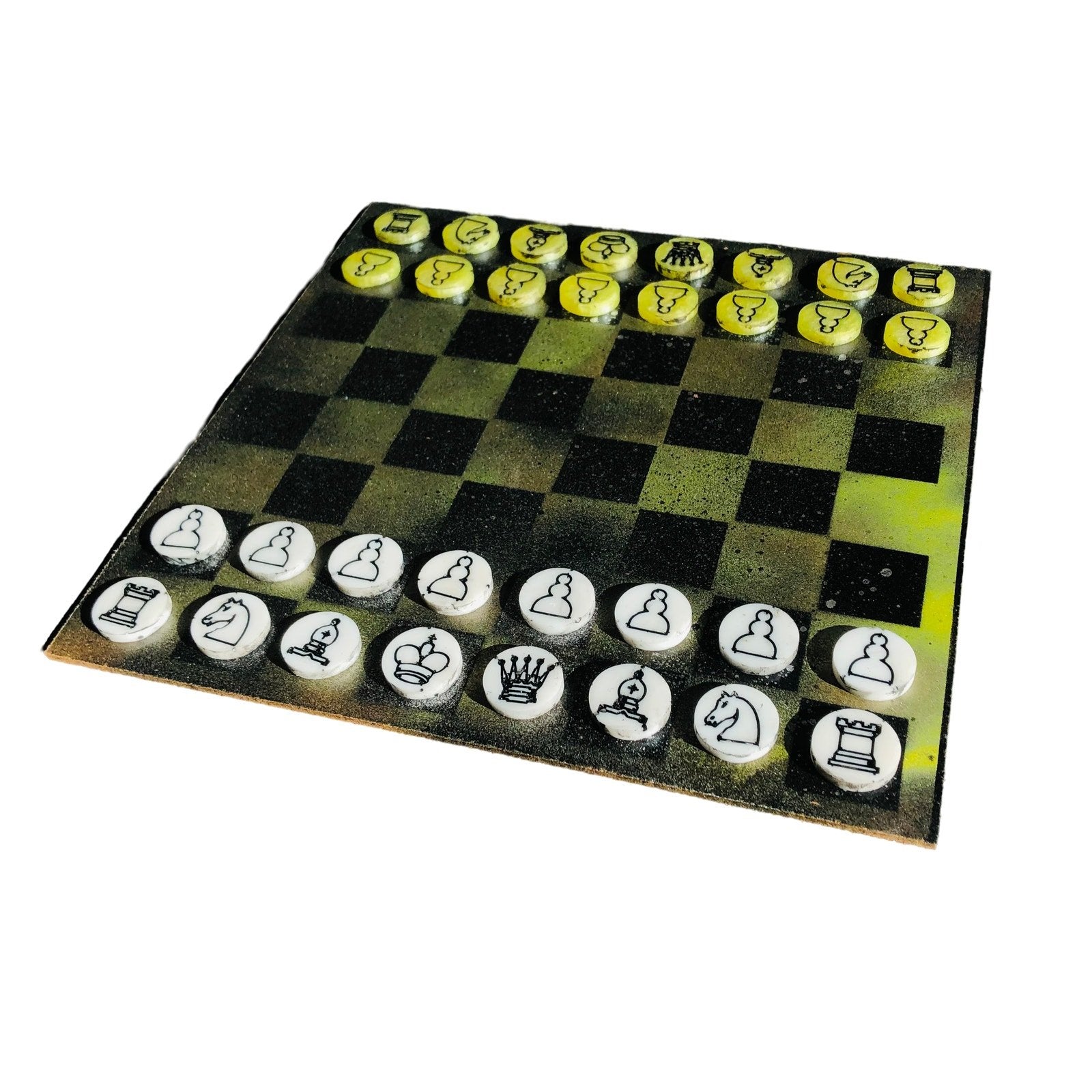 Introducing our exclusive Handcrafted Hardboard Chess Set, meticulously designed with precision and care. Measuring 12 inches by 12 inches, this chess set features a beautifully painted hardwood board that doubles as a work of art. Each set is a unique, one-of-a-kind creation, crafted by hand to ensure that no two sets are alike. Elevate your gaming experience with this exceptional chess set that combines vibrant design with the touch of artisan craftsmanship.