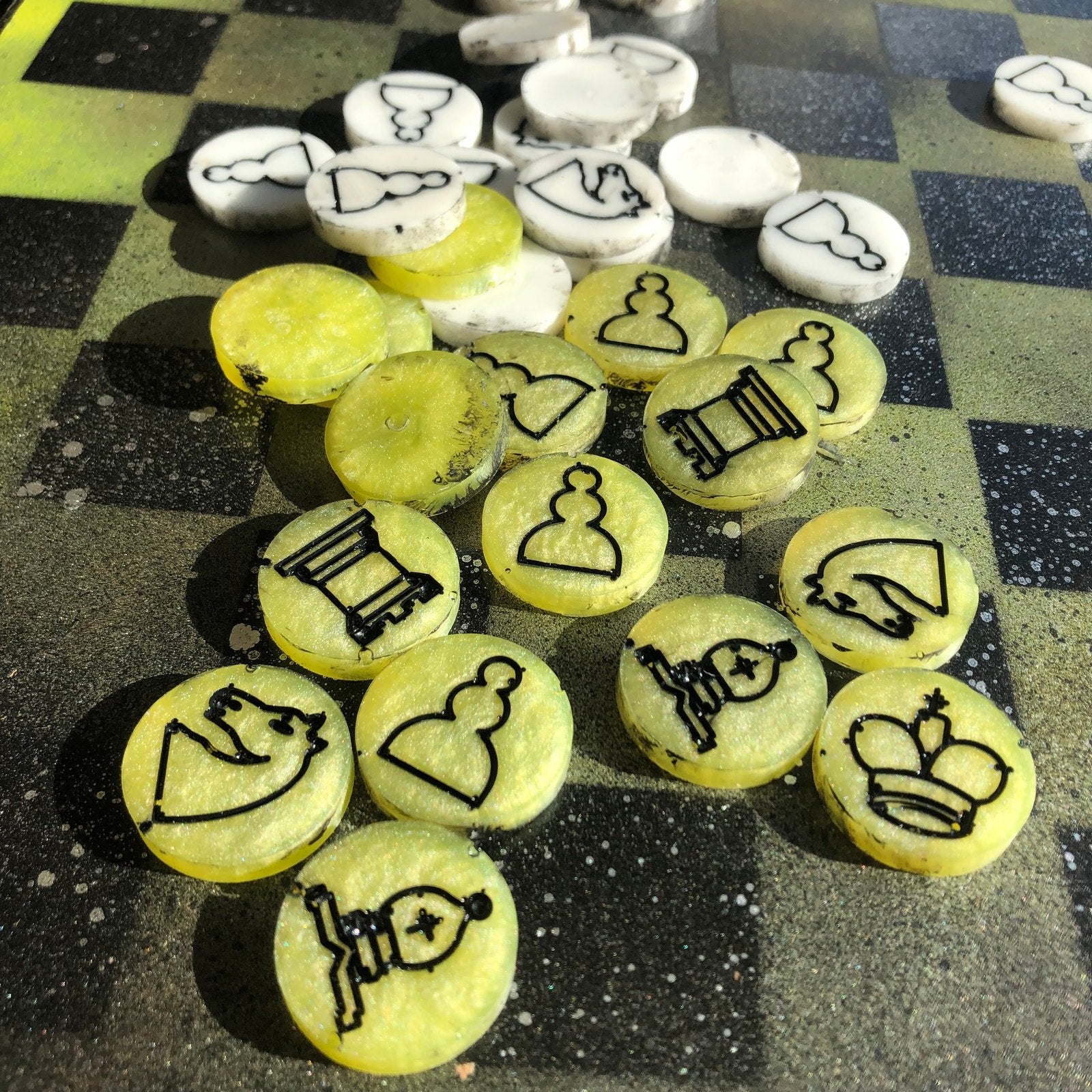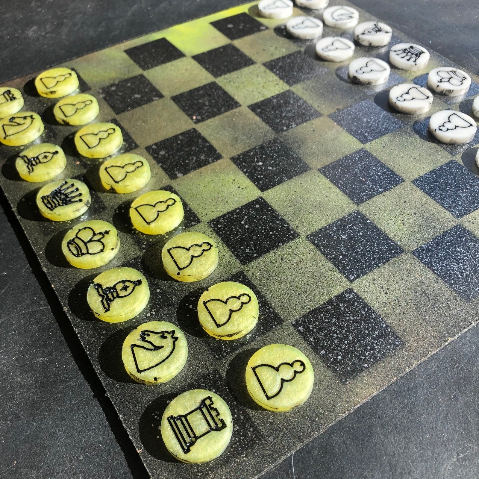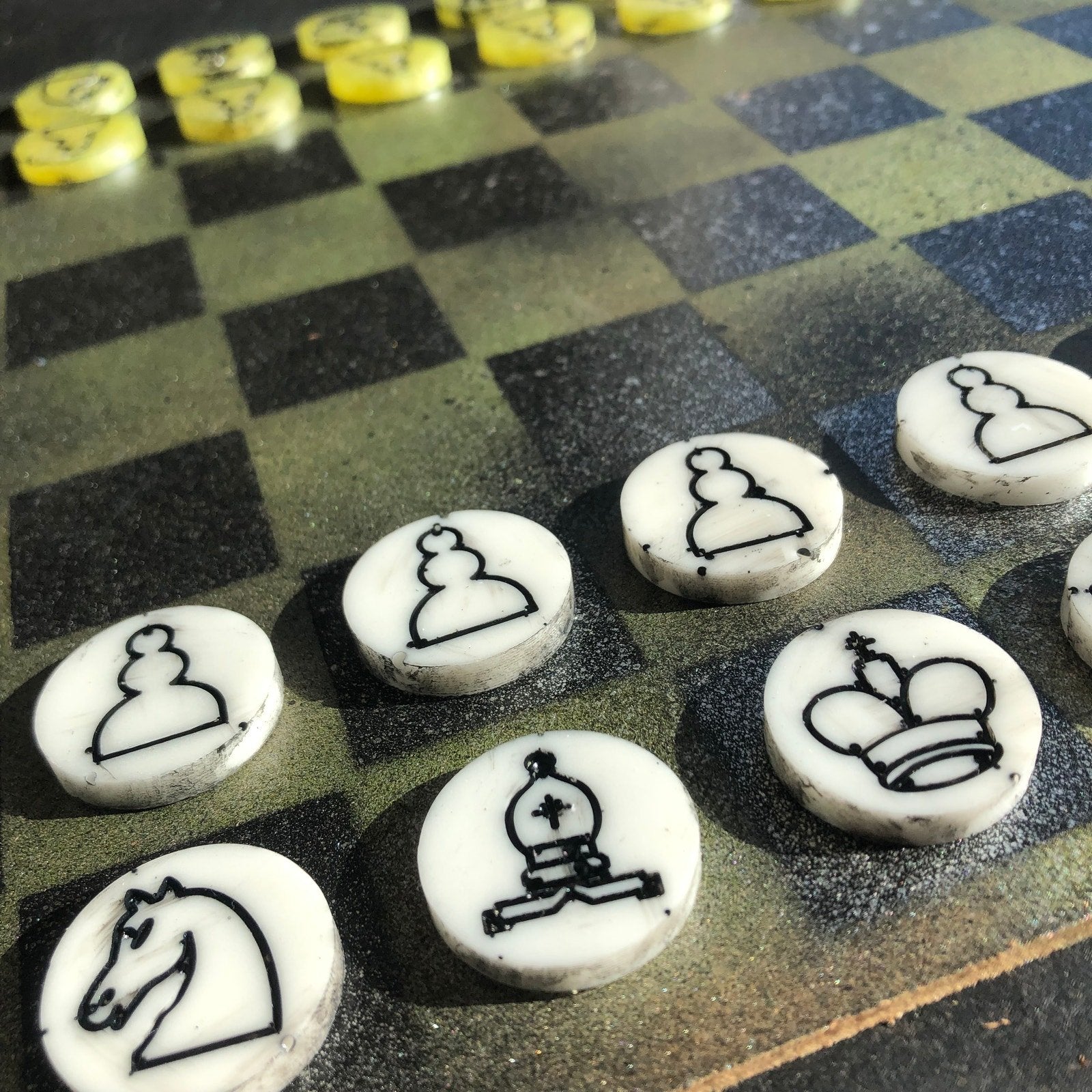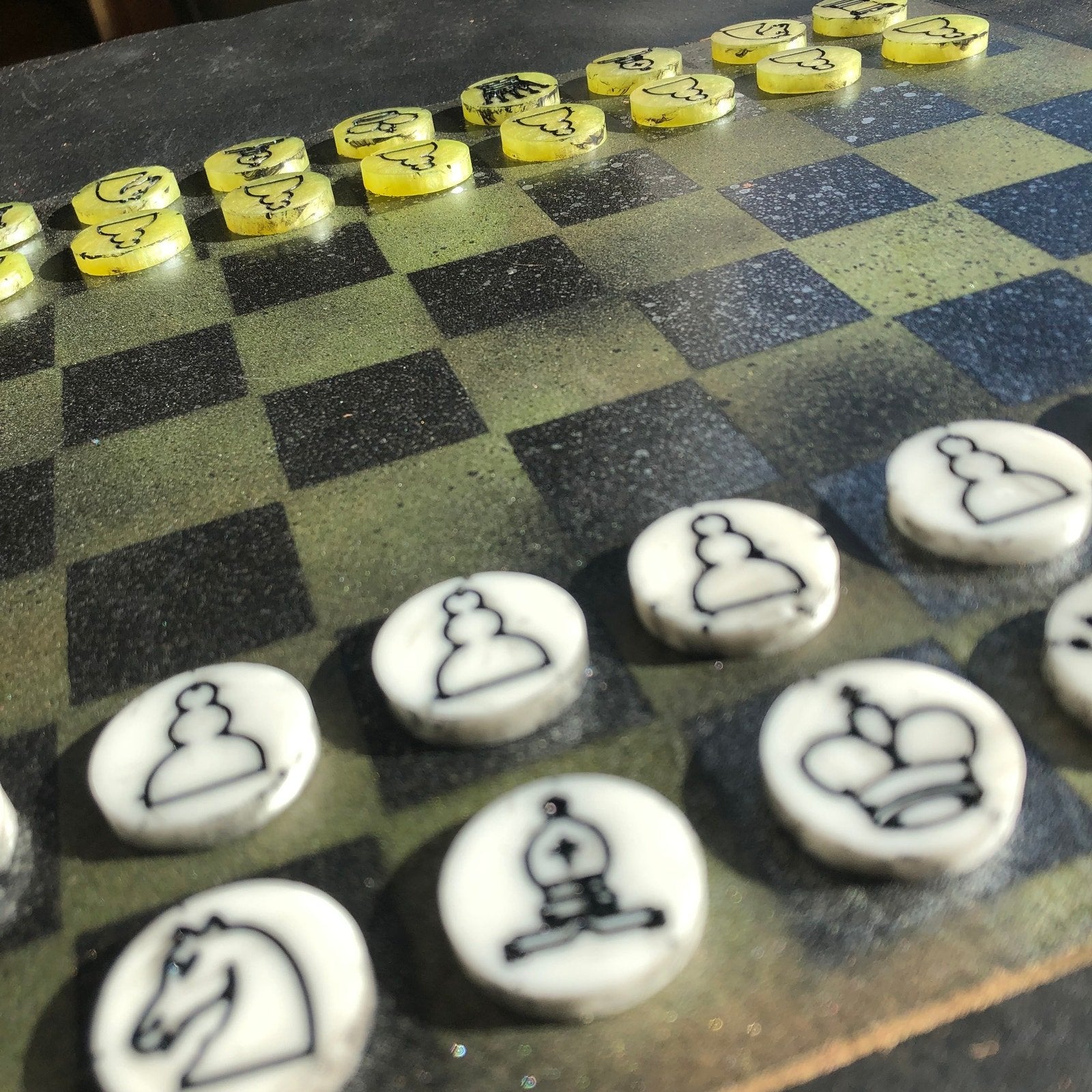 Introducing our exclusive Handcrafted Hardboard Chess Set, meticulously designed with precision and care. Measuring 12 inches by 12 inches, this chess set features a beautifully painted hardwood board that doubles as a work of art. Each set is a unique, one-of-a-kind creation, crafted by hand to ensure that no two sets are alike. Elevate your gaming experience with this exceptional chess set that combines vibrant design with the touch of artisan craftsmanship.