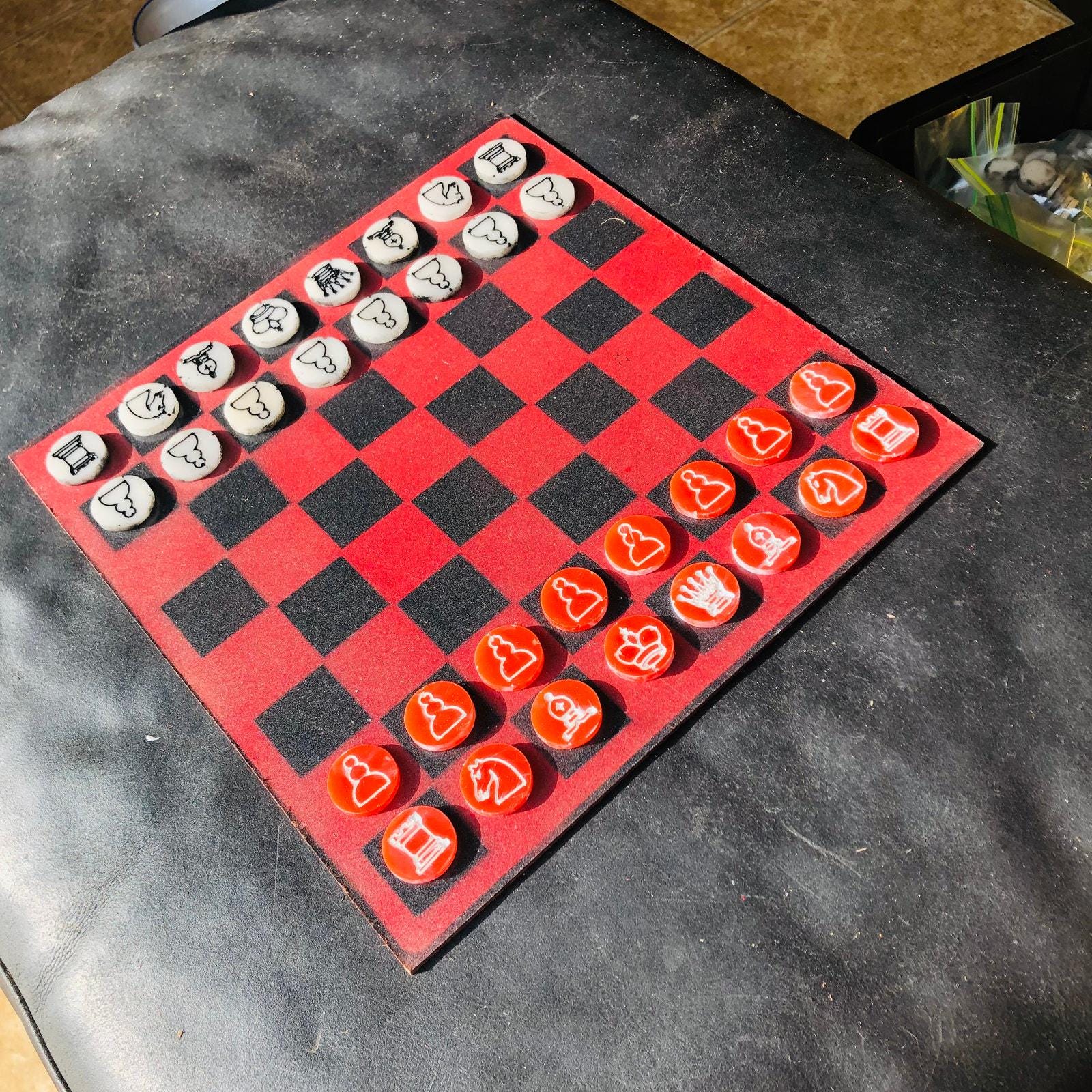 Introducing our exclusive Handcrafted Hardboard Chess Set, meticulously designed with precision and care. Measuring 12 inches by 12 inches, this chess set features a beautifully painted hardwood board that doubles as a work of art. Each set is a unique, one-of-a-kind creation, crafted by hand to ensure that no two sets are alike. Elevate your gaming experience with this exceptional chess set that combines vibrant design with the touch of artisan craftsmanship. This chess board comes with chess pieces.