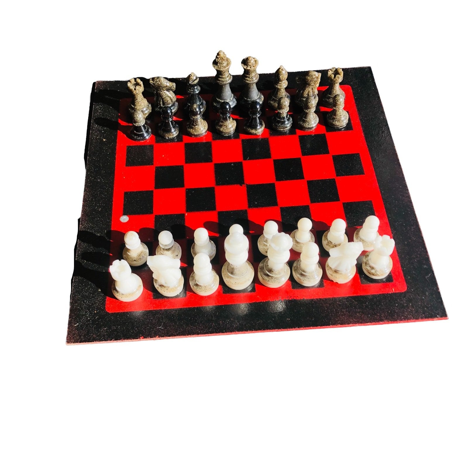 Introducing our exclusive Handcrafted Hardboard Chess Set, meticulously designed with precision and care. Measuring 12 inches by 12 inches, this chess set features a beautifully painted hardwood board that doubles as a work of art. Each set is a unique, one-of-a-kind creation, crafted by hand to ensure that no two sets are alike. Elevate your gaming experience with this exceptional chess set that combines vibrant design with the touch of artisan craftsmanship.