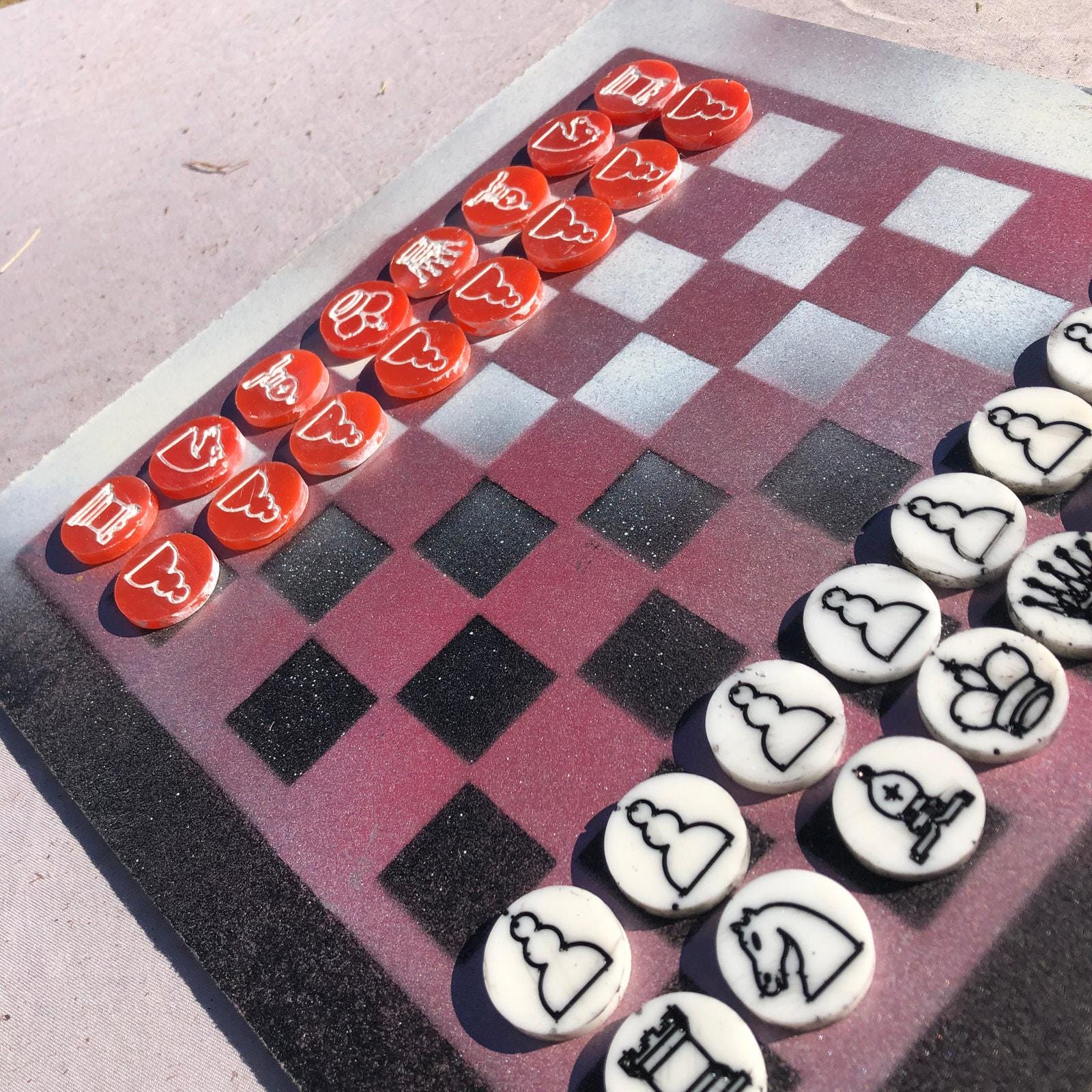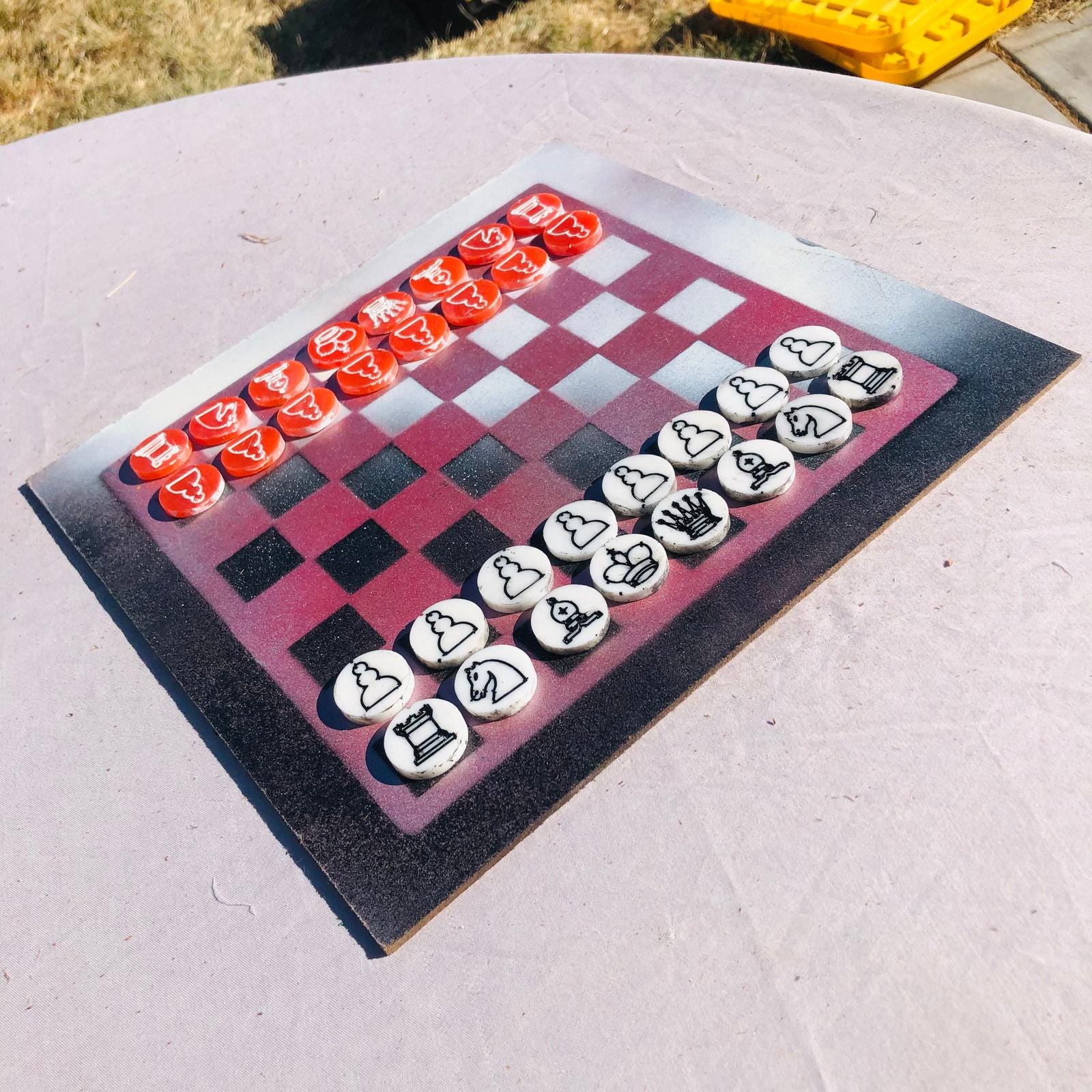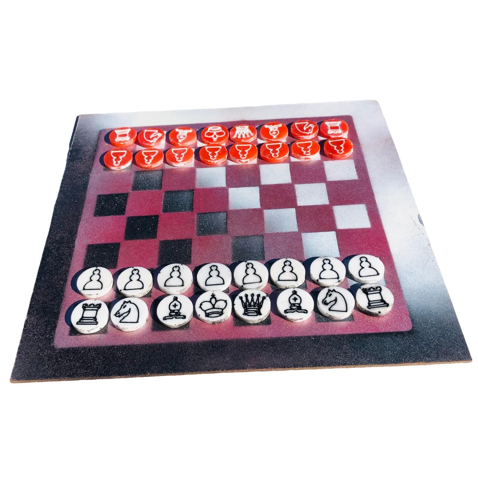 Introducing our exclusive Handcrafted Hardboard Chess Set, meticulously designed with precision and care. Measuring 12 inches by 12 inches, this chess set features a beautifully painted hardwood board that doubles as a work of art. Each set is a unique, one-of-a-kind creation, crafted by hand to ensure that no two sets are alike. Elevate your gaming experience with this exceptional chess set that combines vibrant design with the touch of artisan craftsmanship. This chess board comes with chess pieces.