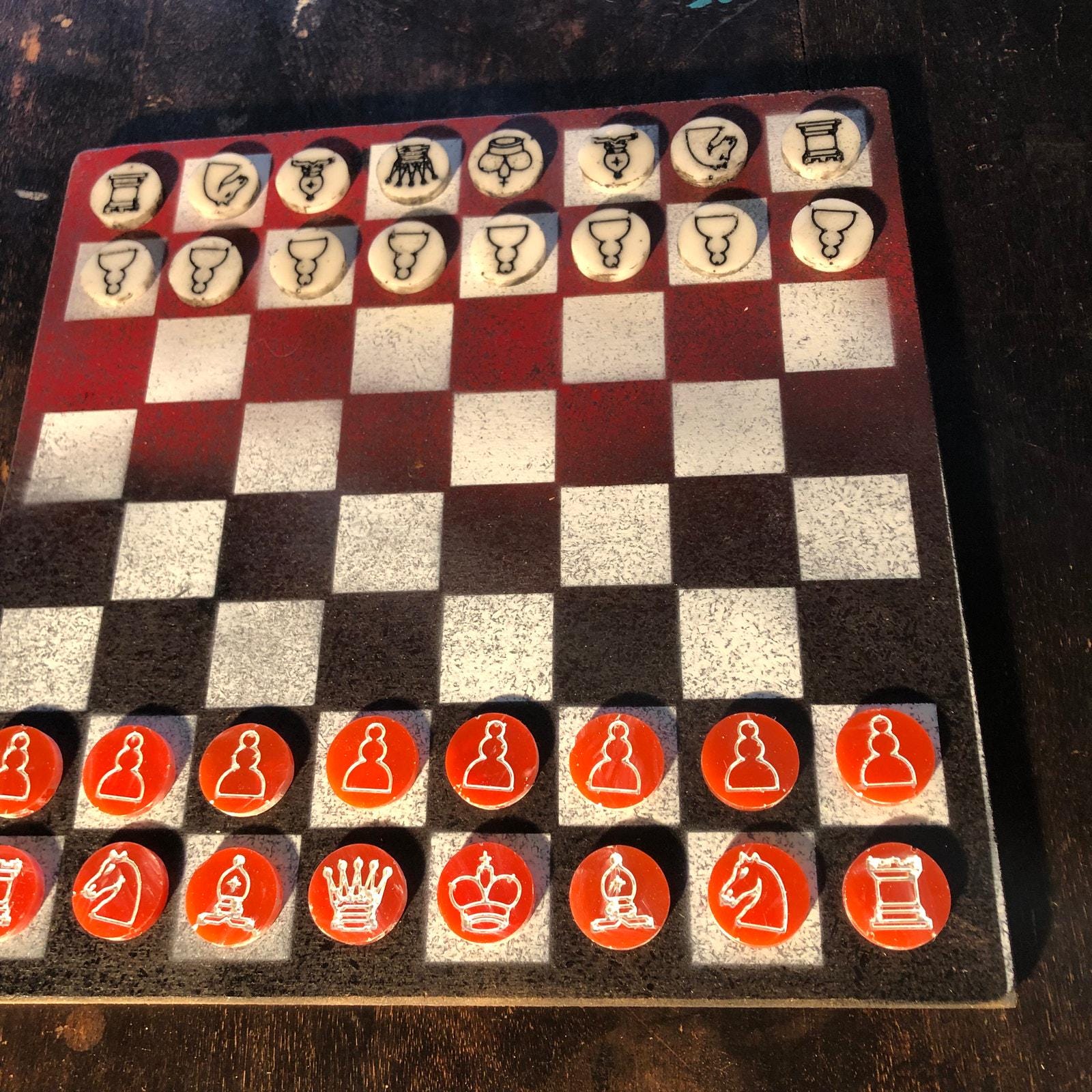 Introducing our exclusive Handcrafted Wooden Chess Set, meticulously designed with precision and care. Measuring 12 inches by 12 inches, this chess set features a beautifully painted Particle Board board that doubles as a work of art. Each set is a unique, one-of-a-kind creation, crafted by hand to ensure that no two sets are alike. Elevate your gaming experience with this exceptional chess set that combines vibrant design with the touch of artisan craftsmanship. This chess board comes with chess pieces.