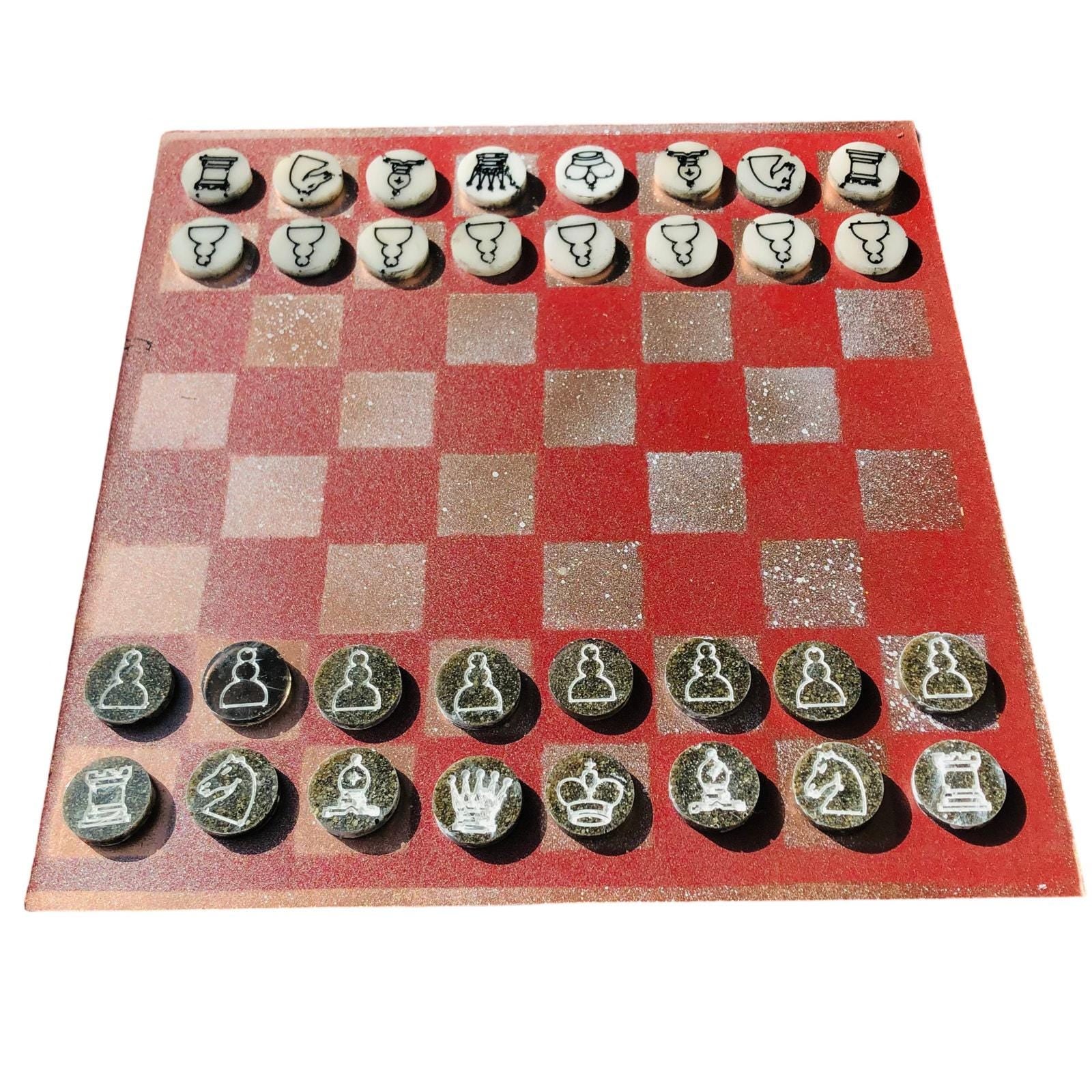 Introducing our exclusive Handcrafted Hardboard Chess Set, meticulously designed with precision and care. Measuring 12 inches by 12 inches, this chess set features a beautifully painted hardwood board that doubles as a work of art. Each set is a unique, one-of-a-kind creation, crafted by hand to ensure that no two sets are alike. Elevate your gaming experience with this exceptional chess set that combines vibrant design with the touch of artisan craftsmanship. This chess board comes with chess pieces.