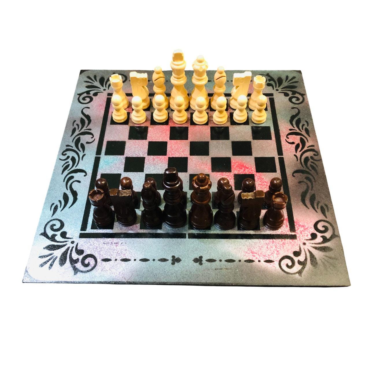 Introducing our exclusive Handcrafted Hardboard Chess Set, meticulously designed with precision and care. Measuring 12 inches by 12 inches, this chess set features a beautifully painted hardwood board that doubles as a work of art. Each set is a unique, one-of-a-kind creation, crafted by hand to ensure that no two sets are alike. Elevate your gaming experience with this exceptional chess set that combines vibrant design with the touch of artisan craftsmanship.