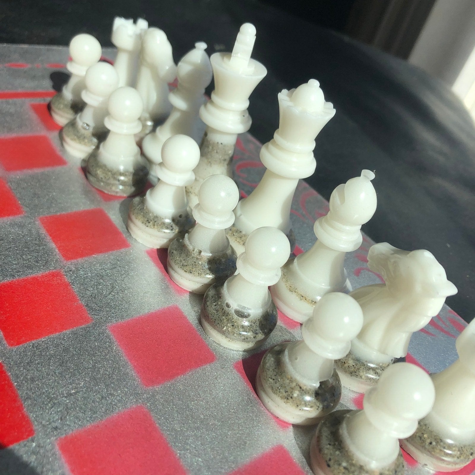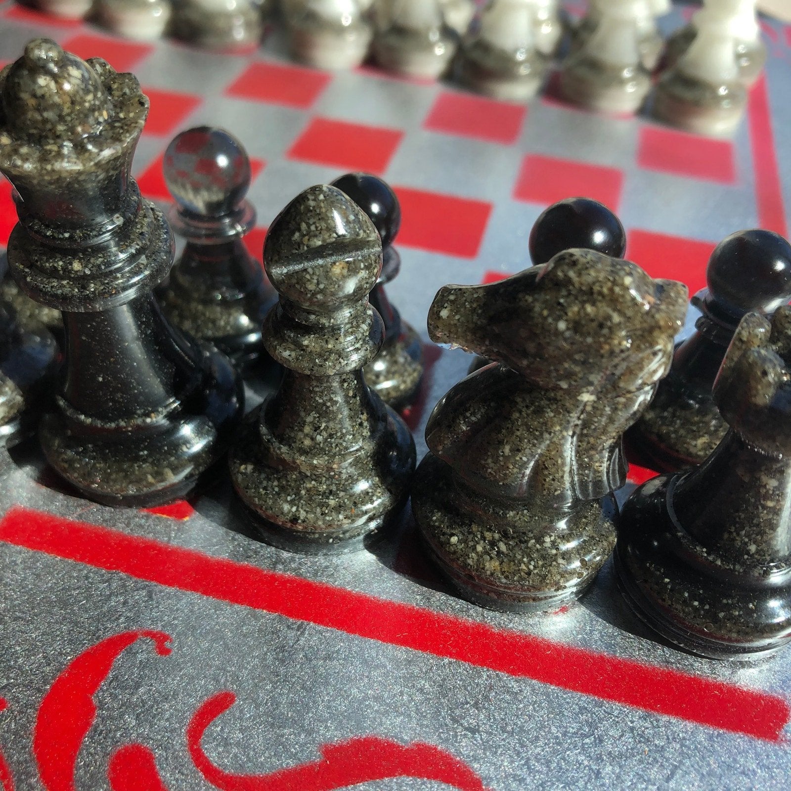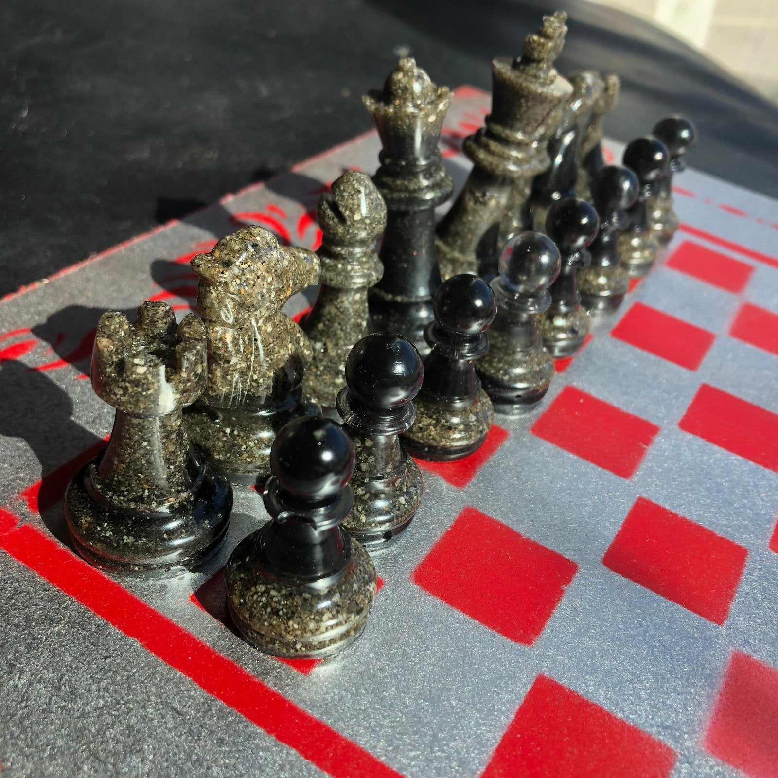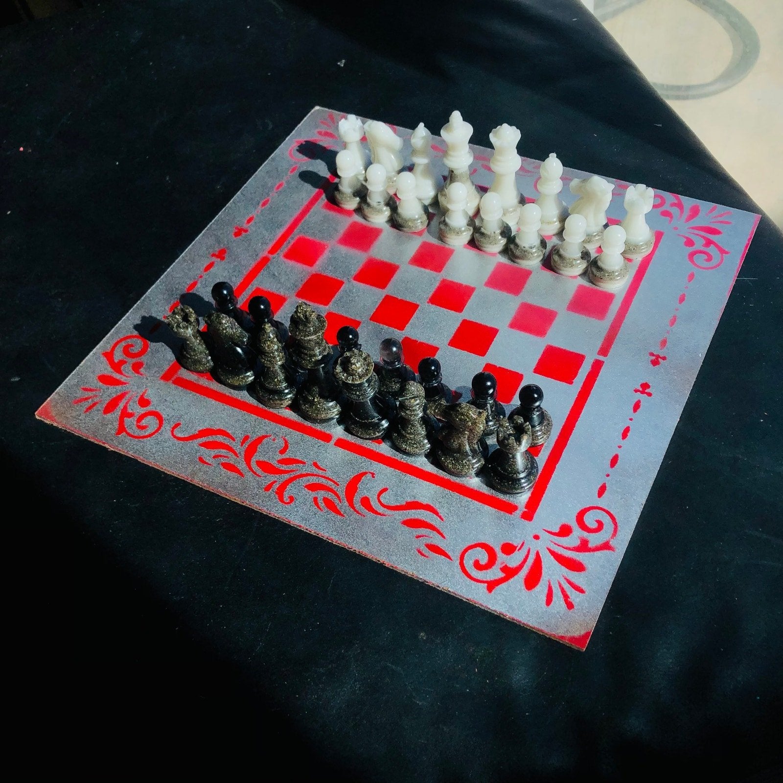Introducing our exclusive Handcrafted Hardboard Chess Set, meticulously designed with precision and care. Measuring 12 inches by 12 inches, this chess set features a beautifully painted hardwood board that doubles as a work of art. Each set is a unique, one-of-a-kind creation, crafted by hand to ensure that no two sets are alike. Elevate your gaming experience with this exceptional chess set that combines vibrant design with the touch of artisan craftsmanship.