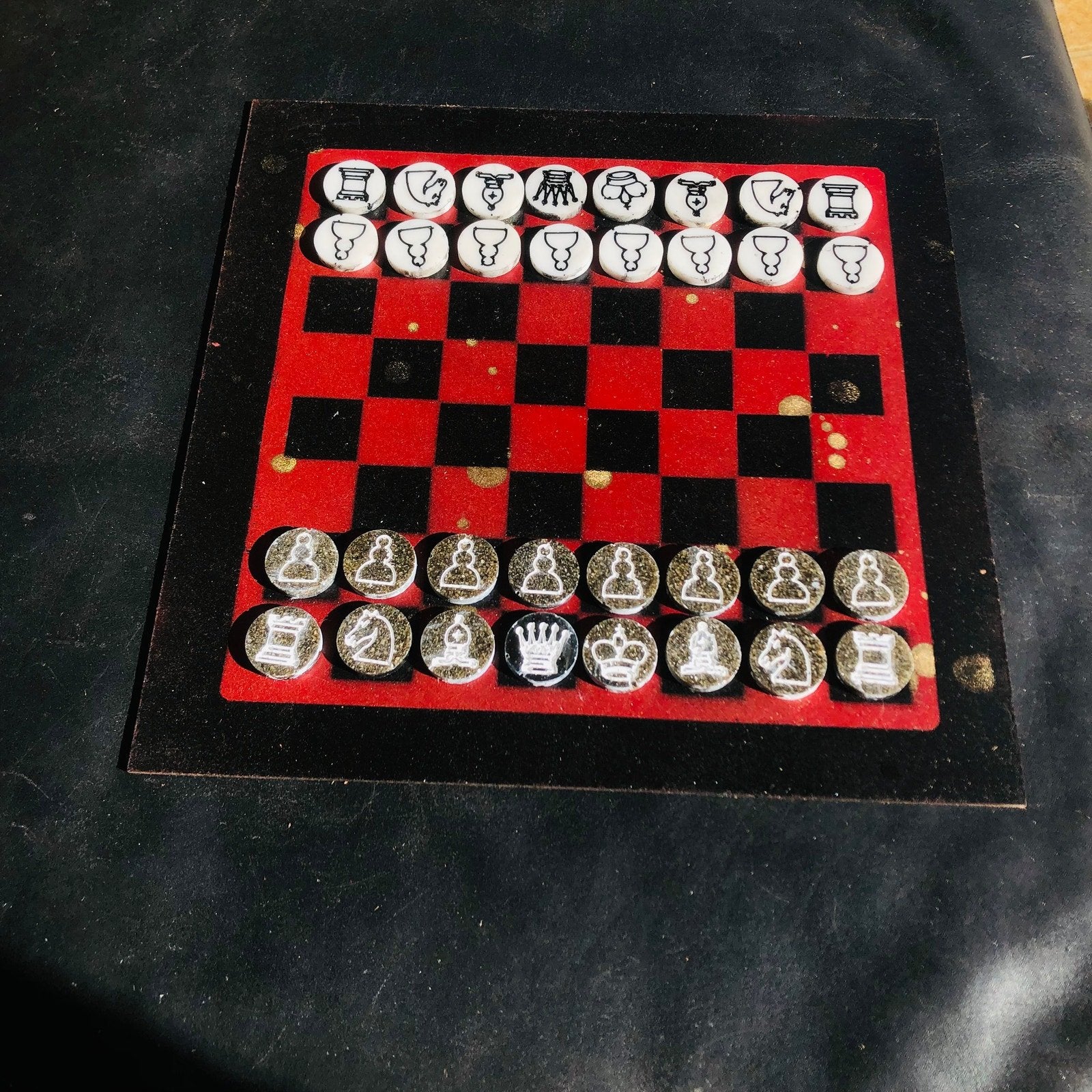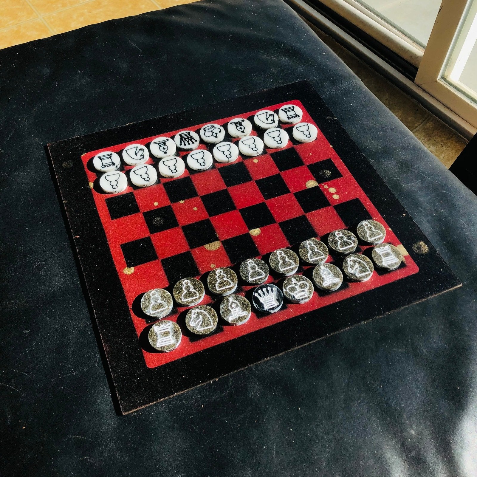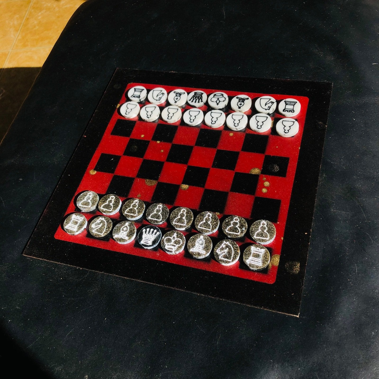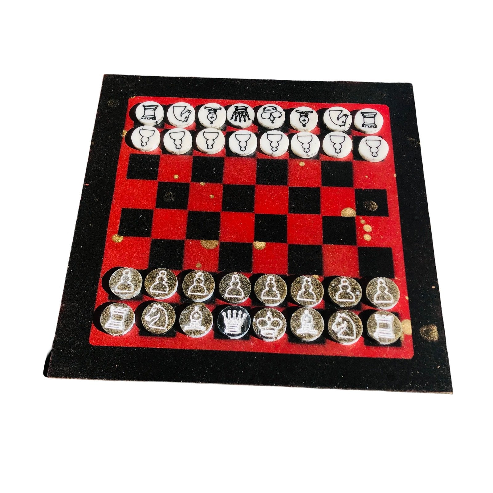 Introducing our exclusive Handcrafted Hardboard Chess Set, meticulously designed with precision and care. Measuring 12 inches by 12 inches, this chess set features a beautifully painted hardwood board that doubles as a work of art. Each set is a unique, one-of-a-kind creation, crafted by hand to ensure that no two sets are alike. Elevate your gaming experience with this exceptional chess set that combines vibrant design with the touch of artisan craftsmanship.