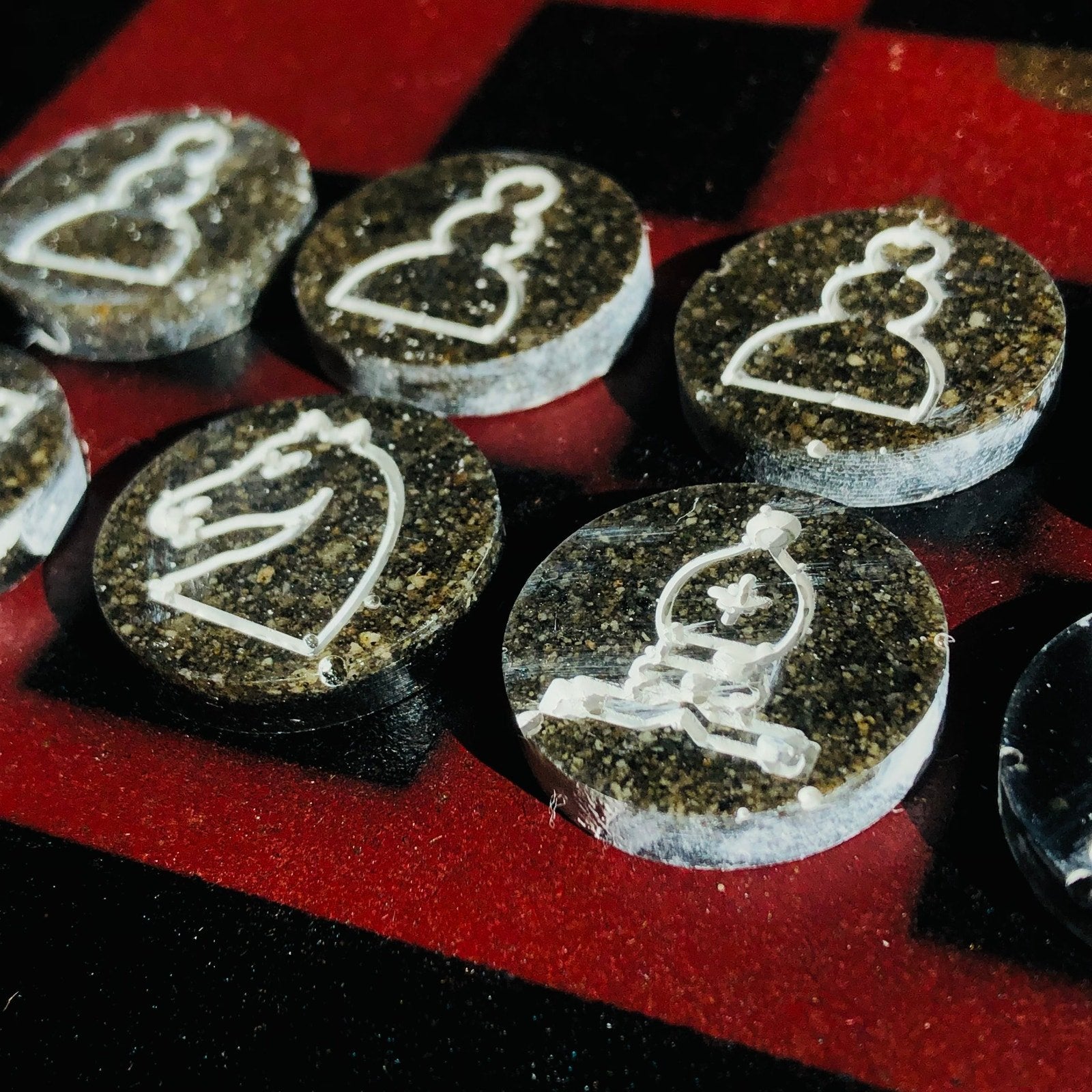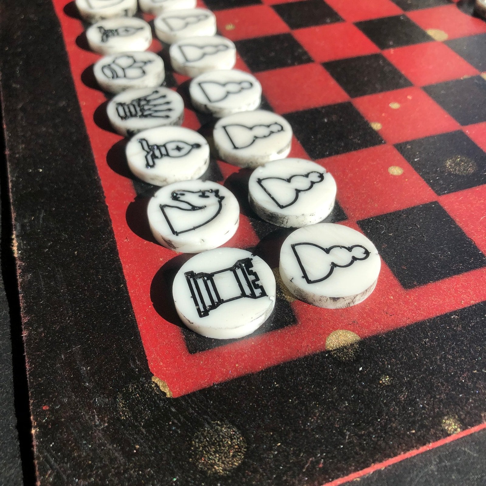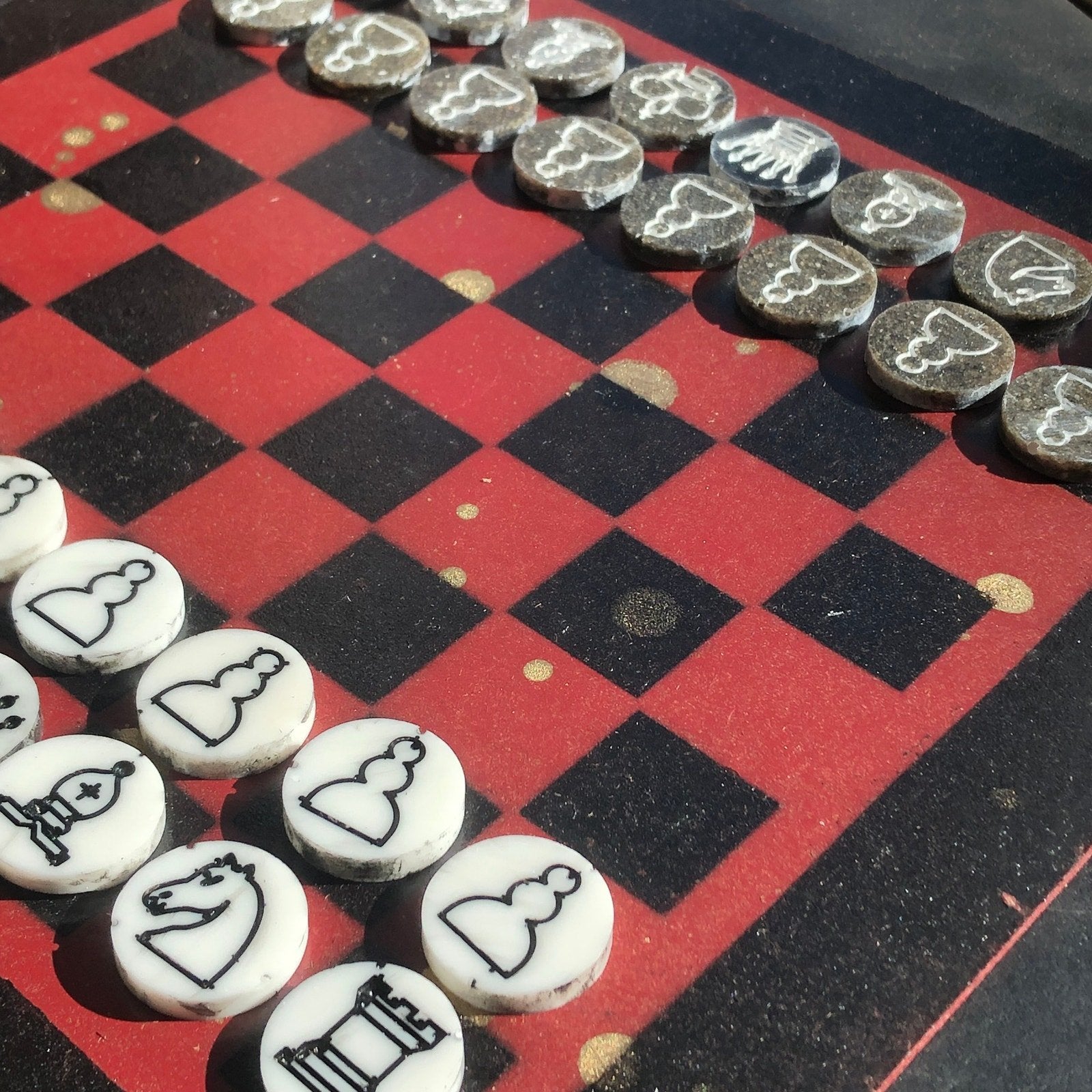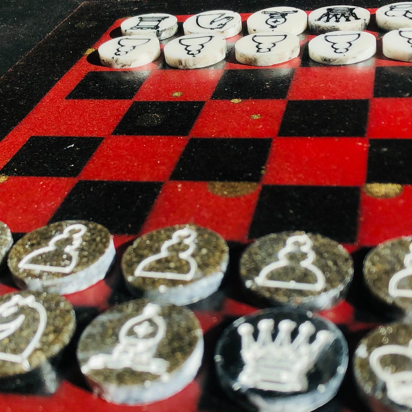 Introducing our exclusive Handcrafted Hardboard Chess Set, meticulously designed with precision and care. Measuring 12 inches by 12 inches, this chess set features a beautifully painted hardwood board that doubles as a work of art. Each set is a unique, one-of-a-kind creation, crafted by hand to ensure that no two sets are alike. Elevate your gaming experience with this exceptional chess set that combines vibrant design with the touch of artisan craftsmanship.