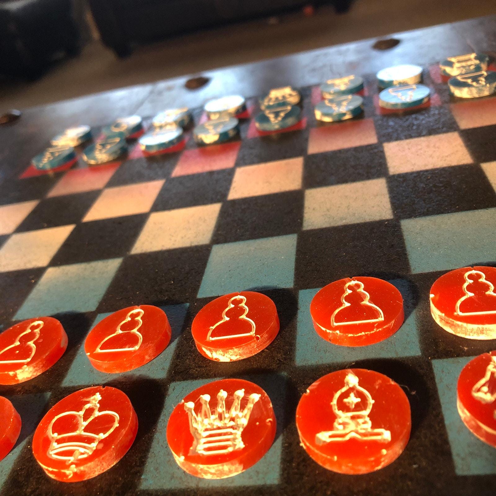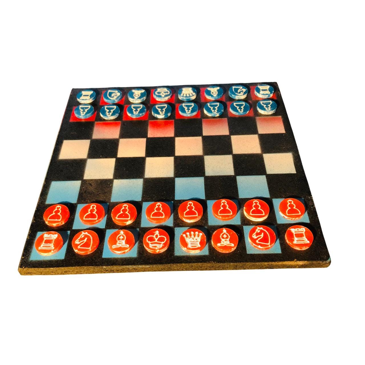 Introducing our exclusive Handcrafted Wooden Chess Set, meticulously designed with precision and care. Measuring 12 inches by 12 inches, this chess set features a beautifully painted Particle Board board that doubles as a work of art. Each set is a unique, one-of-a-kind creation, crafted by hand to ensure that no two sets are alike. Elevate your gaming experience with this exceptional chess set that combines vibrant design with the touch of artisan craftsmanship. This chess board comes with chess pieces.