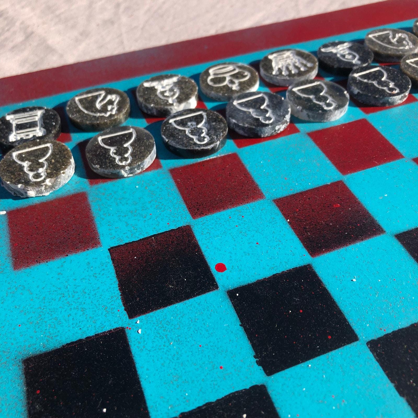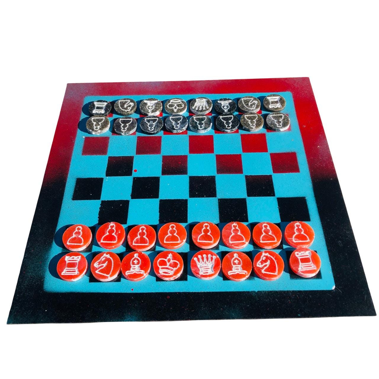 Introducing our exclusive Handcrafted Hardboard Chess Set, meticulously designed with precision and care. Measuring 12 inches by 12 inches, this chess set features a beautifully painted hardwood board that doubles as a work of art. Each set is a unique, one-of-a-kind creation, crafted by hand to ensure that no two sets are alike. Elevate your gaming experience with this exceptional chess set that combines vibrant design with the touch of artisan craftsmanship. This chess board comes with chess pieces.