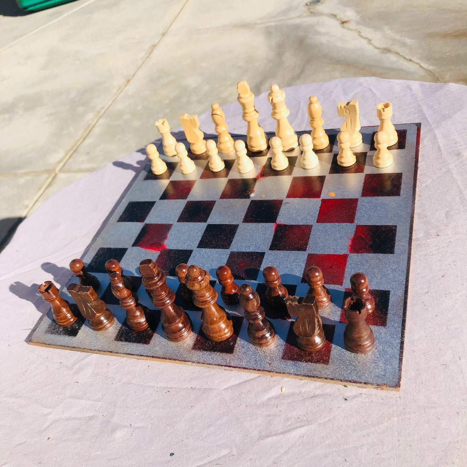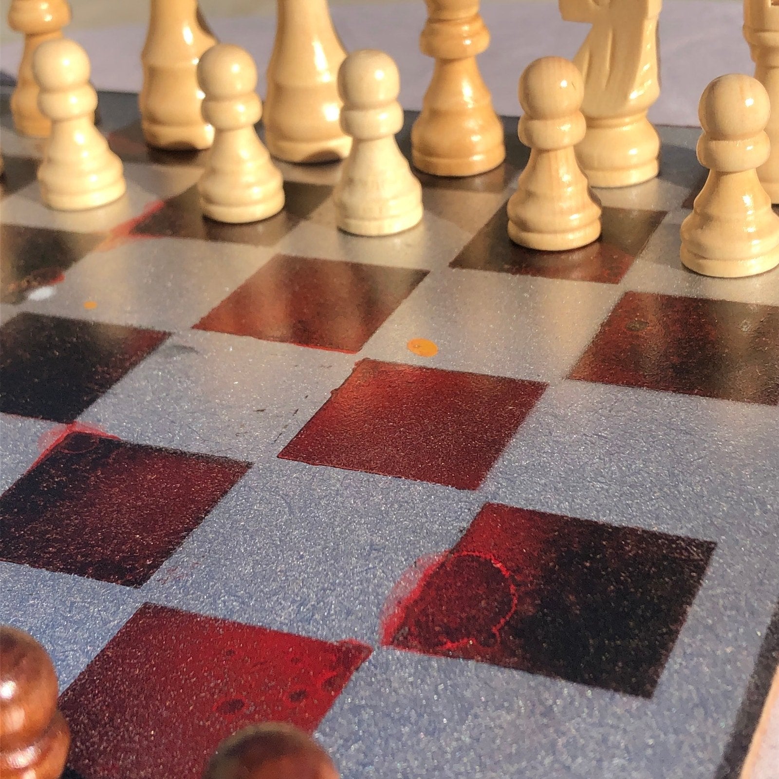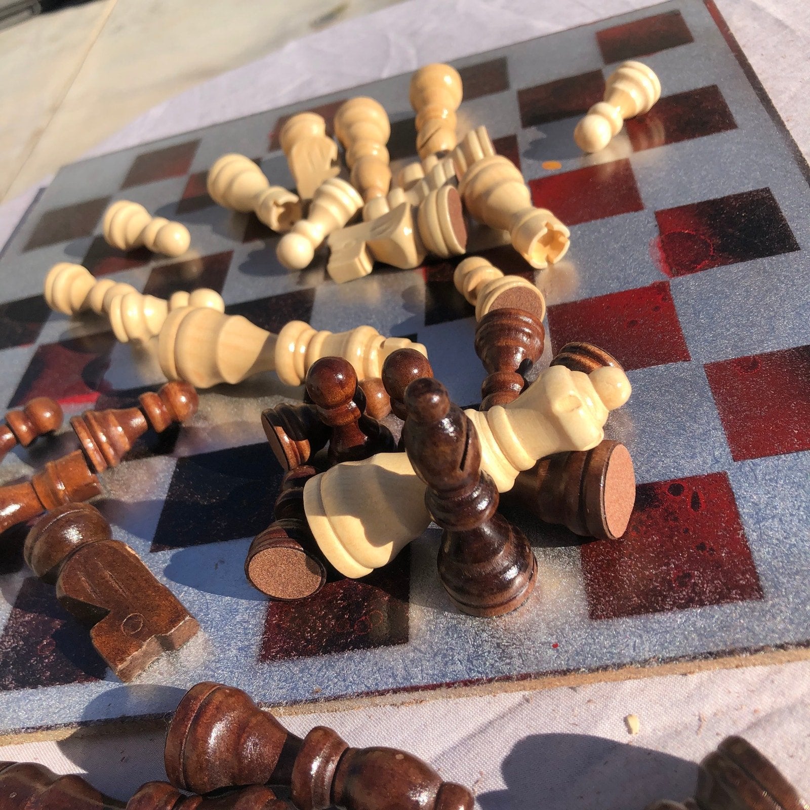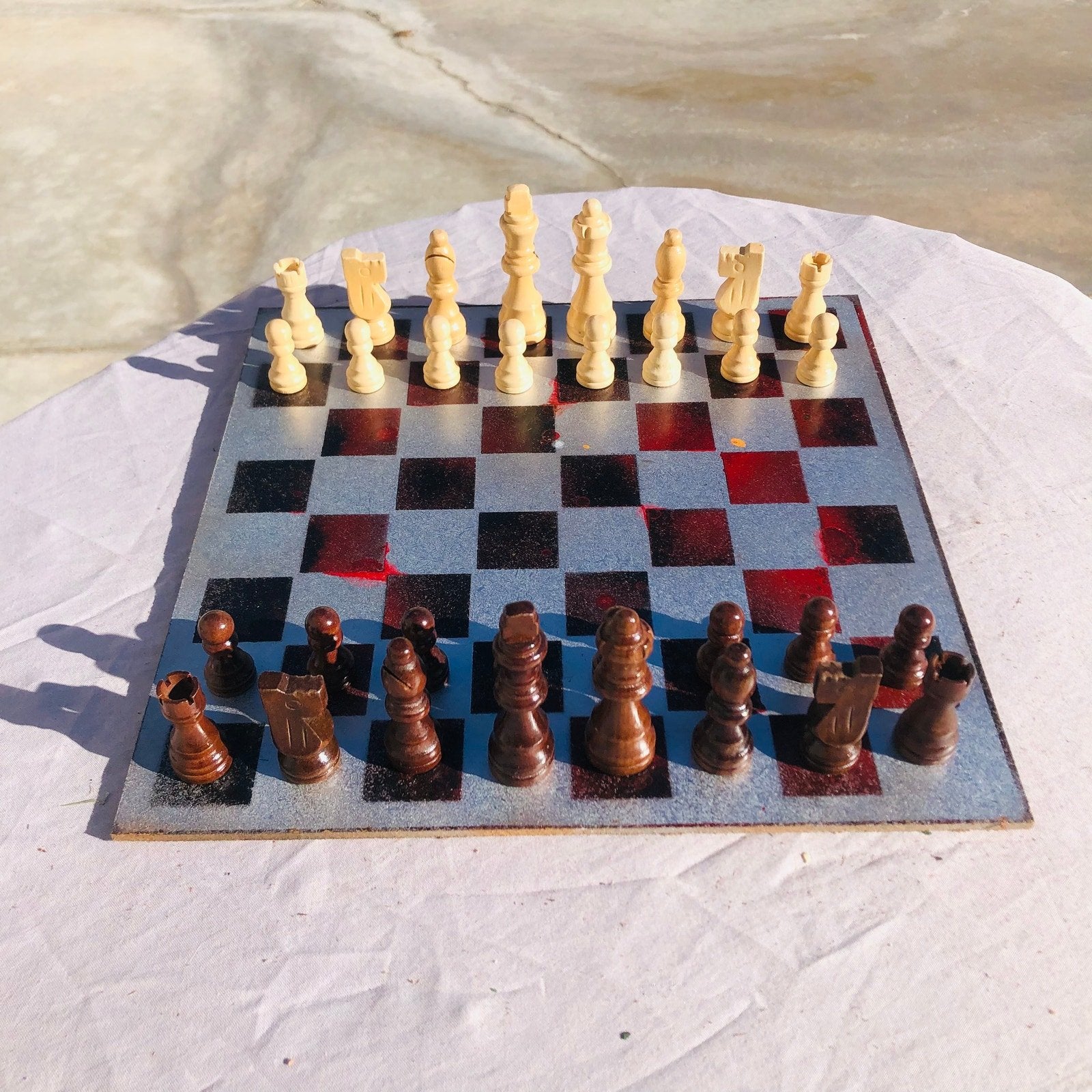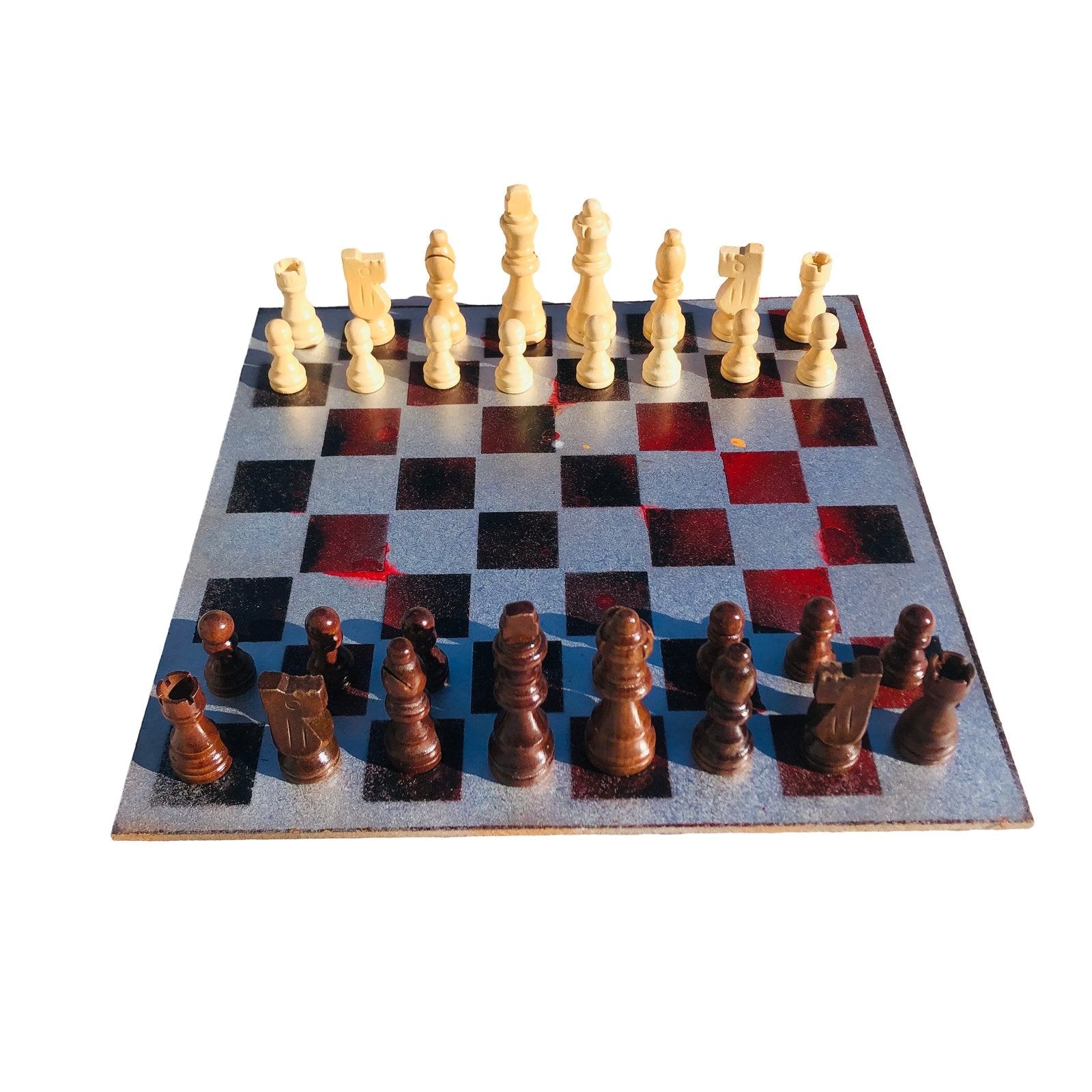 Introducing our exclusive Handcrafted Hardboard Chess Set, meticulously designed with precision and care. Measuring 12 inches by 12 inches, this chess set features a beautifully painted hardwood board that doubles as a work of art. Each set is a unique, one-of-a-kind creation, crafted by hand to ensure that no two sets are alike. Elevate your gaming experience with this exceptional chess set that combines vibrant design with the touch of artisan craftsmanship.