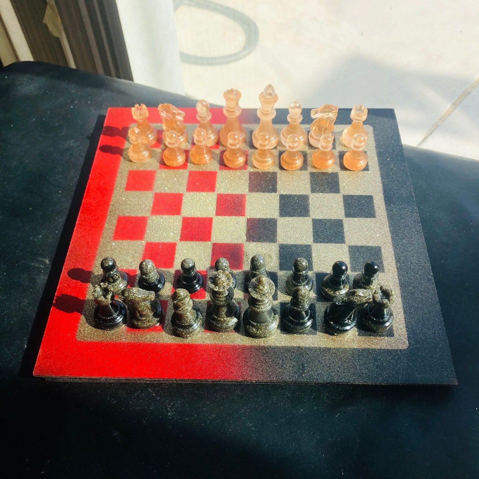 Introducing our exclusive Handcrafted Hardwood Chess Set, meticulously designed with precision and care. Measuring 12 inches by 12 inches, this chess set features a beautifully painted hardwood board that doubles as a work of art. Each set is a unique, one-of-a-kind creation, crafted by hand to ensure that no two sets are alike. Elevate your gaming experience with this exceptional chess set that combines vibrant design with the touch of artisan craftsmanship.