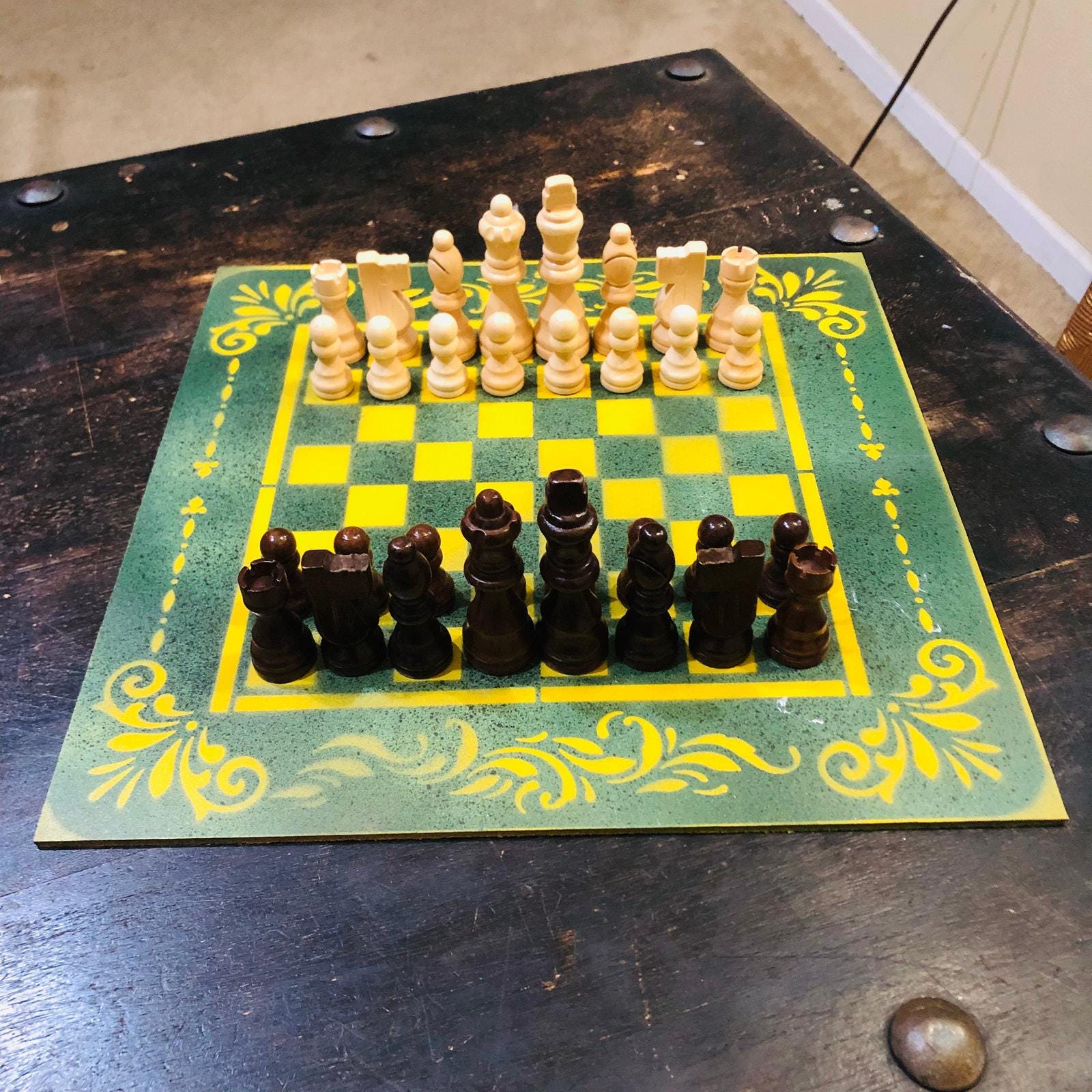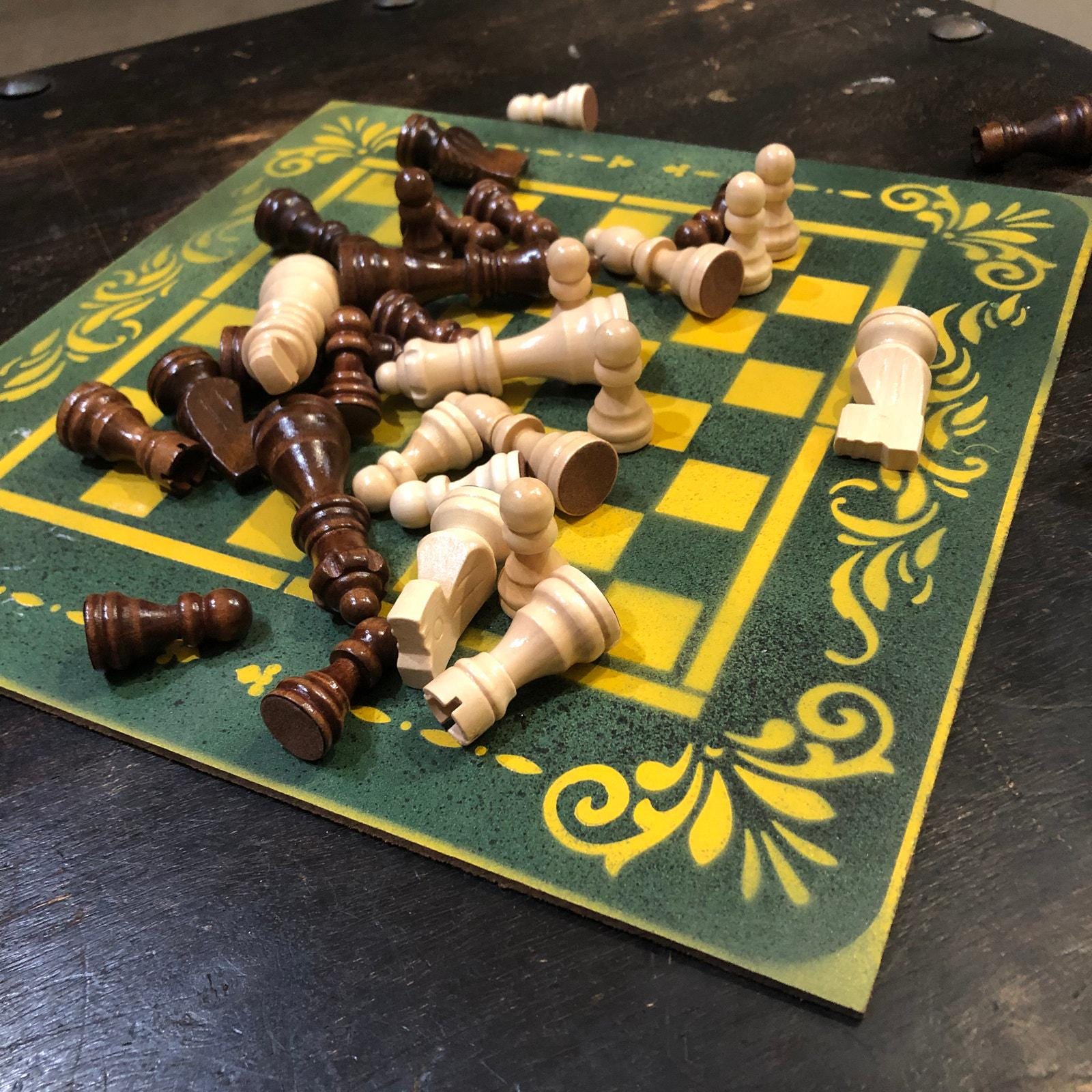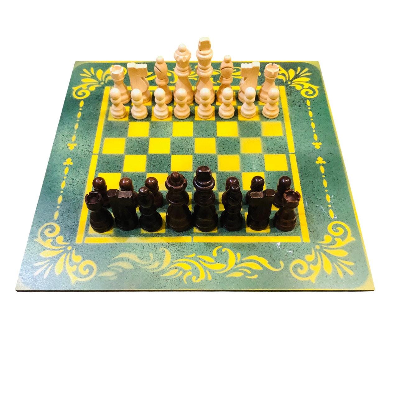 Introducing our exclusive Handcrafted Hardboard Chess Set, meticulously designed with precision and care. Measuring 12 inches by 12 inches, this chess set features a beautifully painted hardwood board that doubles as a work of art. Each set is a unique, one-of-a-kind creation, crafted by hand to ensure that no two sets are alike. Elevate your gaming experience with this exceptional chess set that combines vibrant design with the touch of artisan craftsmanship.