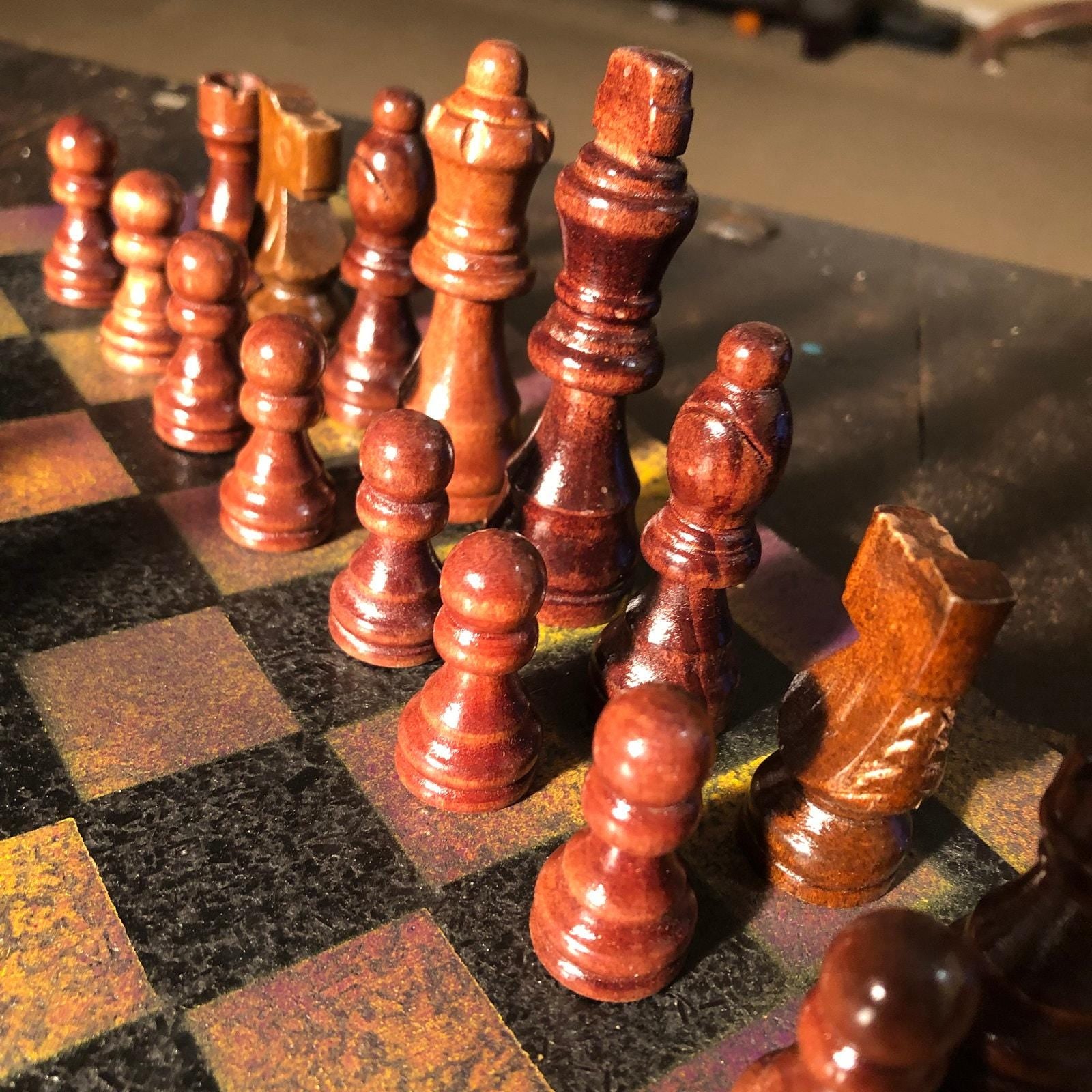 Chess Set - Rustic Yellow Purple