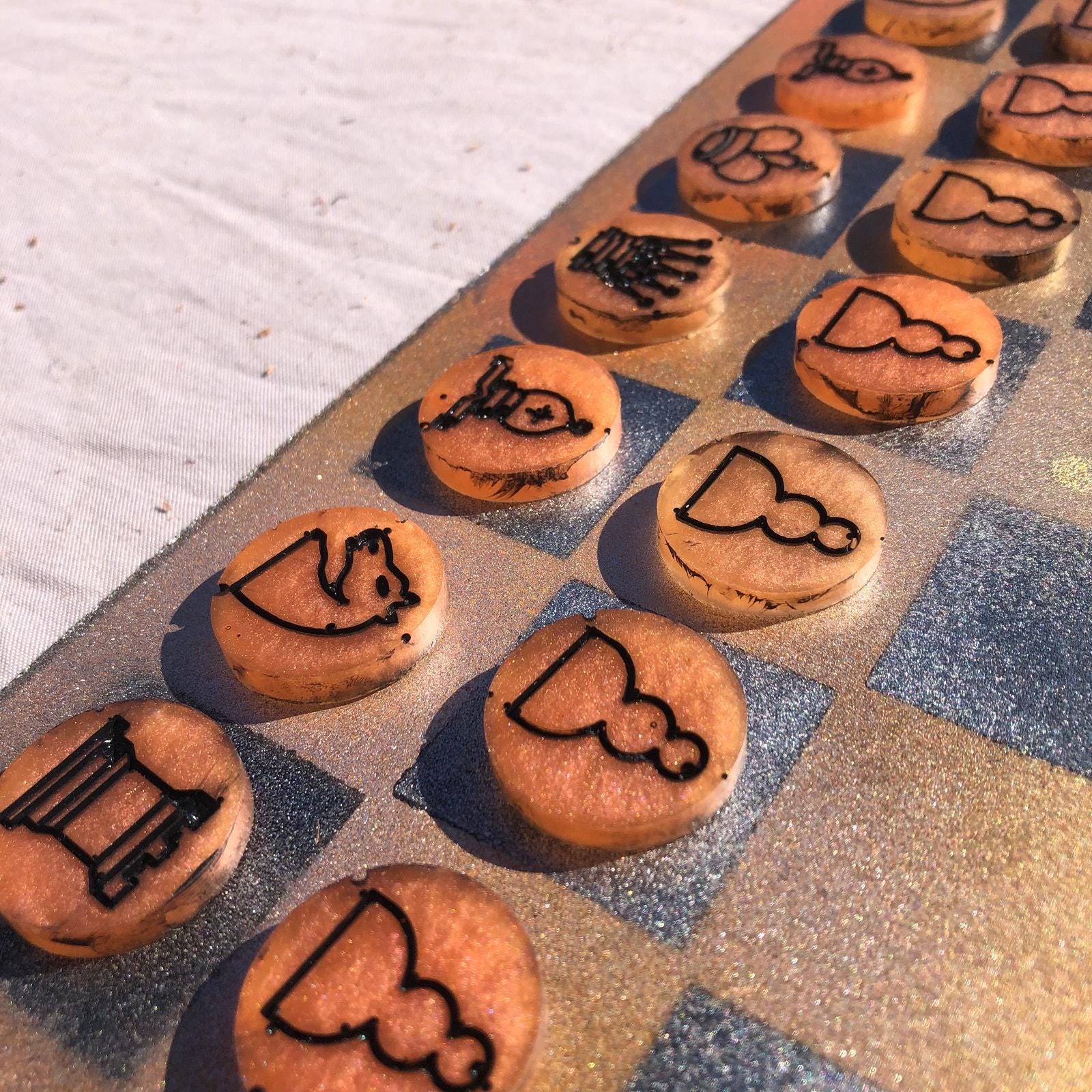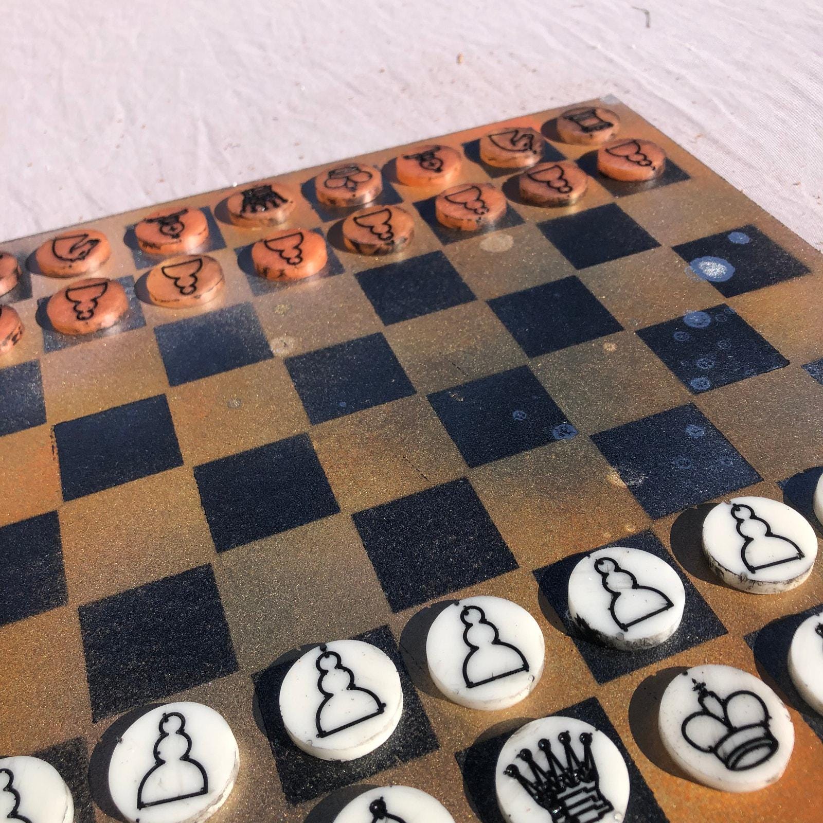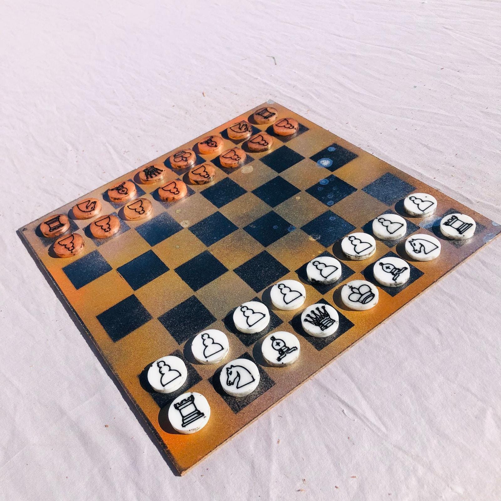 Introducing our exclusive Handcrafted Hardboard Chess Set, meticulously designed with precision and care. Measuring 12 inches by 12 inches, this chess set features a beautifully painted hardwood board that doubles as a work of art. Each set is a unique, one-of-a-kind creation, crafted by hand to ensure that no two sets are alike. Elevate your gaming experience with this exceptional chess set that combines vibrant design with the touch of artisan craftsmanship. This chess board comes with chess pieces.