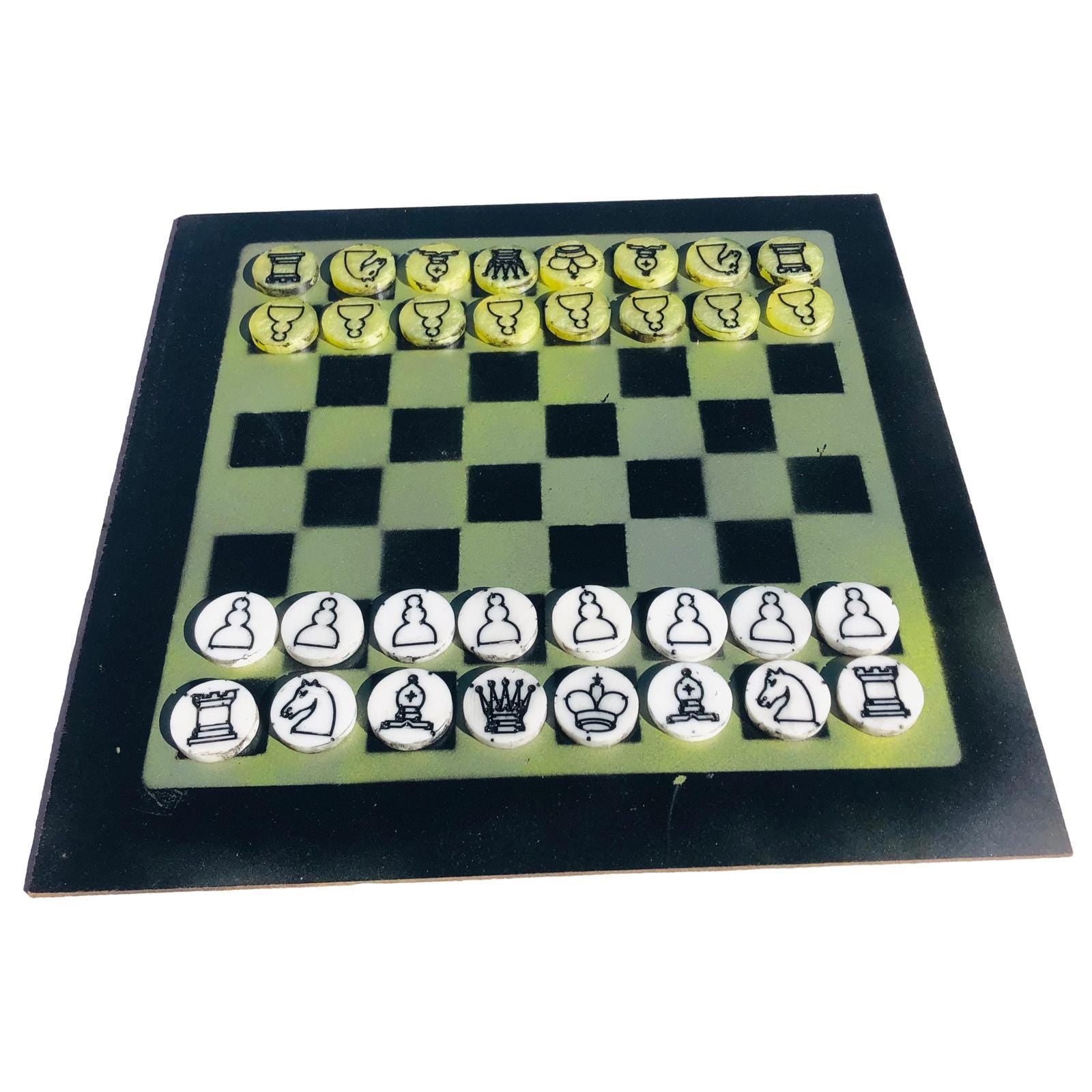 Introducing our exclusive Handcrafted Hardboard Chess Set, meticulously designed with precision and care. Measuring 12 inches by 12 inches, this chess set features a beautifully painted hardwood board that doubles as a work of art. Each set is a unique, one-of-a-kind creation, crafted by hand to ensure that no two sets are alike. Elevate your gaming experience with this exceptional chess set that combines vibrant design with the touch of artisan craftsmanship. This chess board comes with chess pieces.