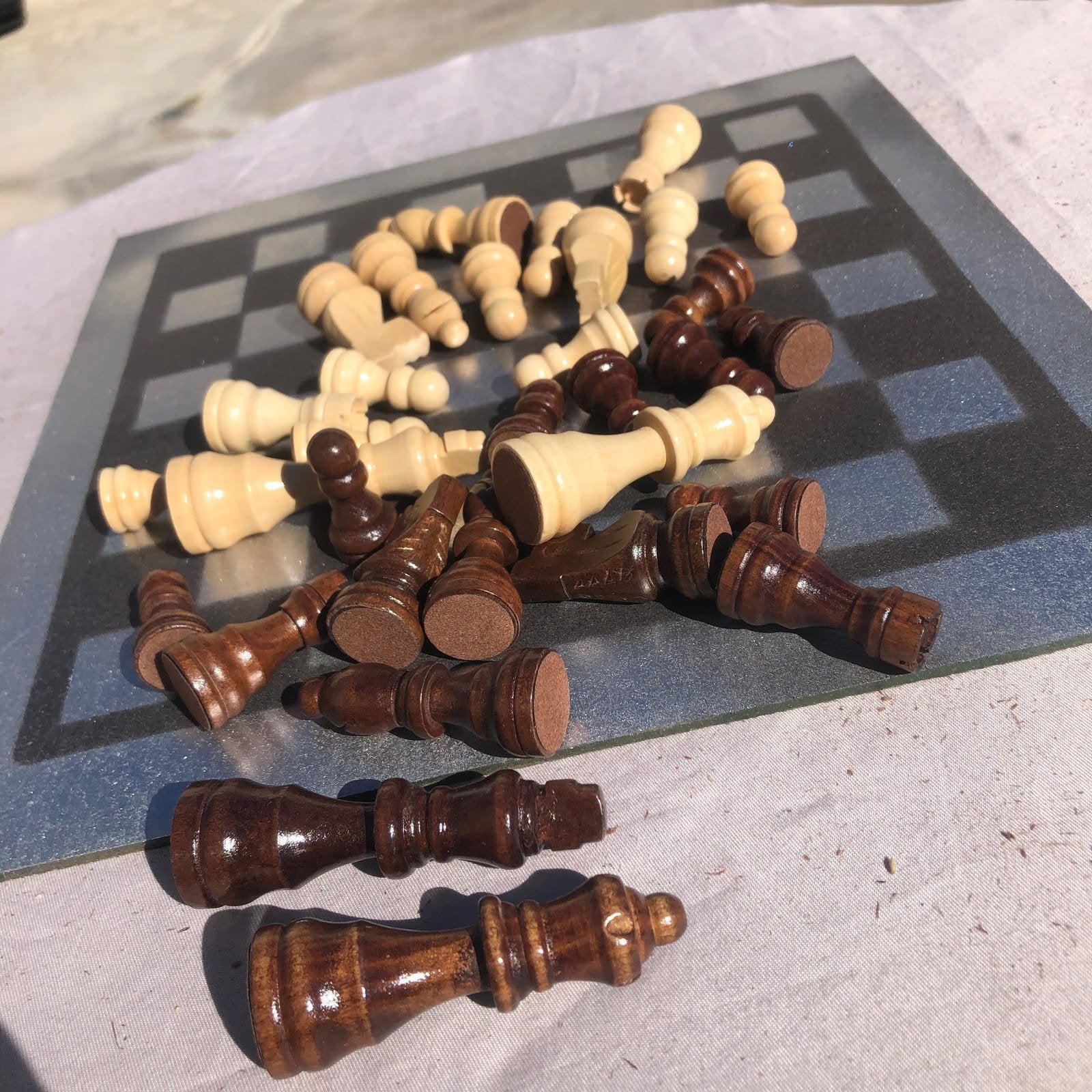 Introducing our exclusive Handcrafted Hardboard Chess Set, meticulously designed with precision and care. Measuring 12 inches by 12 inches, this chess set features a beautifully painted hardwood board that doubles as a work of art. Each set is a unique, one-of-a-kind creation, crafted by hand to ensure that no two sets are alike. Elevate your gaming experience with this exceptional chess set that combines vibrant design with the touch of artisan craftsmanship.