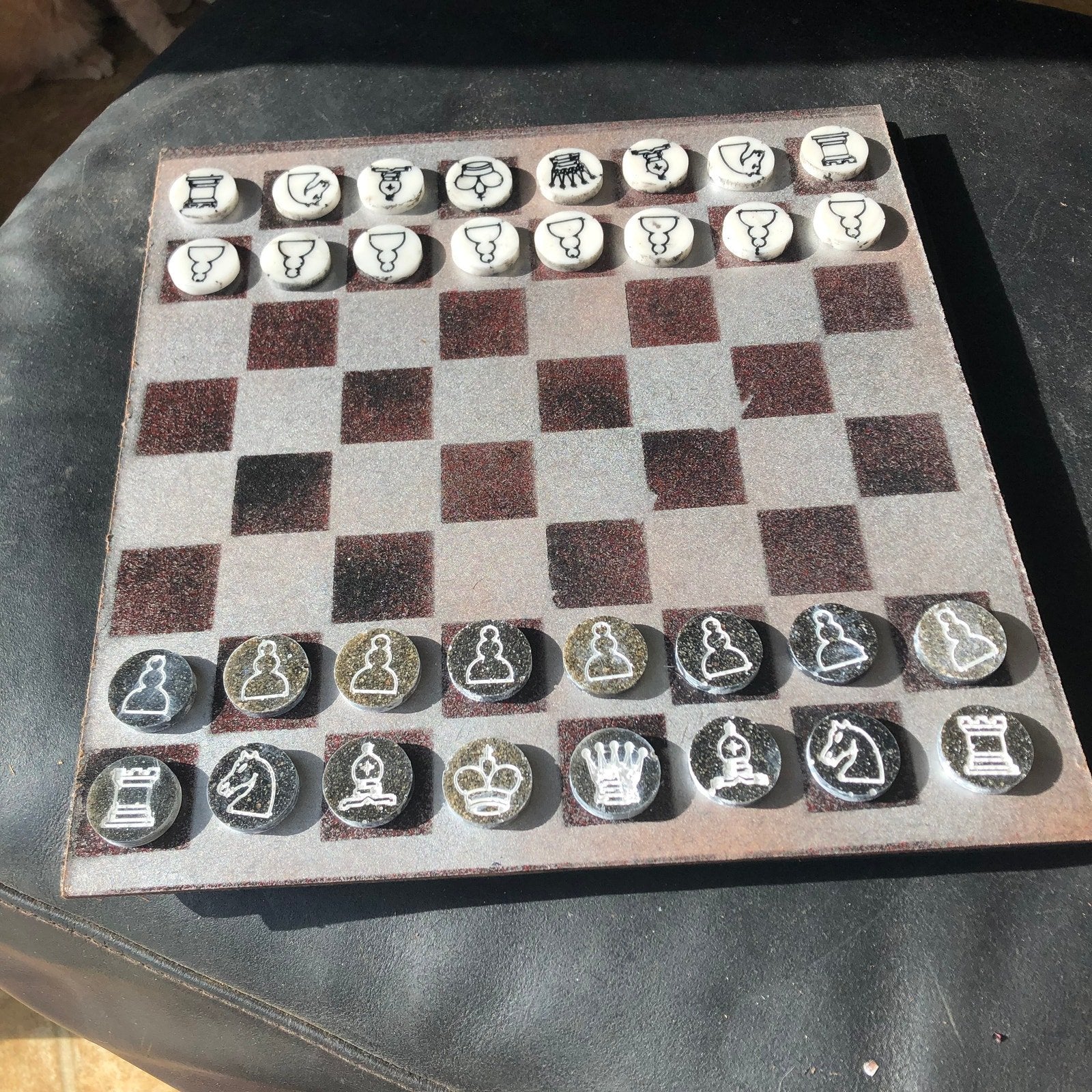 Introducing our exclusive Handcrafted Hardwood Chess Set, meticulously designed with precision and care. Measuring 12 inches by 12 inches, this chess set features a beautifully painted hardwood board that doubles as a work of art. Each set is a unique, one-of-a-kind creation, crafted by hand to ensure that no two sets are alike. Elevate your gaming experience with this exceptional chess set that combines vibrant design with the touch of artisan craftsmanship.