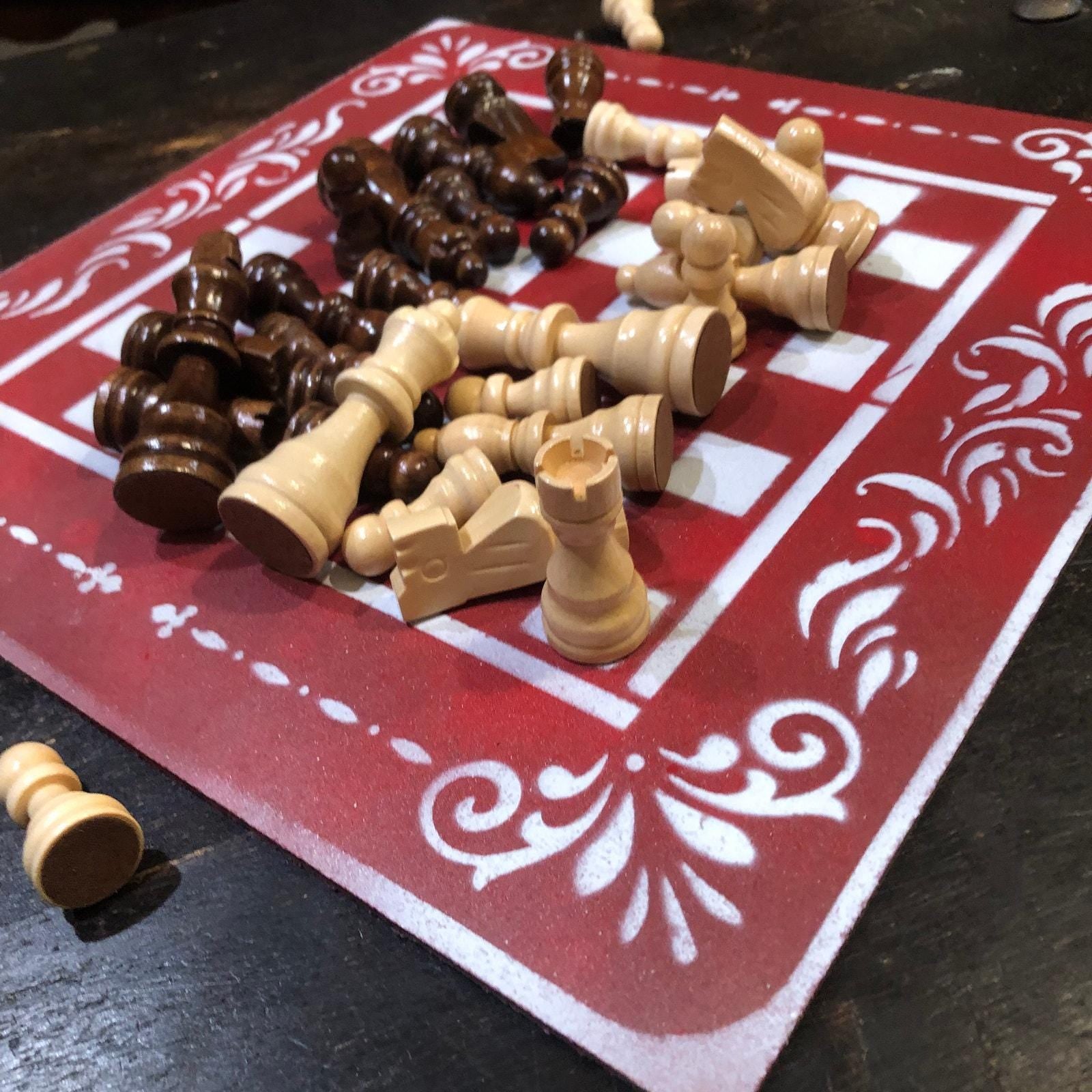 Introducing our exclusive Handcrafted Hardboard Chess Set, meticulously designed with precision and care. Measuring 12 inches by 12 inches, this chess set features a beautifully painted hardwood board that doubles as a work of art. Each set is a unique, one-of-a-kind creation, crafted by hand to ensure that no two sets are alike. Elevate your gaming experience with this exceptional chess set that combines vibrant design with the touch of artisan craftsmanship.