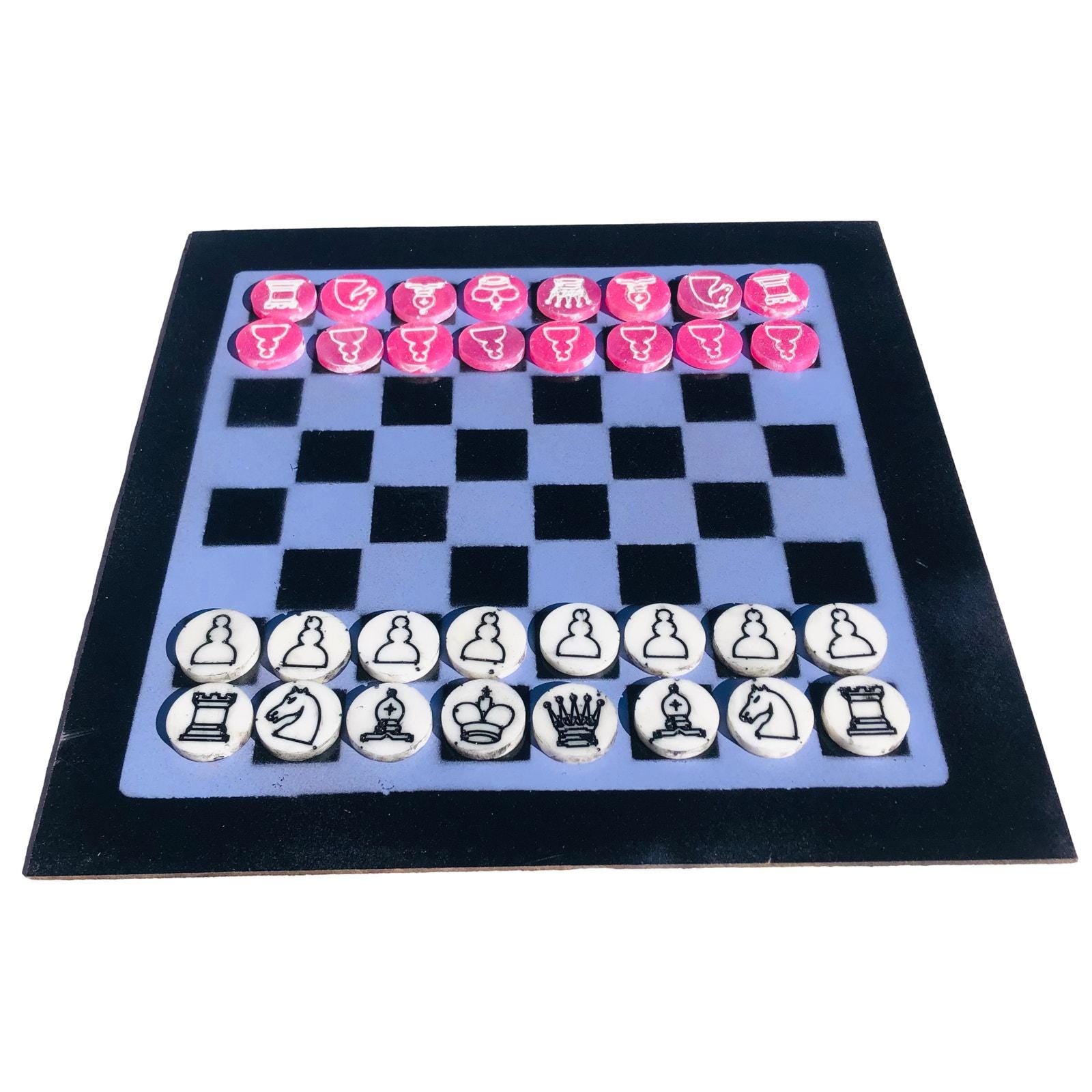Introducing our exclusive Handcrafted Hardboard Chess Set, meticulously designed with precision and care. Measuring 12 inches by 12 inches, this chess set features a beautifully painted hardwood board that doubles as a work of art. Each set is a unique, one-of-a-kind creation, crafted by hand to ensure that no two sets are alike. Elevate your gaming experience with this exceptional chess set that combines vibrant design with the touch of artisan craftsmanship. This chess board comes with chess pieces.