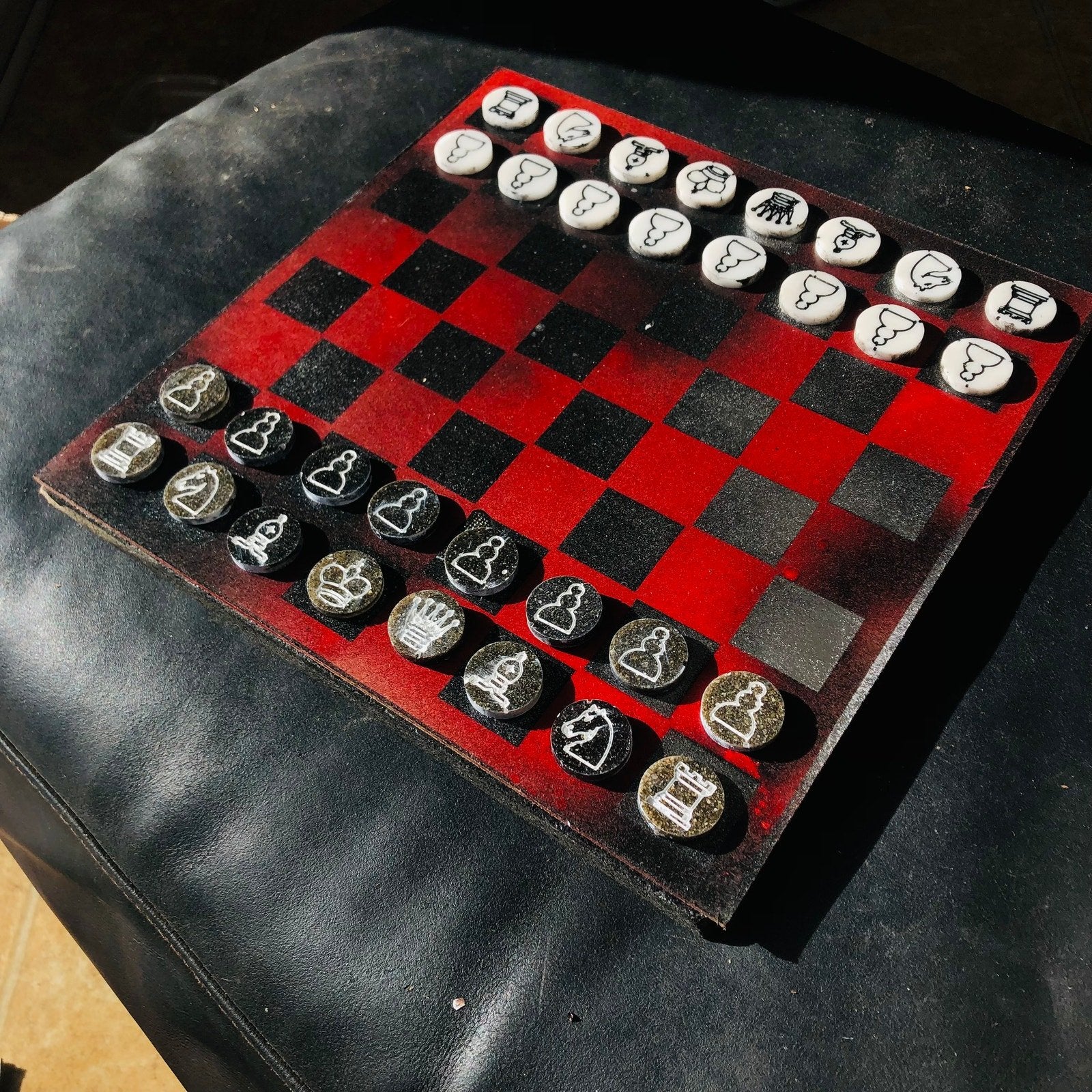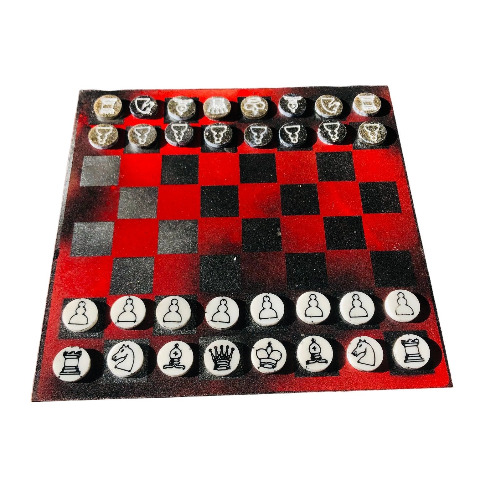 Introducing our exclusive Handcrafted Hardwood Chess Set, meticulously designed with precision and care. Measuring 12 inches by 12 inches, this chess set features a beautifully painted hardwood board that doubles as a work of art. Each set is a unique, one-of-a-kind creation, crafted by hand to ensure that no two sets are alike. Elevate your gaming experience with this exceptional chess set that combines vibrant design with the touch of artisan craftsmanship.