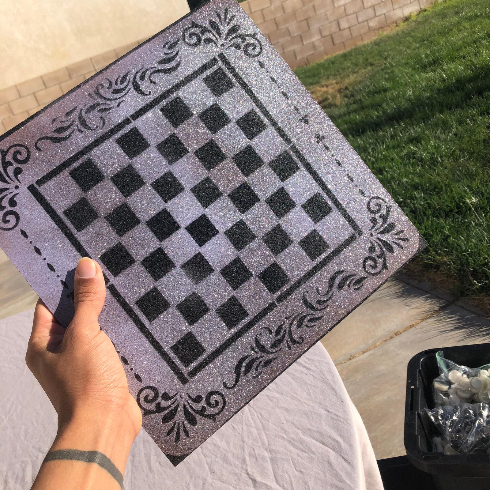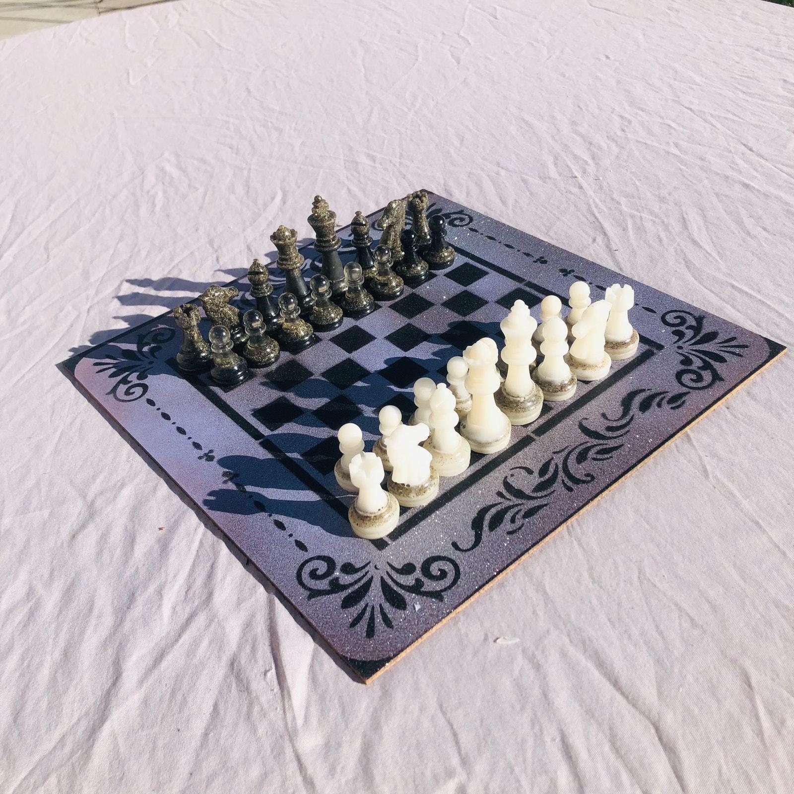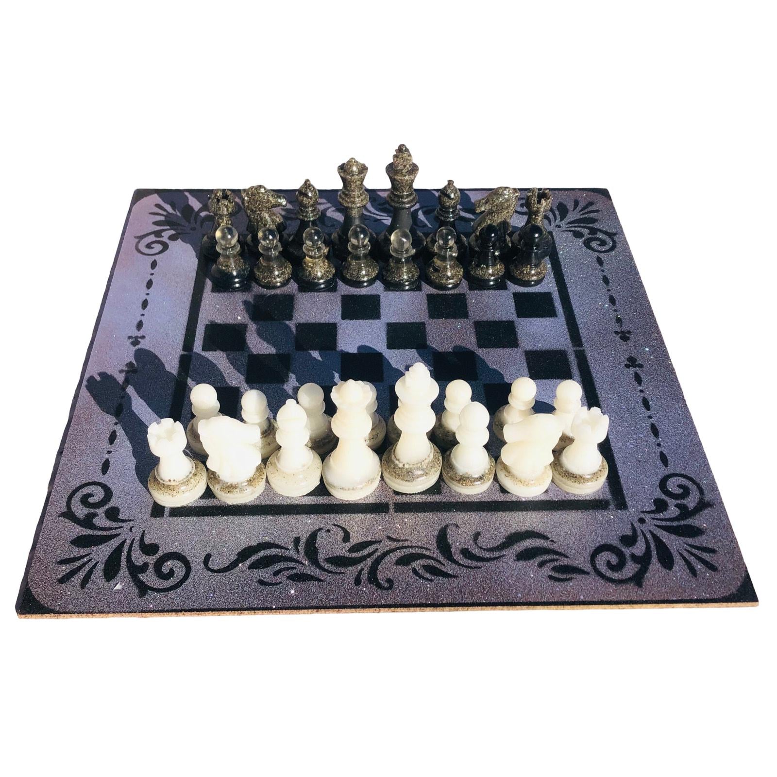 Introducing our exclusive Handcrafted Hardboard Chess Set, meticulously designed with precision and care. Measuring 12 inches by 12 inches, this chess set features a beautifully painted hardwood board that doubles as a work of art. Each set is a unique, one-of-a-kind creation, crafted by hand to ensure that no two sets are alike. Elevate your gaming experience with this exceptional chess set that combines vibrant design with the touch of artisan craftsmanship. This chess board comes with chess pieces.