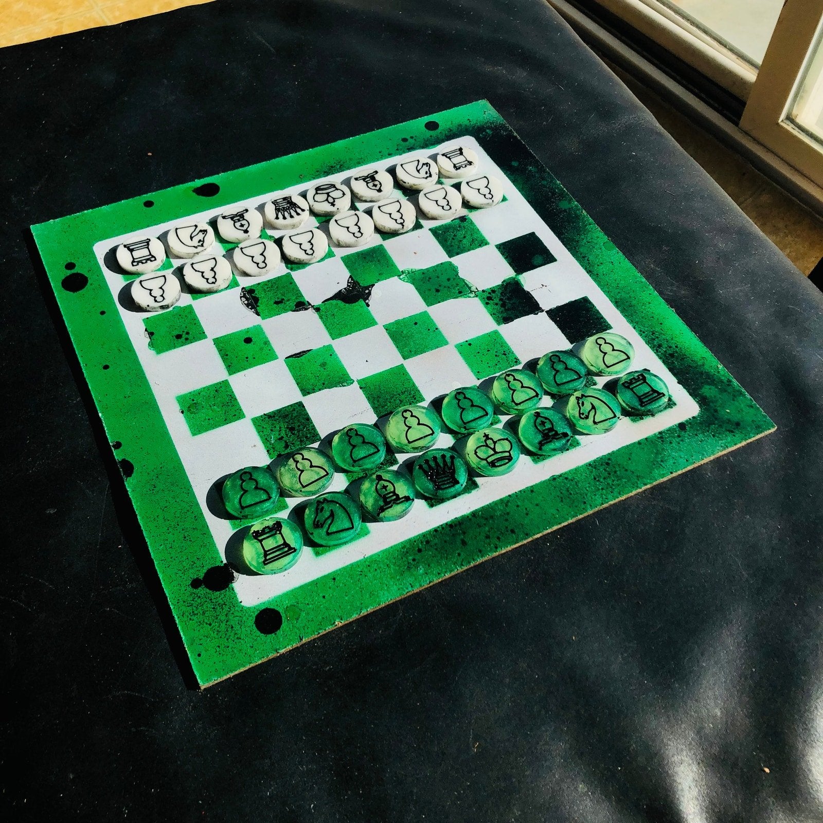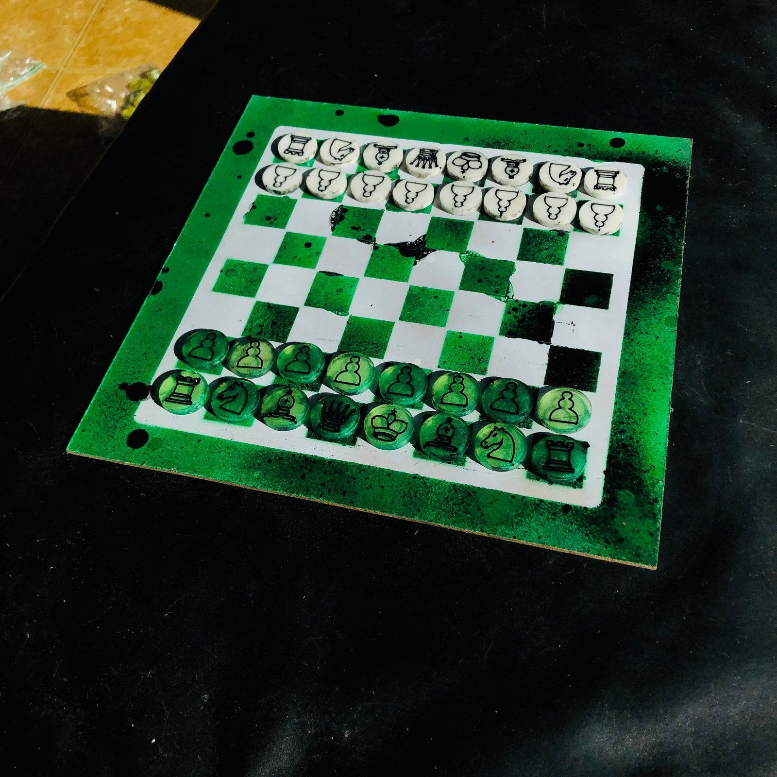 Introducing our exclusive Handcrafted Hardboard Chess Set, meticulously designed with precision and care. Measuring 12 inches by 12 inches, this chess set features a beautifully painted hardwood board that doubles as a work of art. Each set is a unique, one-of-a-kind creation, crafted by hand to ensure that no two sets are alike. Elevate your gaming experience with this exceptional chess set that combines vibrant design with the touch of artisan craftsmanship.