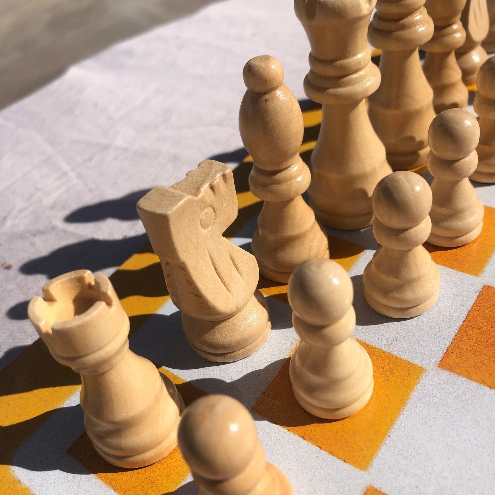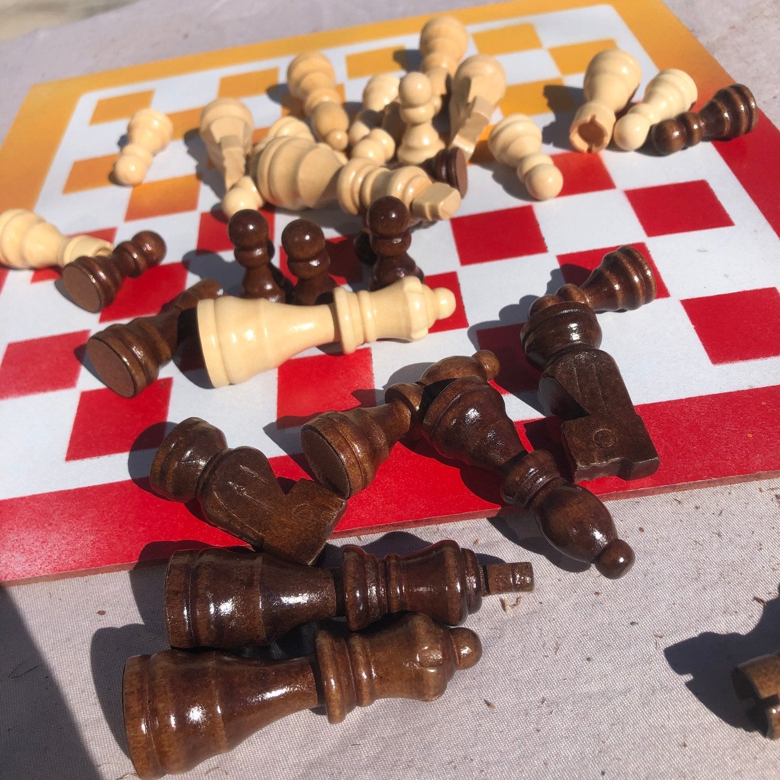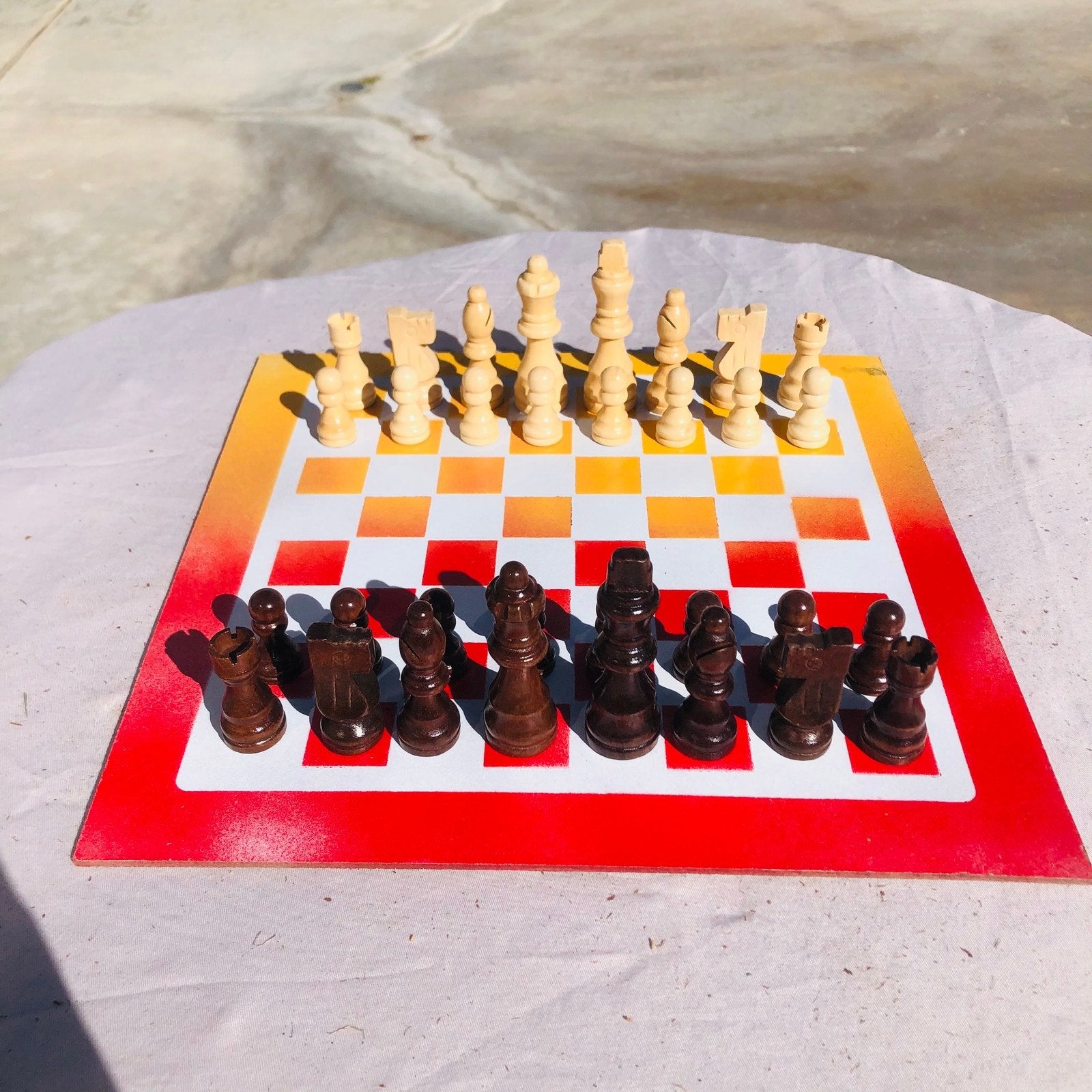 Introducing our exclusive Handcrafted Hardboard Chess Set, meticulously designed with precision and care. Measuring 12 inches by 12 inches, this chess set features a beautifully painted hardwood board that doubles as a work of art. Each set is a unique, one-of-a-kind creation, crafted by hand to ensure that no two sets are alike. Elevate your gaming experience with this exceptional chess set that combines vibrant design with the touch of artisan craftsmanship.