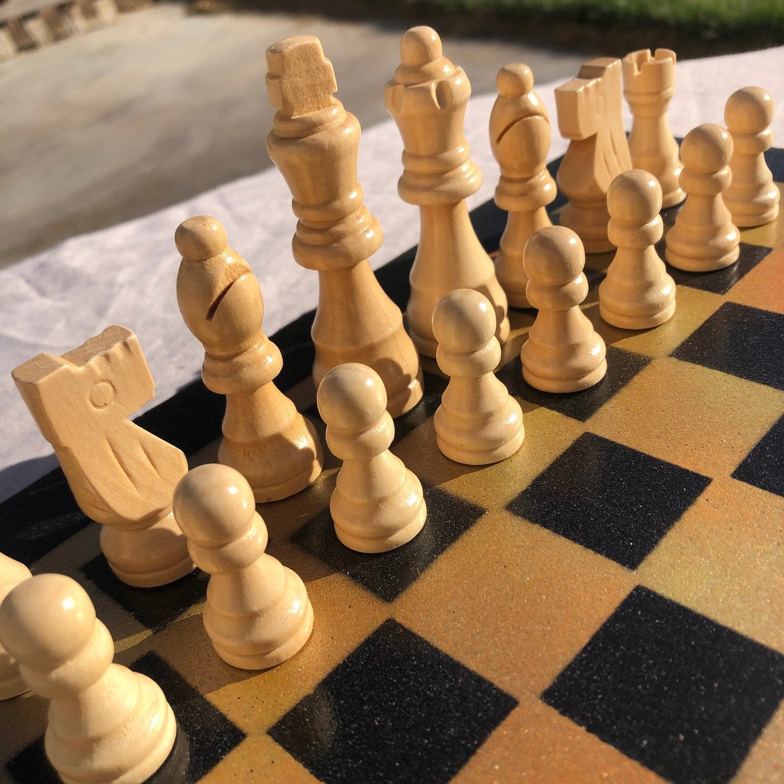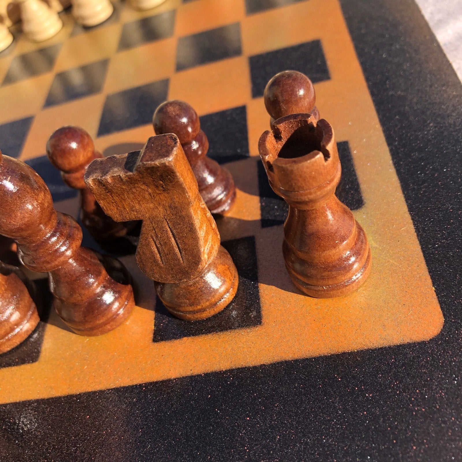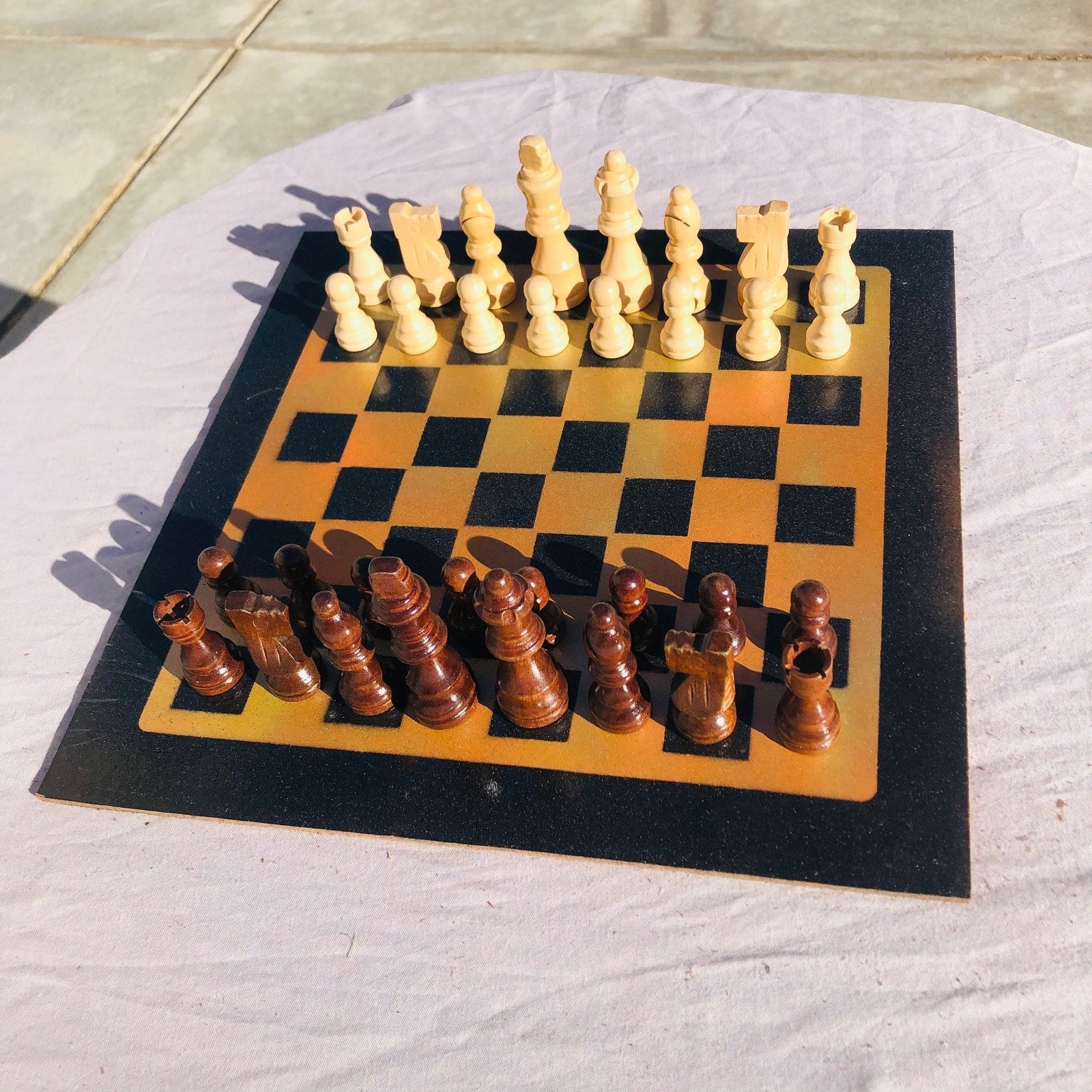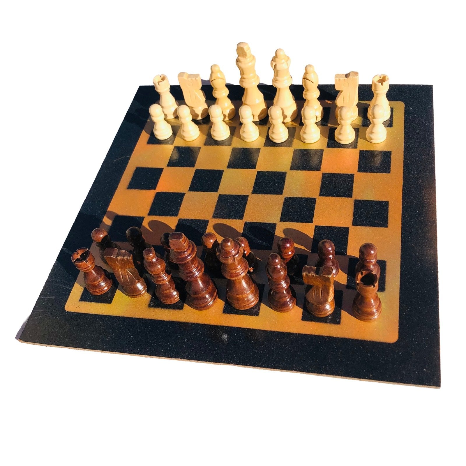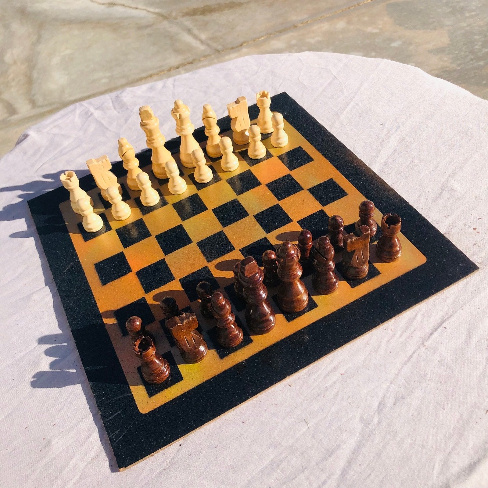 Introducing our exclusive Handcrafted Hardboard Chess Set, meticulously designed with precision and care. Measuring 12 inches by 12 inches, this chess set features a beautifully painted hardwood board that doubles as a work of art. Each set is a unique, one-of-a-kind creation, crafted by hand to ensure that no two sets are alike. Elevate your gaming experience with this exceptional chess set that combines vibrant design with the touch of artisan craftsmanship.