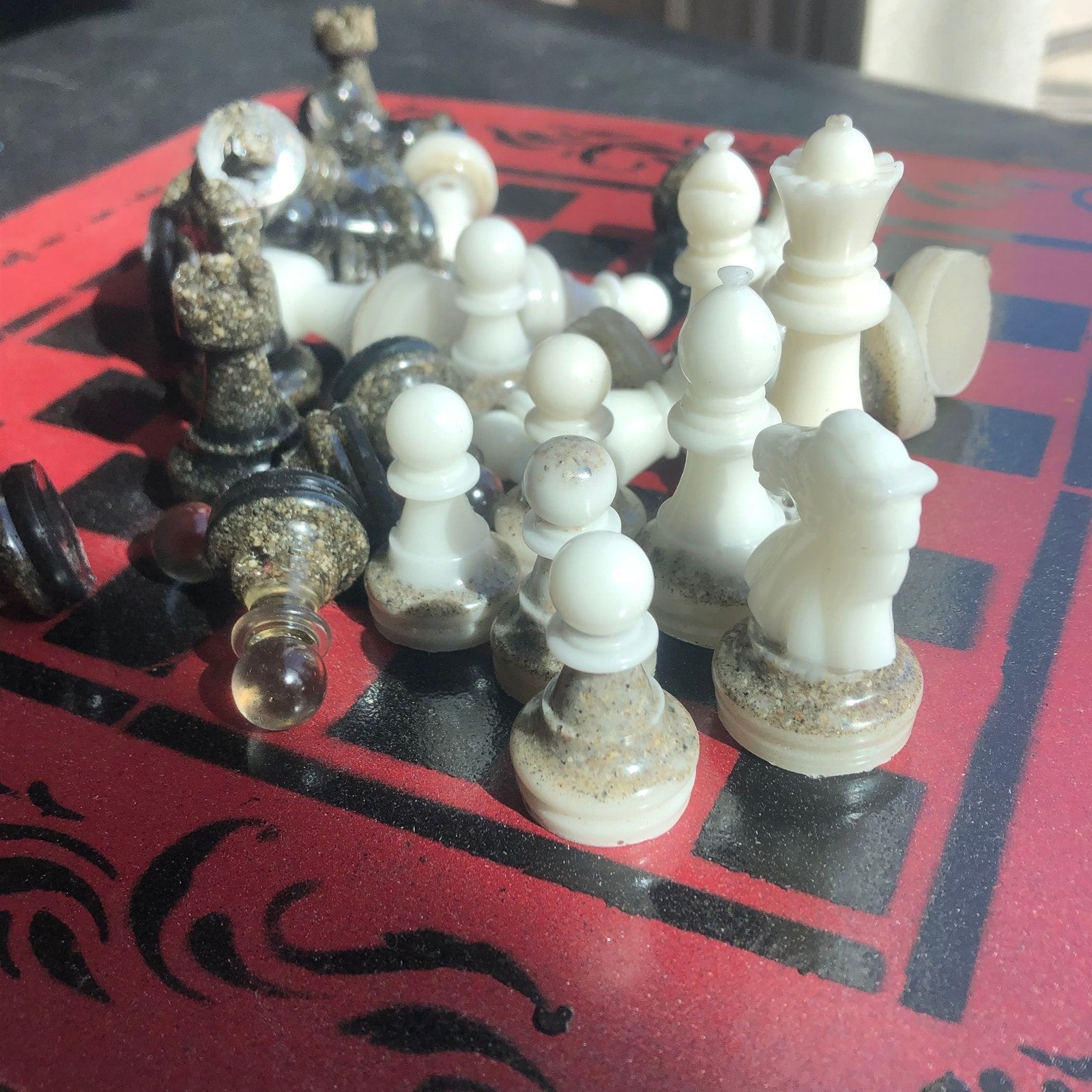 Introducing our exclusive Handcrafted Hardwood Chess Set, meticulously designed with precision and care. Measuring 12 inches by 12 inches, this chess set features a beautifully painted hardwood board that doubles as a work of art. Each set is a unique, one-of-a-kind creation, crafted by hand to ensure that no two sets are alike. Elevate your gaming experience with this exceptional chess set that combines vibrant design with the touch of artisan craftsmanship.