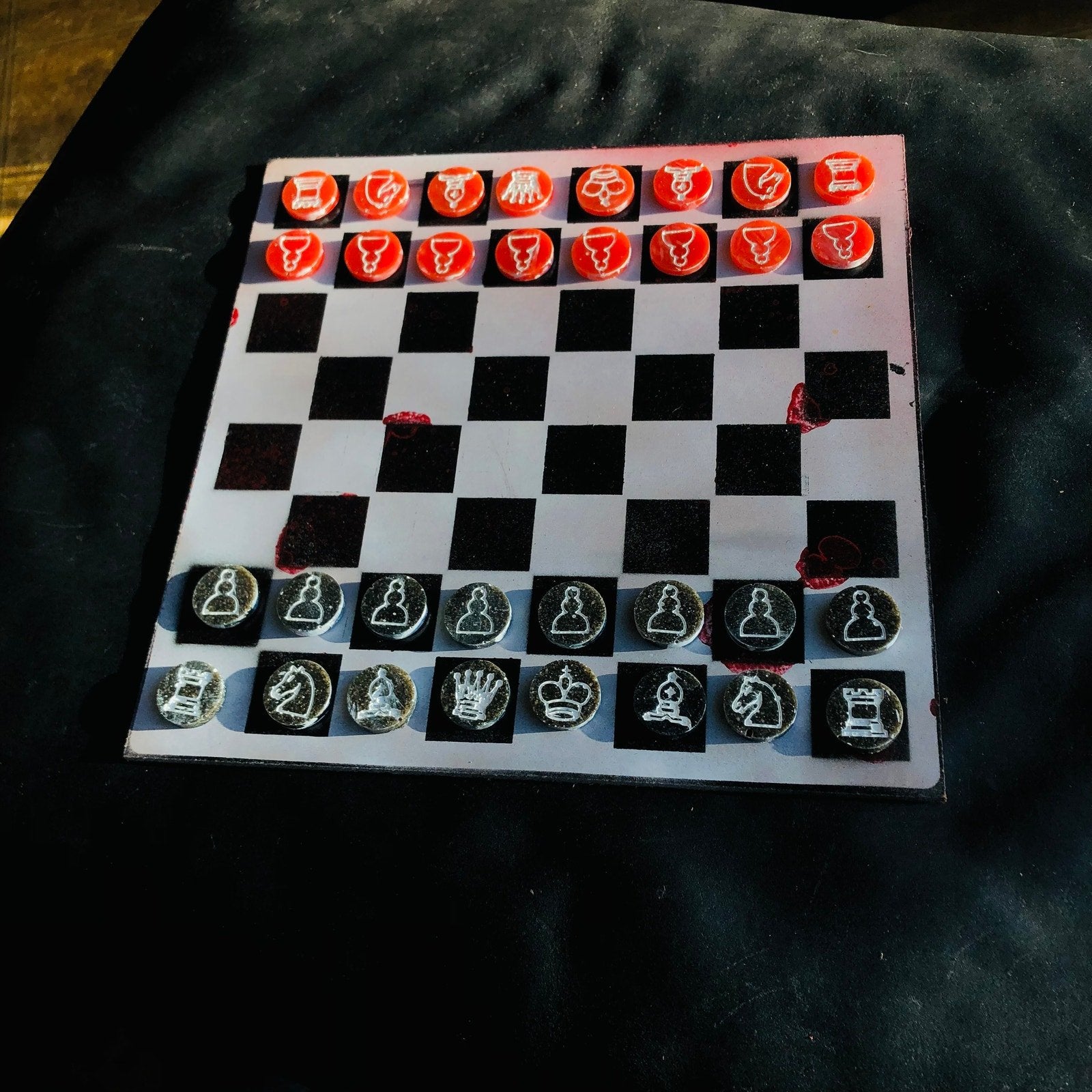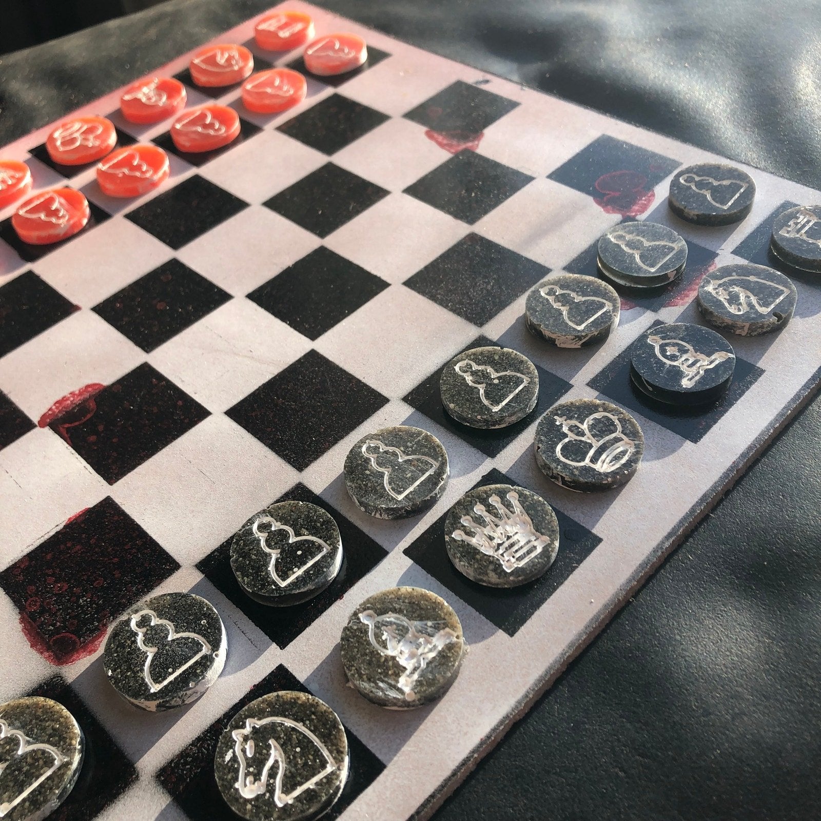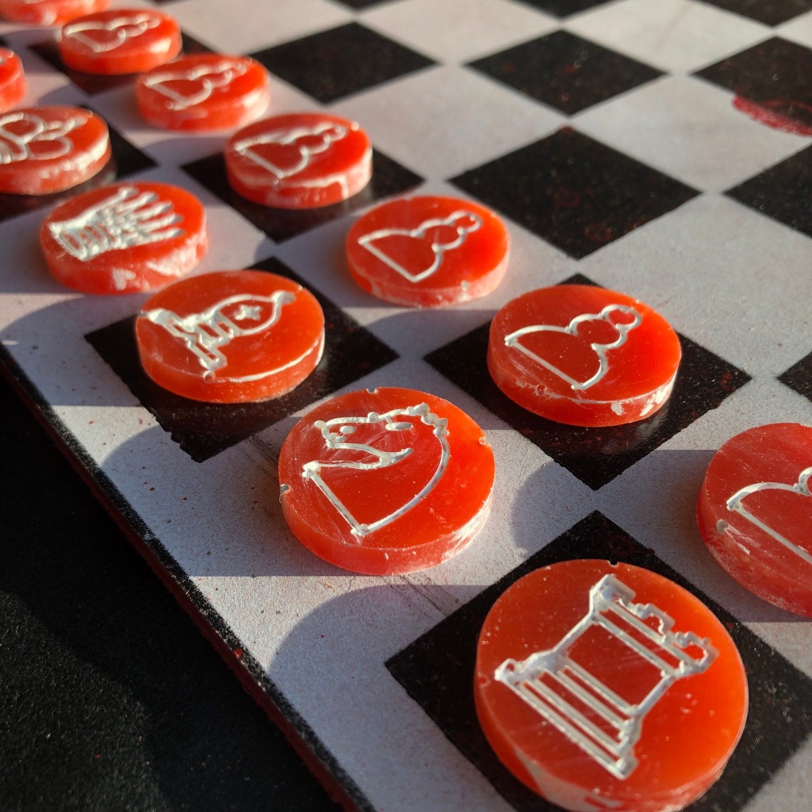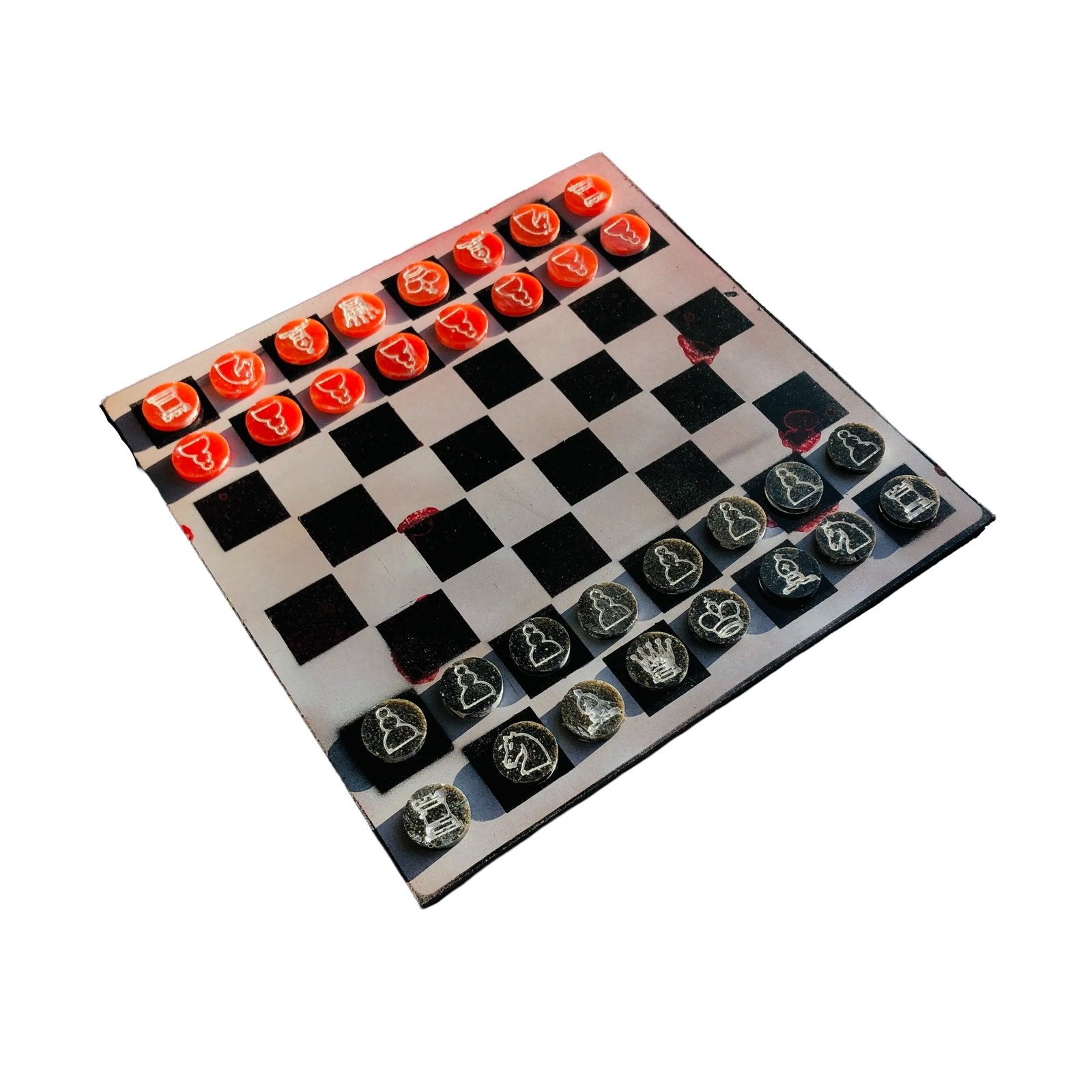 Introducing our exclusive Handcrafted Hardboard Chess Set, meticulously designed with precision and care. Measuring 12 inches by 12 inches, this chess set features a beautifully painted hardwood board that doubles as a work of art. Each set is a unique, one-of-a-kind creation, crafted by hand to ensure that no two sets are alike. Elevate your gaming experience with this exceptional chess set that combines vibrant design with the touch of artisan craftsmanship.