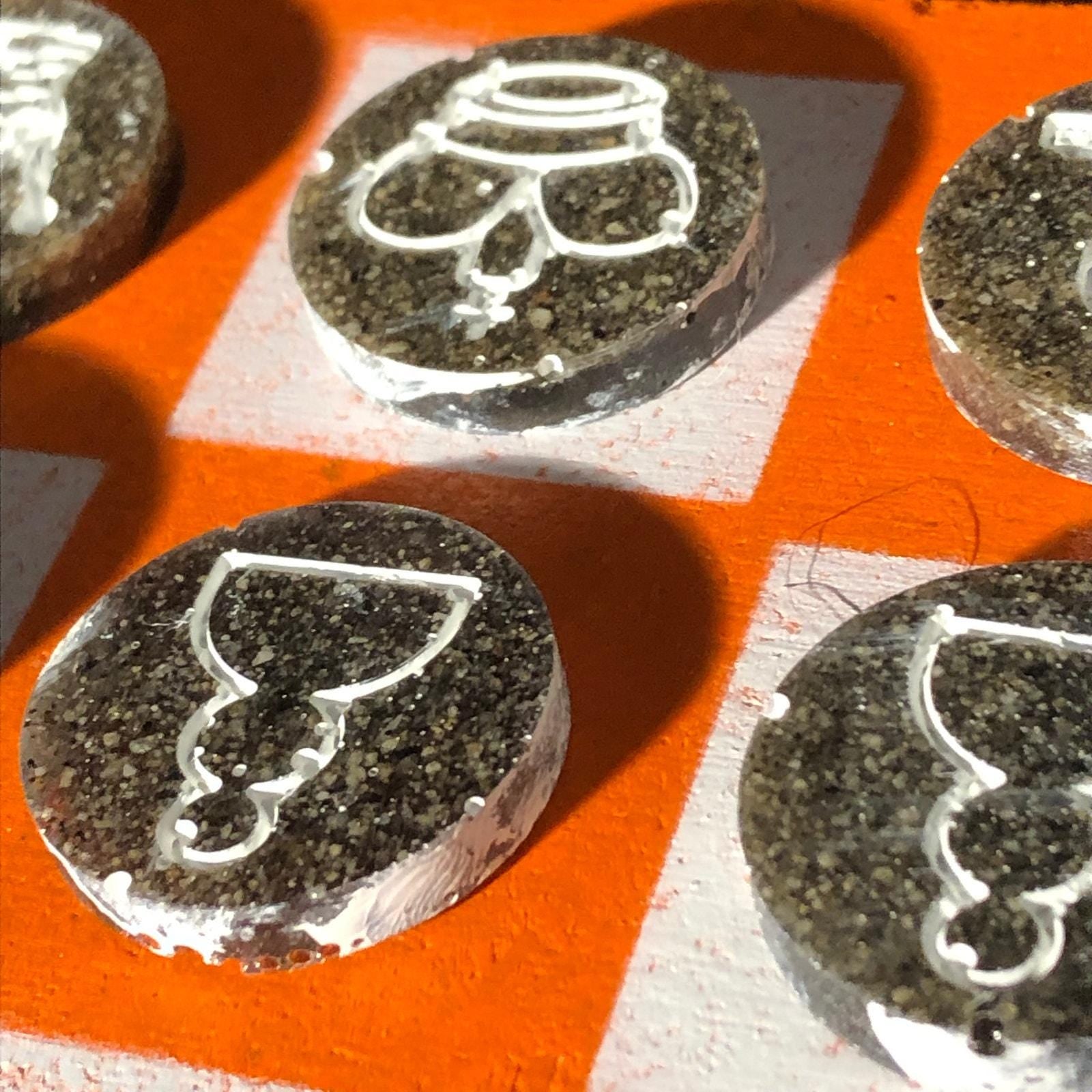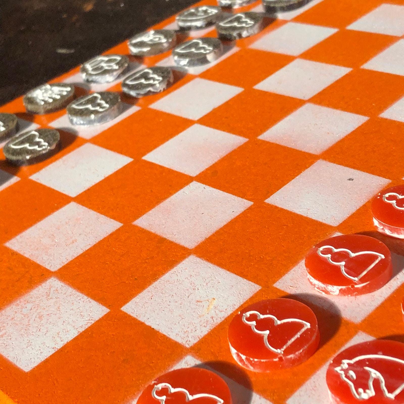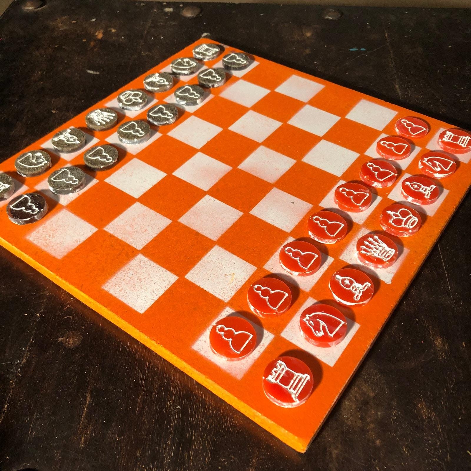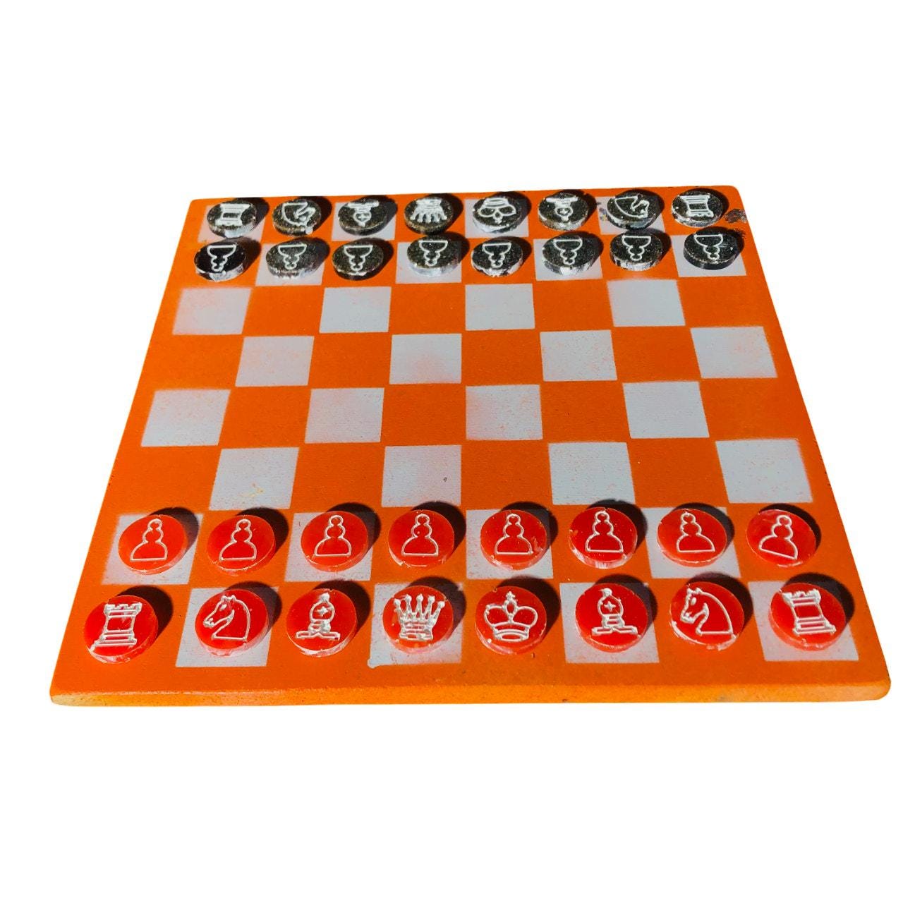 Introducing our exclusive Handcrafted Wooden Chess Set, meticulously designed with precision and care. Measuring 12 inches by 12 inches, this chess set features a beautifully painted Particle Board board that doubles as a work of art. Each set is a unique, one-of-a-kind creation, crafted by hand to ensure that no two sets are alike. Elevate your gaming experience with this exceptional chess set that combines vibrant design with the touch of artisan craftsmanship. This chess board comes with chess pieces.