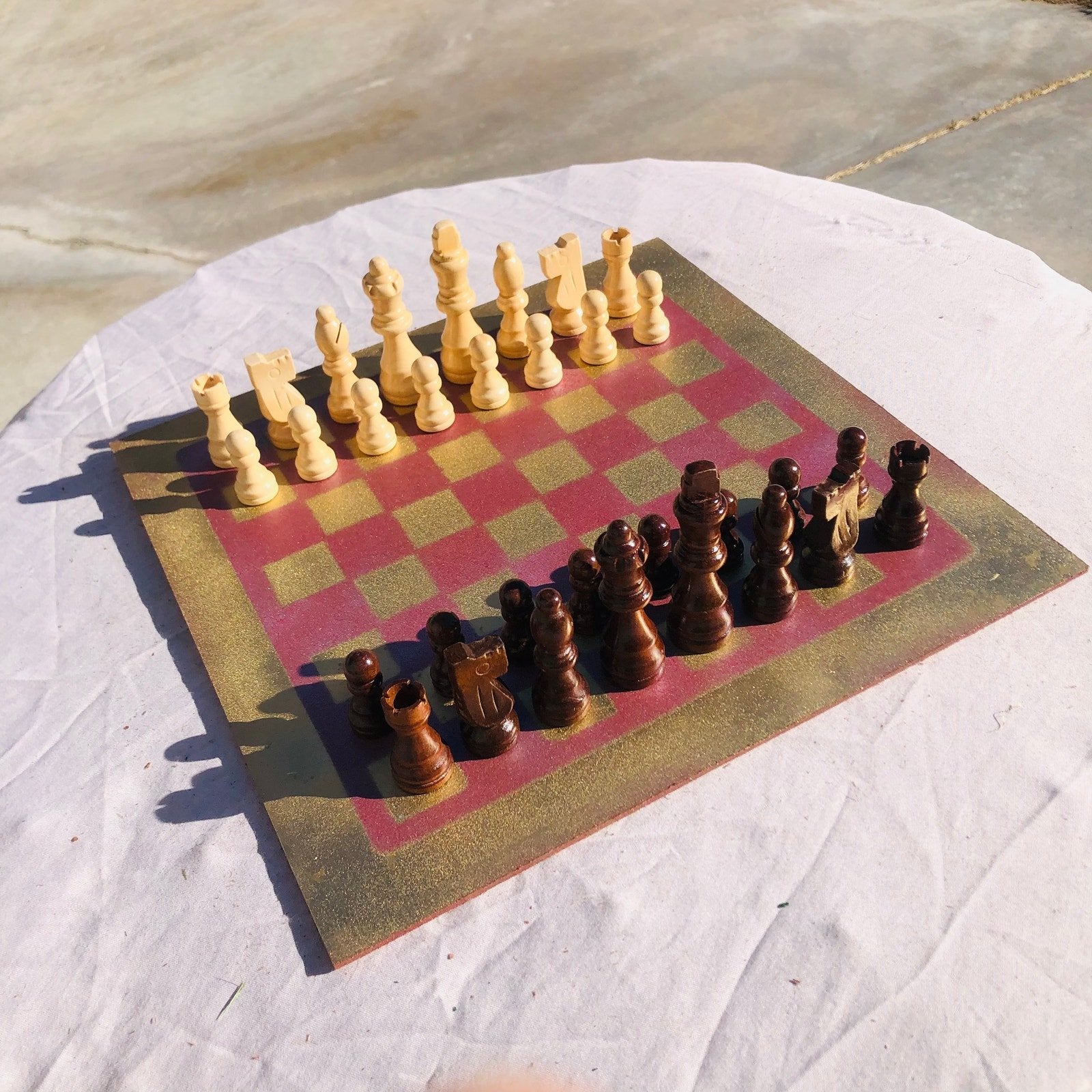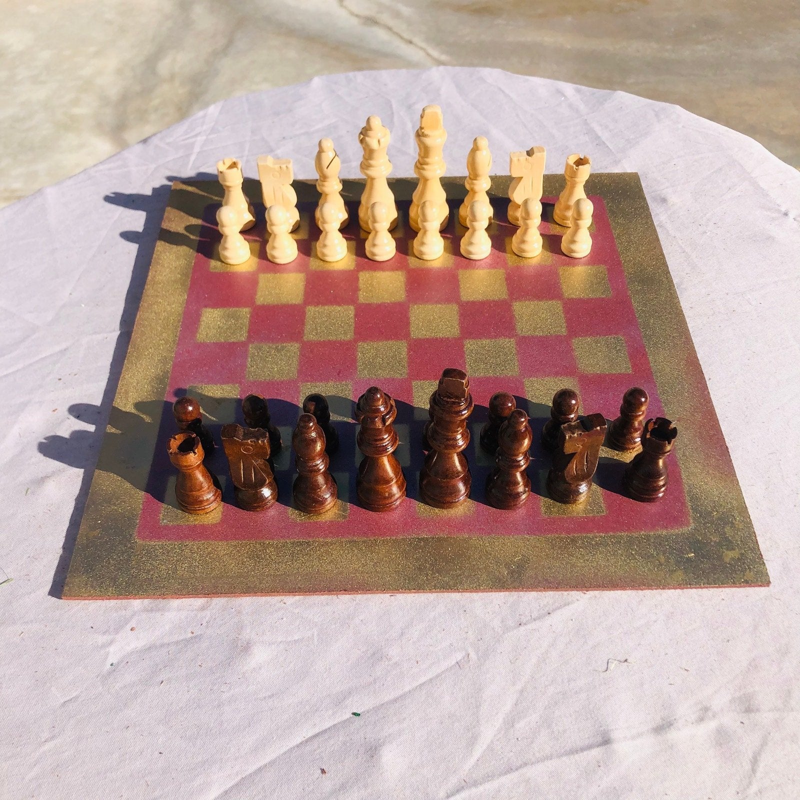 Introducing our exclusive Handcrafted Hardboard Chess Set, meticulously designed with precision and care. Measuring 12 inches by 12 inches, this chess set features a beautifully painted hardwood board that doubles as a work of art. Each set is a unique, one-of-a-kind creation, crafted by hand to ensure that no two sets are alike. Elevate your gaming experience with this exceptional chess set that combines vibrant design with the touch of artisan craftsmanship.