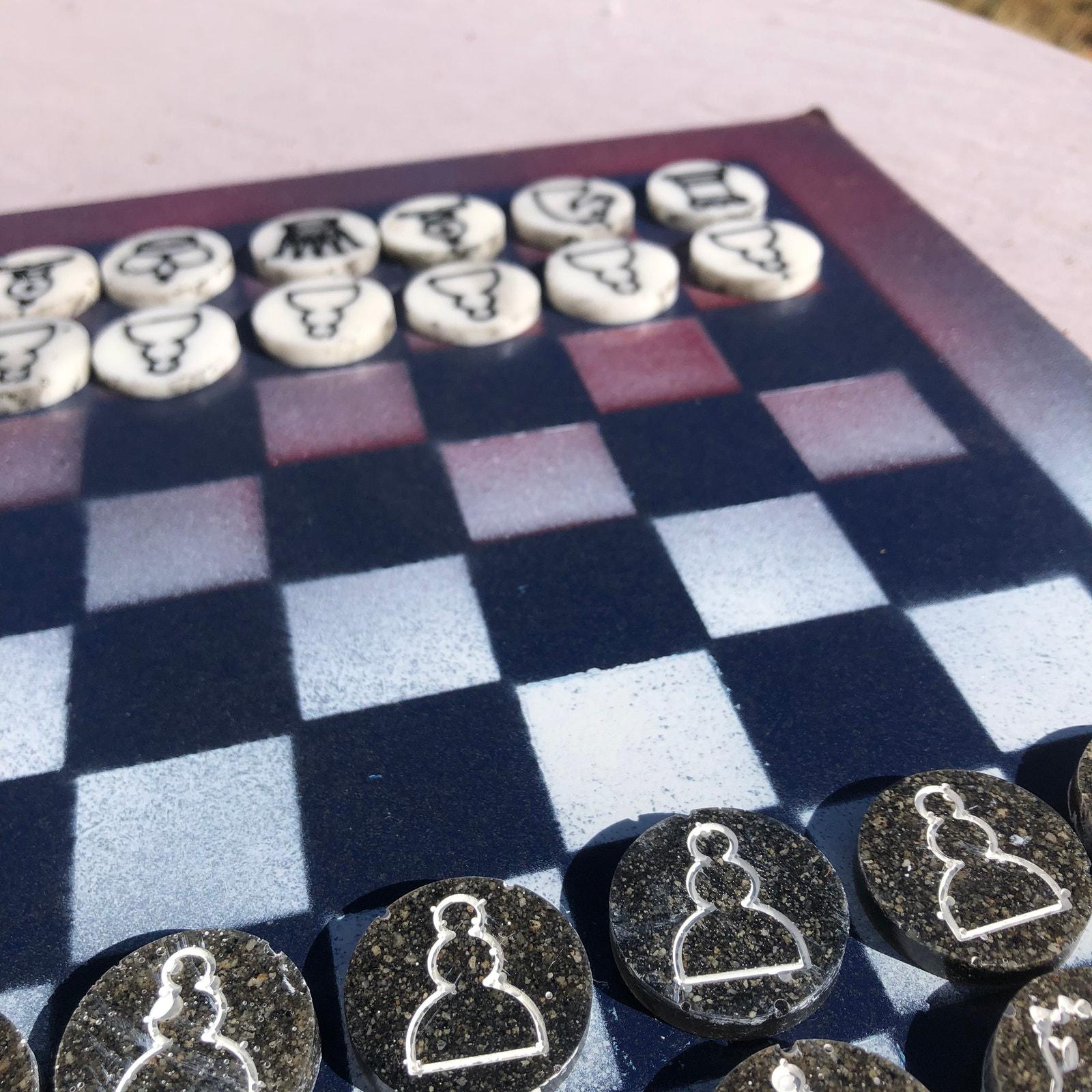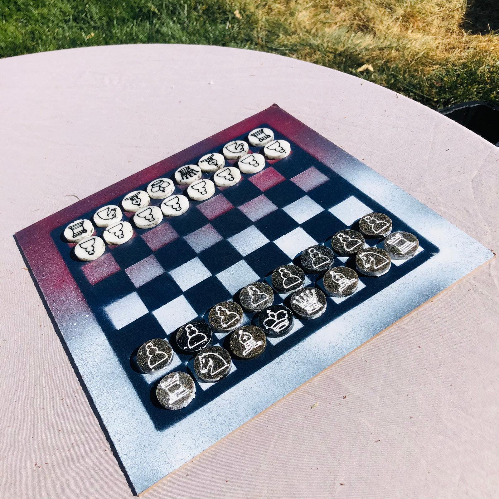 Introducing our exclusive Handcrafted Hardboard Chess Set, meticulously designed with precision and care. Measuring 12 inches by 12 inches, this chess set features a beautifully painted hardwood board that doubles as a work of art. Each set is a unique, one-of-a-kind creation, crafted by hand to ensure that no two sets are alike. Elevate your gaming experience with this exceptional chess set that combines vibrant design with the touch of artisan craftsmanship. This chess board comes with chess pieces.