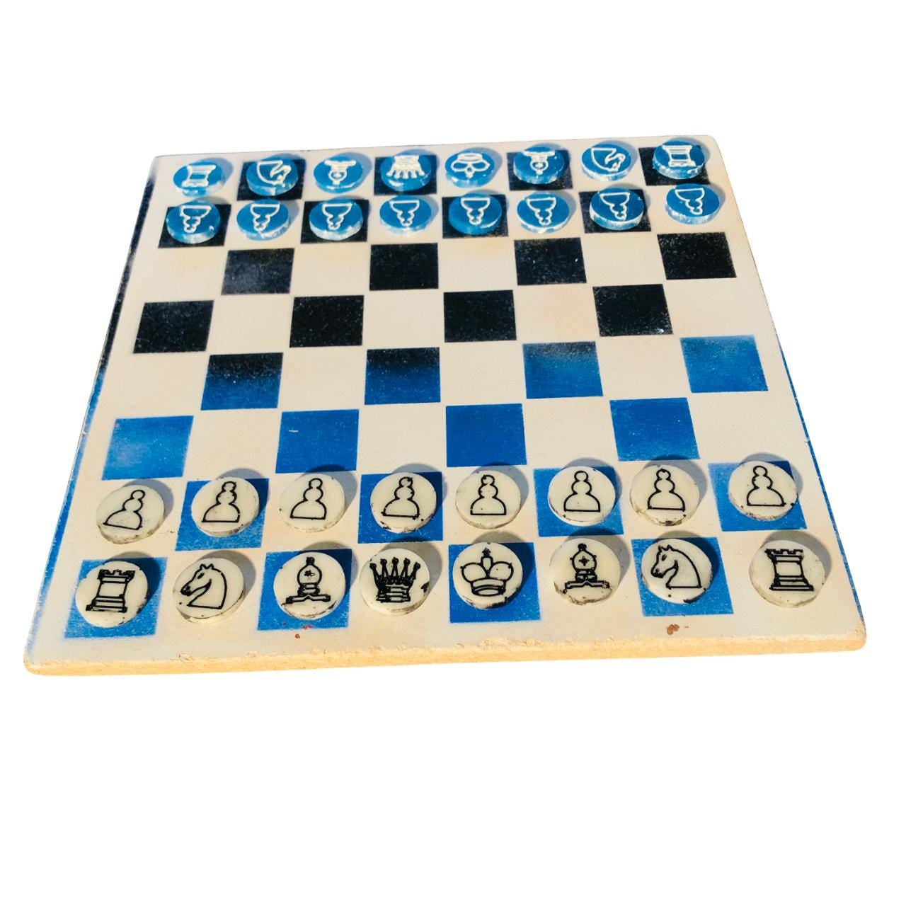 Introducing our exclusive Handcrafted Wooden Chess Set, meticulously designed with precision and care. Measuring 12 inches by 12 inches, this chess set features a beautifully painted Particle Board board that doubles as a work of art. Each set is a unique, one-of-a-kind creation, crafted by hand to ensure that no two sets are alike. Elevate your gaming experience with this exceptional chess set that combines vibrant design with the touch of artisan craftsmanship. This chess board comes with chess pieces.