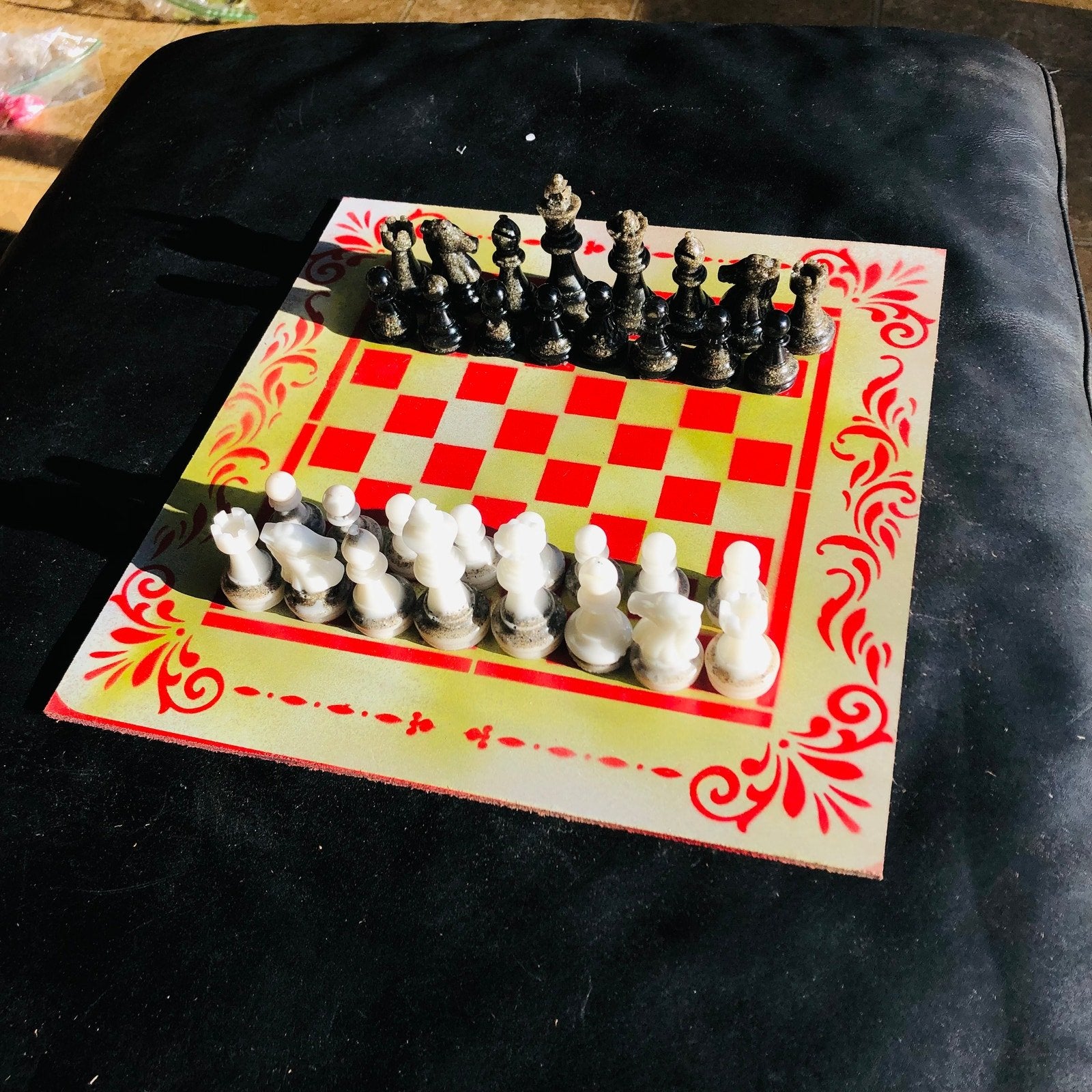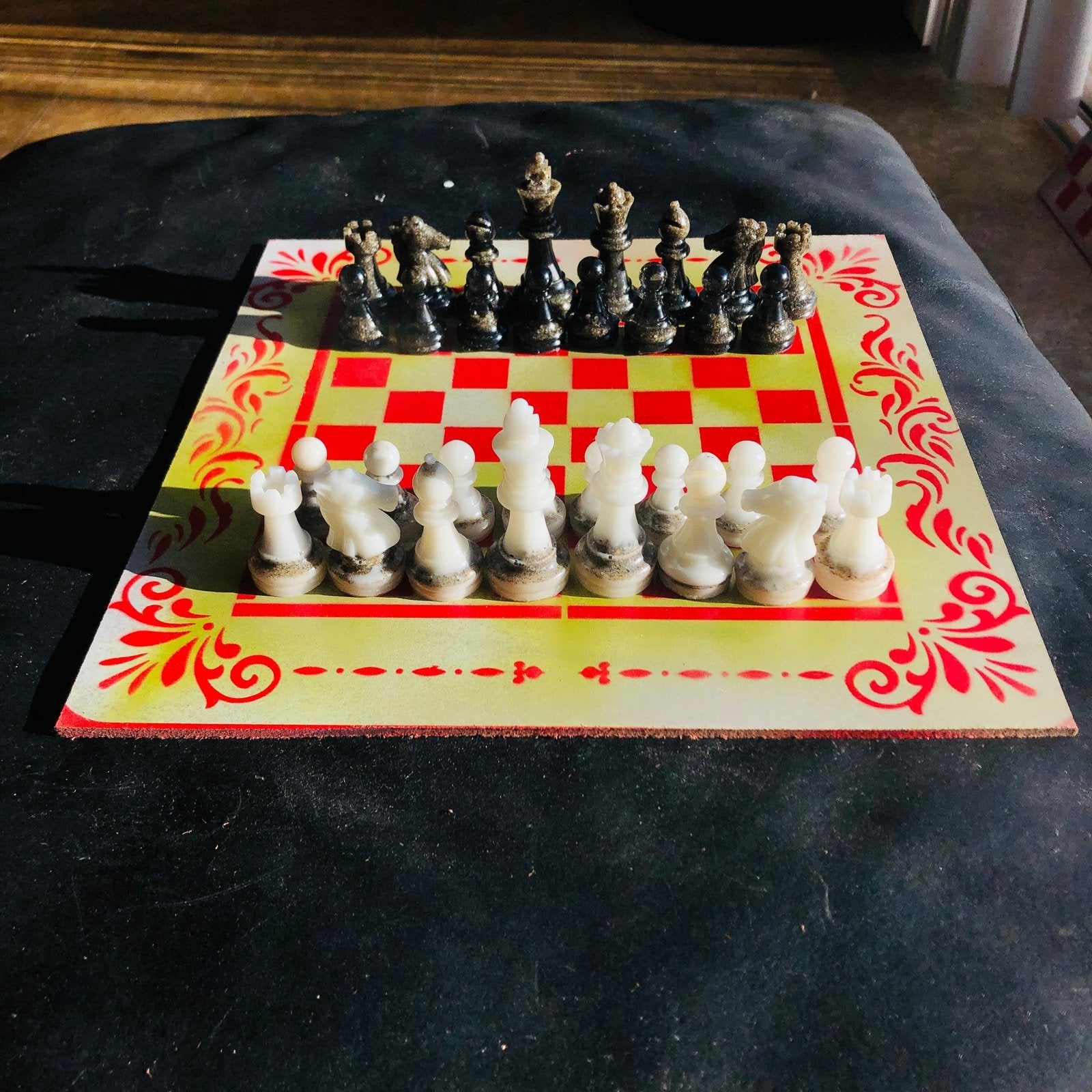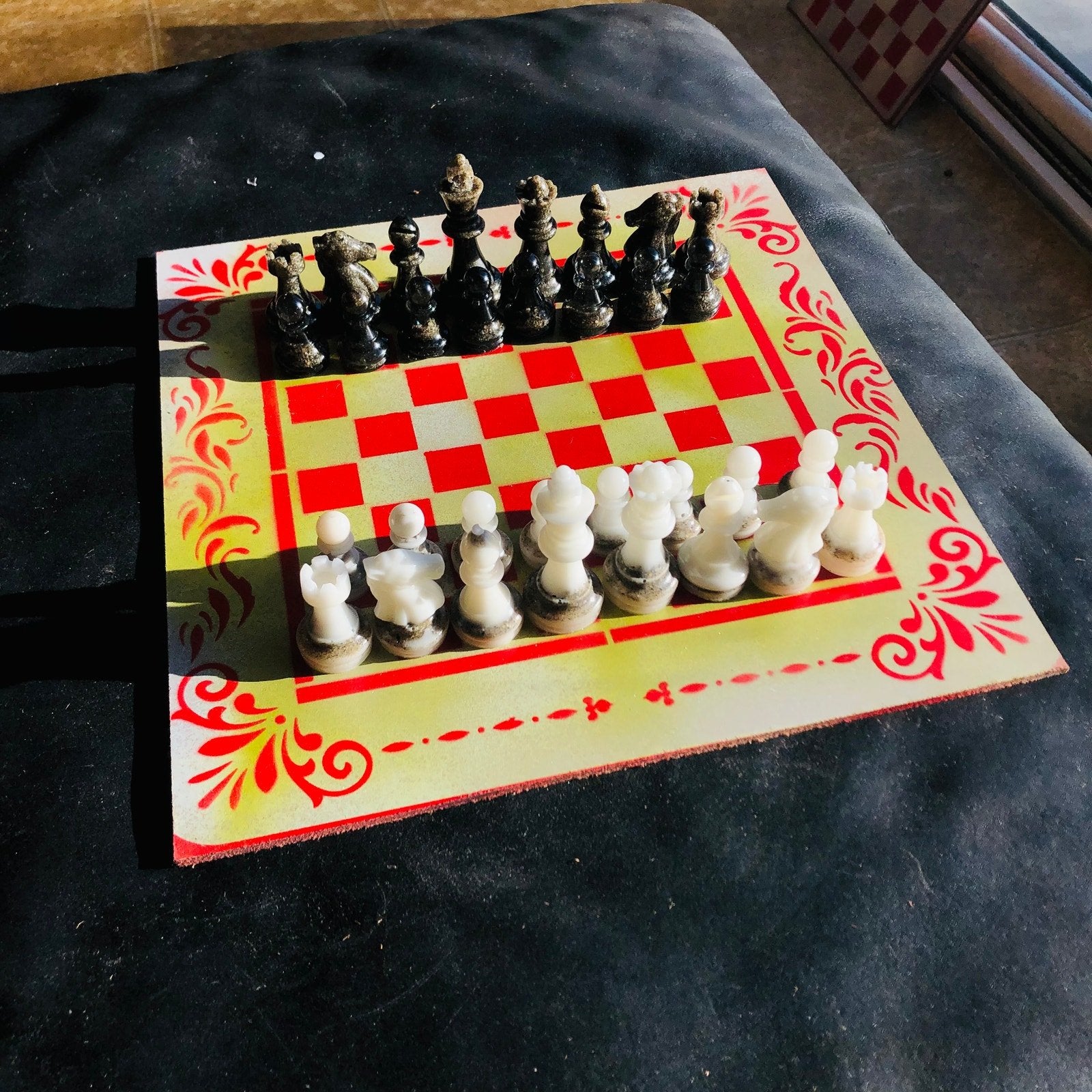Introducing our exclusive Handcrafted Hardboard Chess Set, meticulously designed with precision and care. Measuring 12 inches by 12 inches, this chess set features a beautifully painted hardwood board that doubles as a work of art. Each set is a unique, one-of-a-kind creation, crafted by hand to ensure that no two sets are alike. Elevate your gaming experience with this exceptional chess set that combines vibrant design with the touch of artisan craftsmanship.