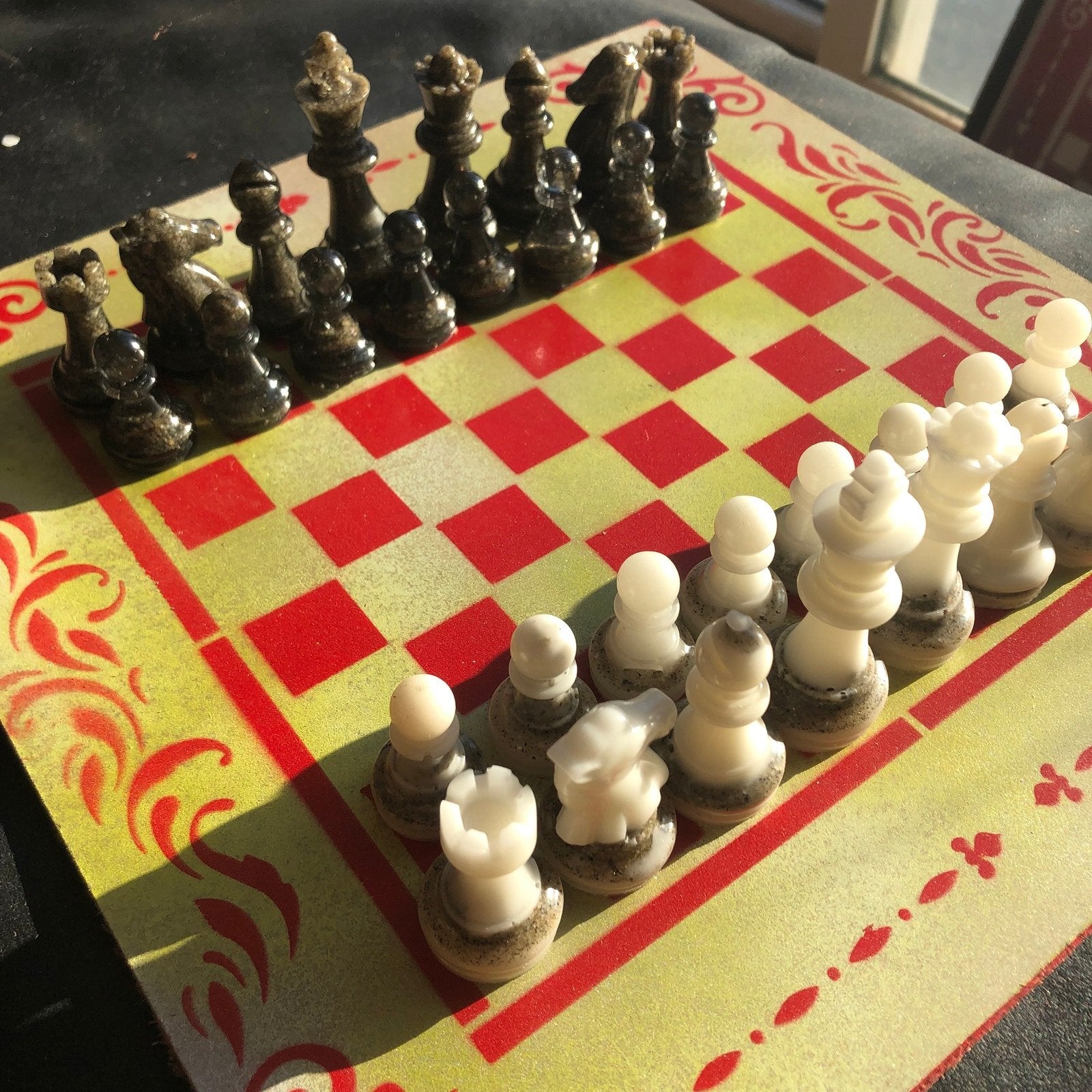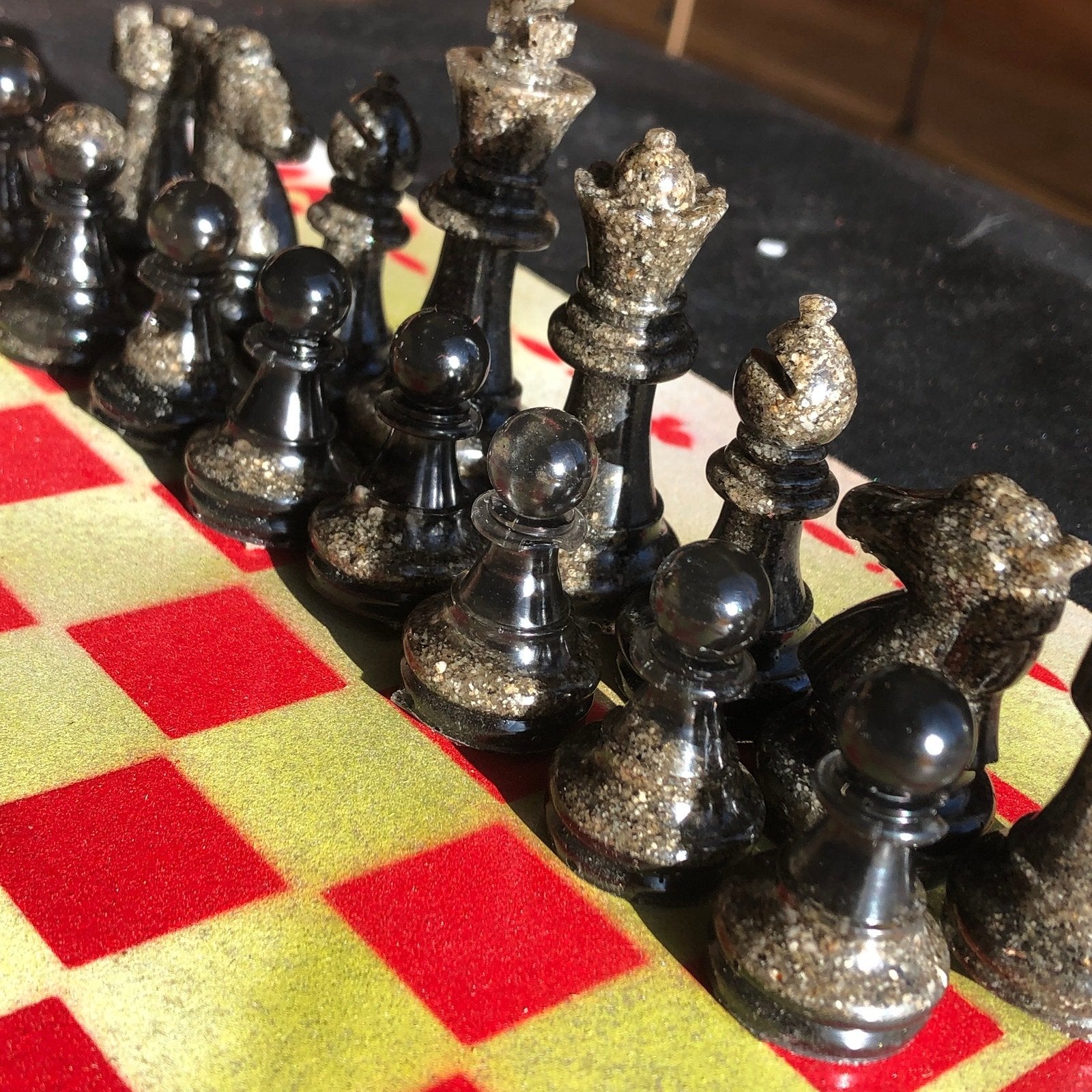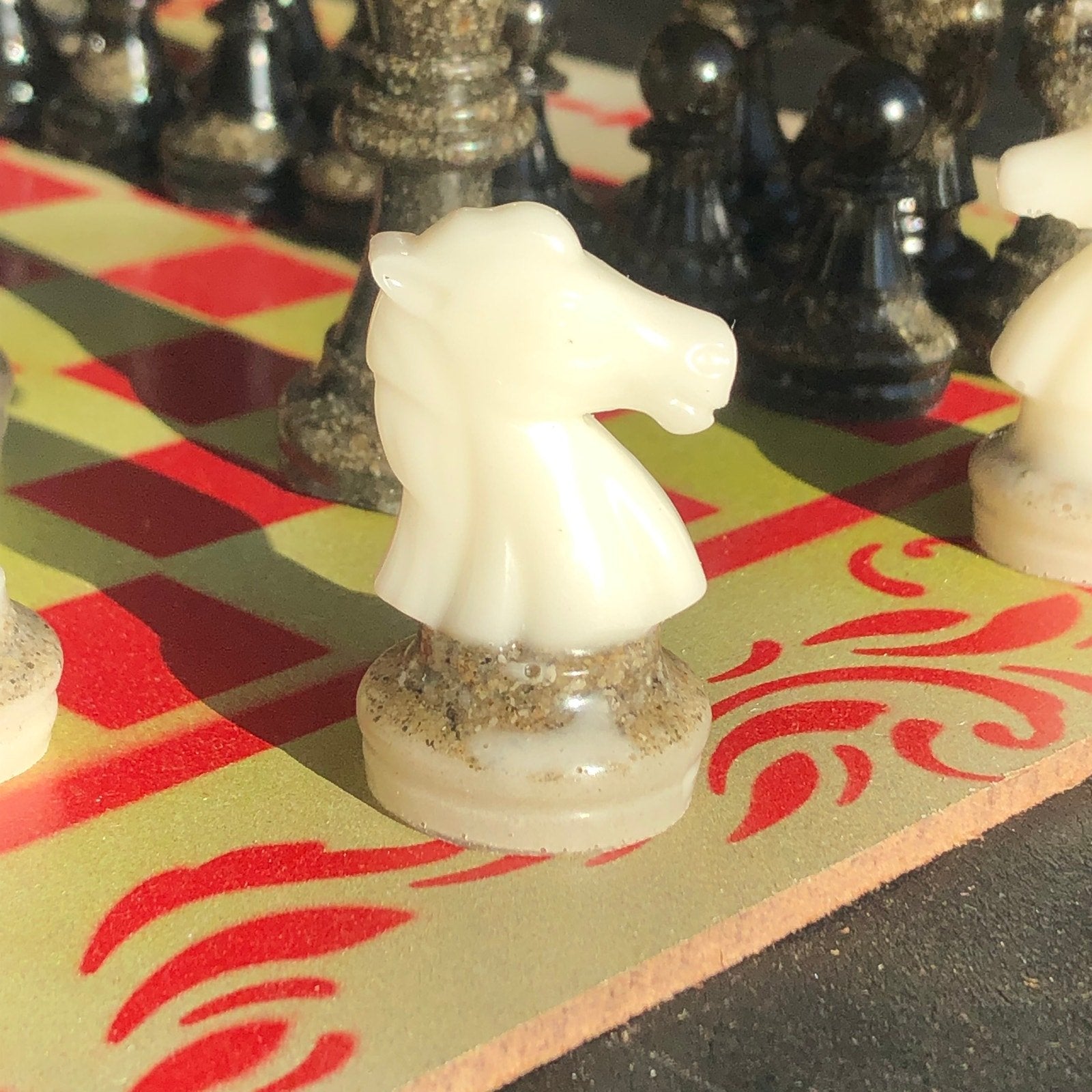 Introducing our exclusive Handcrafted Hardboard Chess Set, meticulously designed with precision and care. Measuring 12 inches by 12 inches, this chess set features a beautifully painted hardwood board that doubles as a work of art. Each set is a unique, one-of-a-kind creation, crafted by hand to ensure that no two sets are alike. Elevate your gaming experience with this exceptional chess set that combines vibrant design with the touch of artisan craftsmanship.