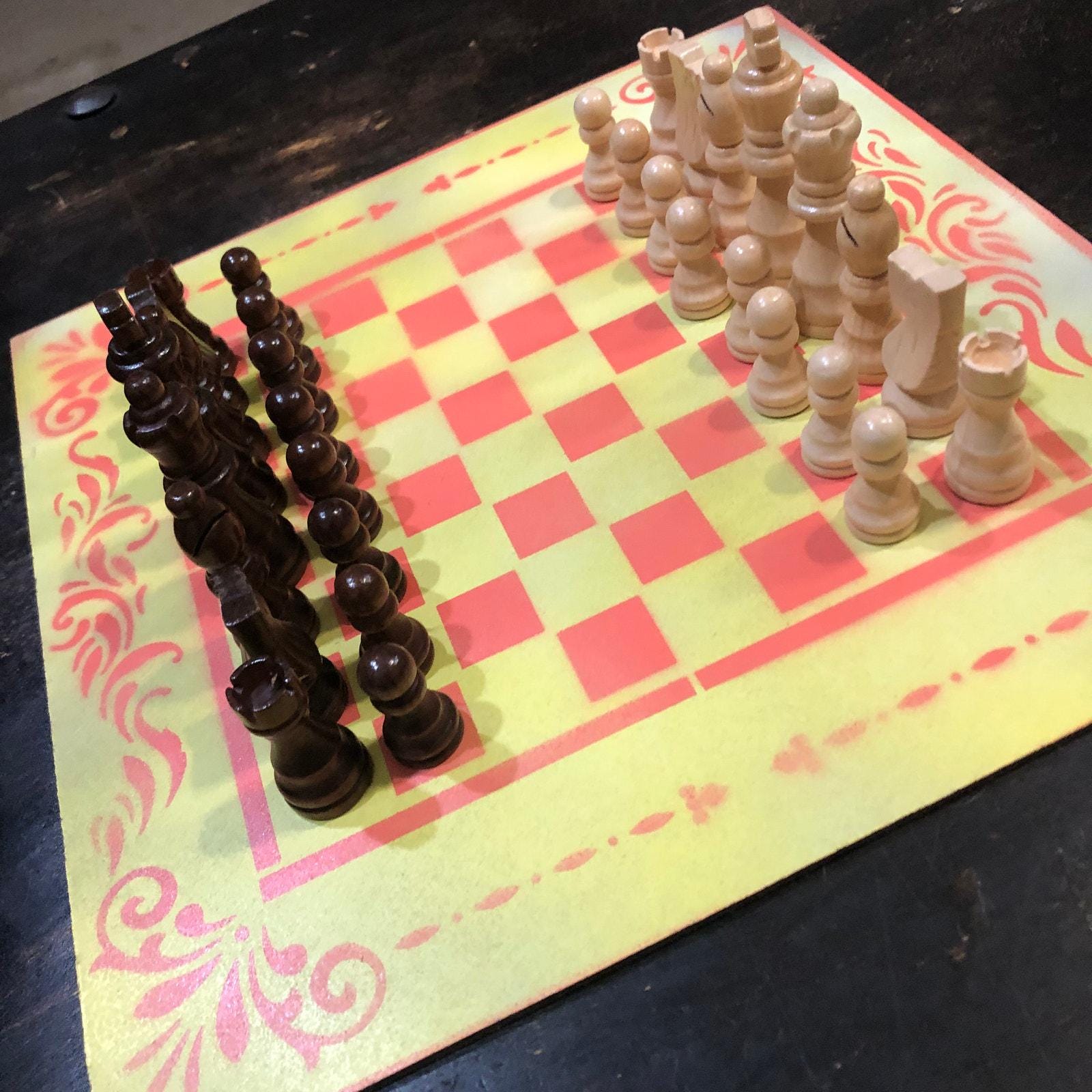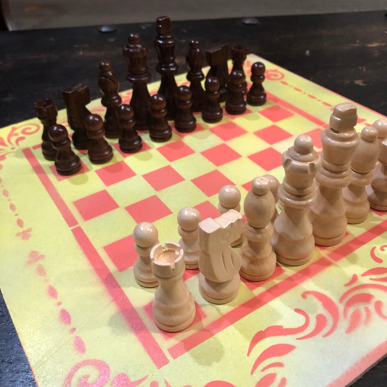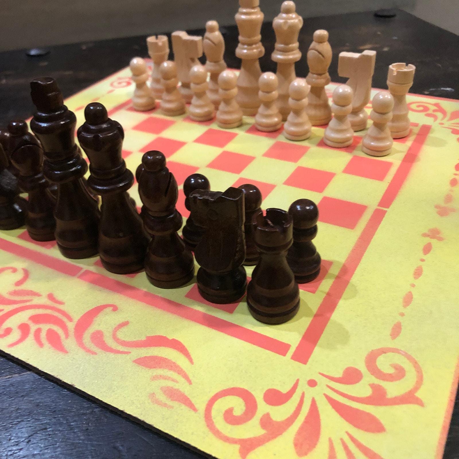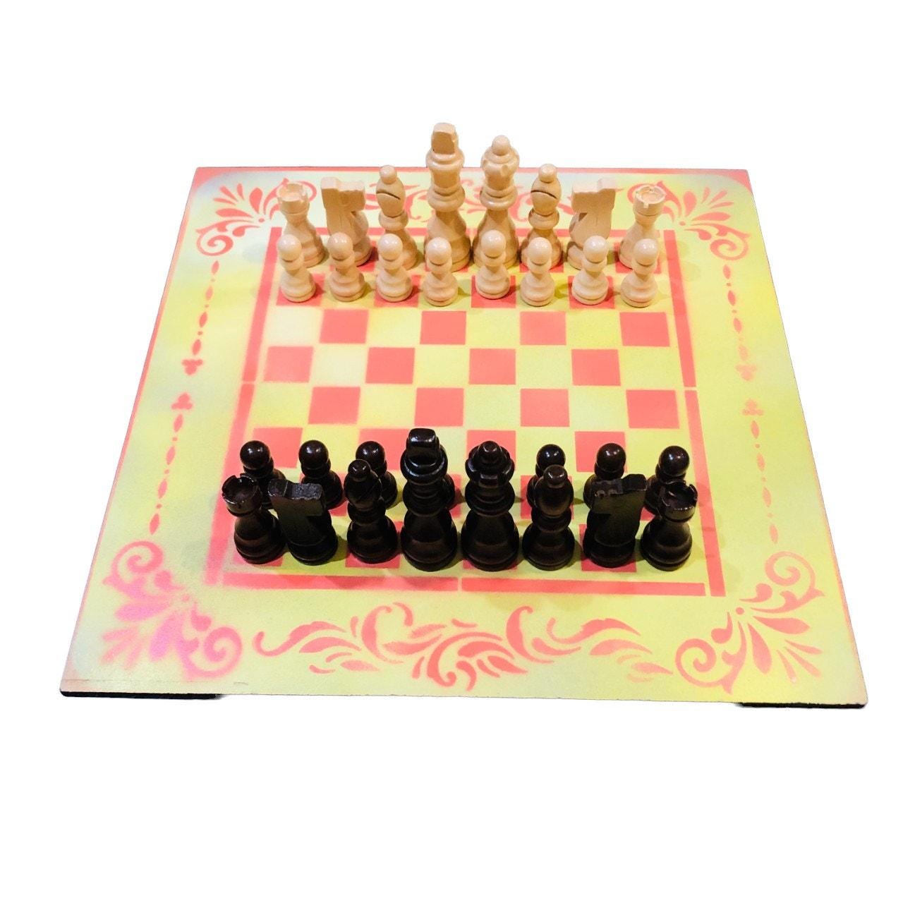 Introducing our exclusive Handcrafted Hardboard Chess Set, meticulously designed with precision and care. Measuring 12 inches by 12 inches, this chess set features a beautifully painted hardwood board that doubles as a work of art. Each set is a unique, one-of-a-kind creation, crafted by hand to ensure that no two sets are alike. Elevate your gaming experience with this exceptional chess set that combines vibrant design with the touch of artisan craftsmanship.