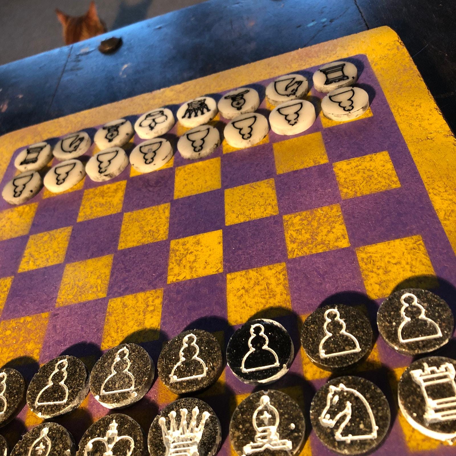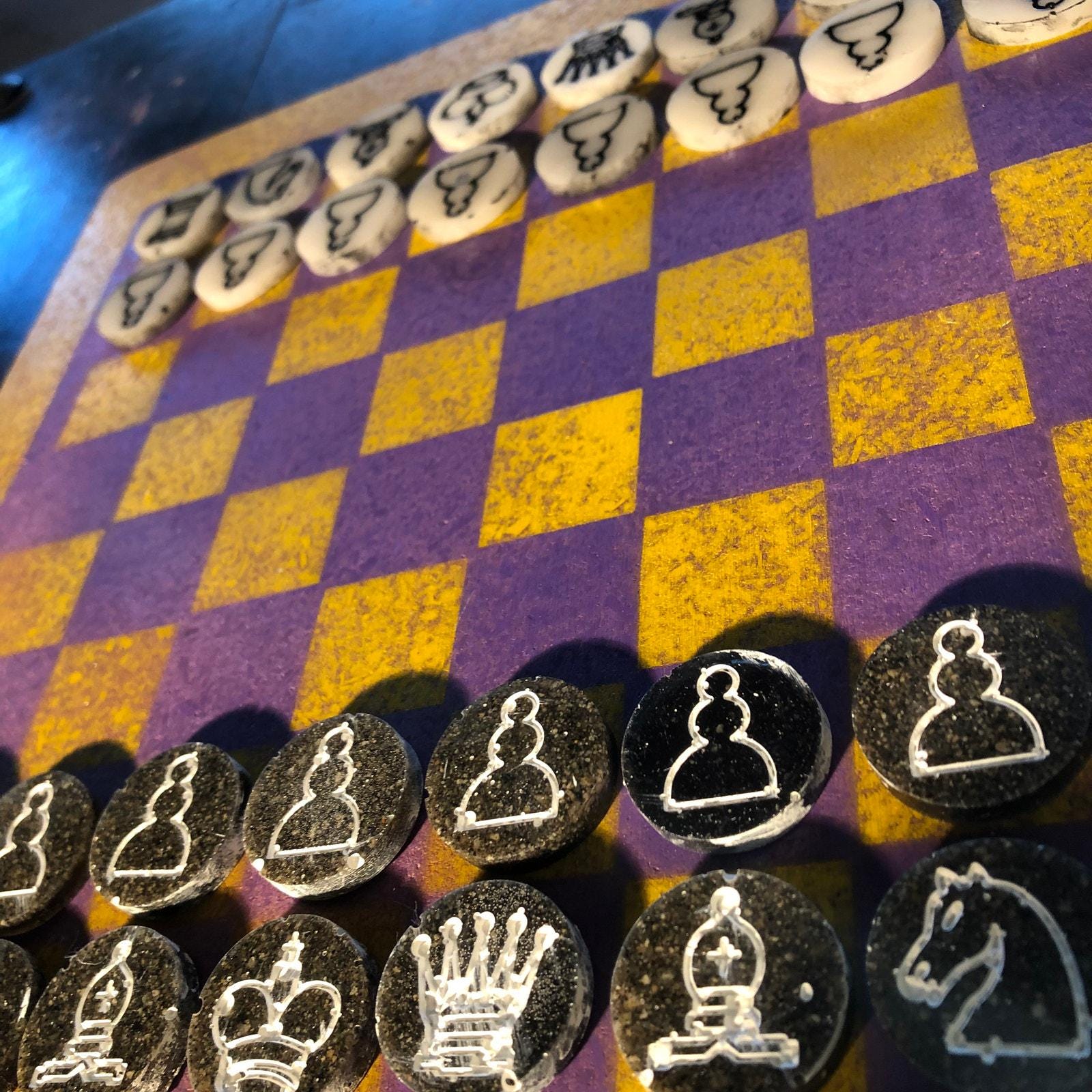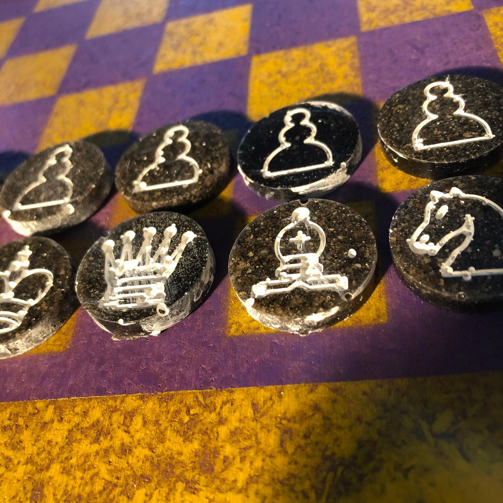 Chess Set - Yellow & Purple (Resin Pieces)