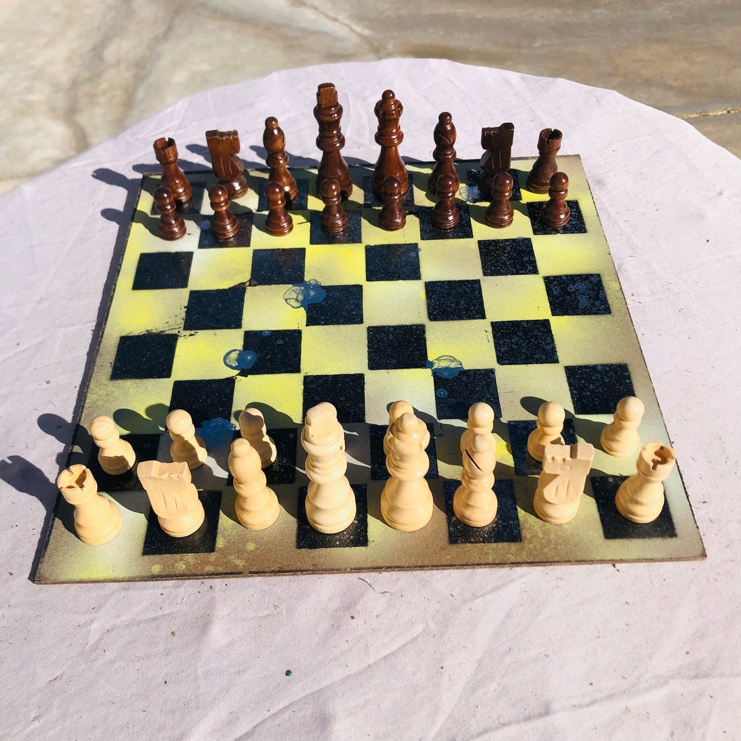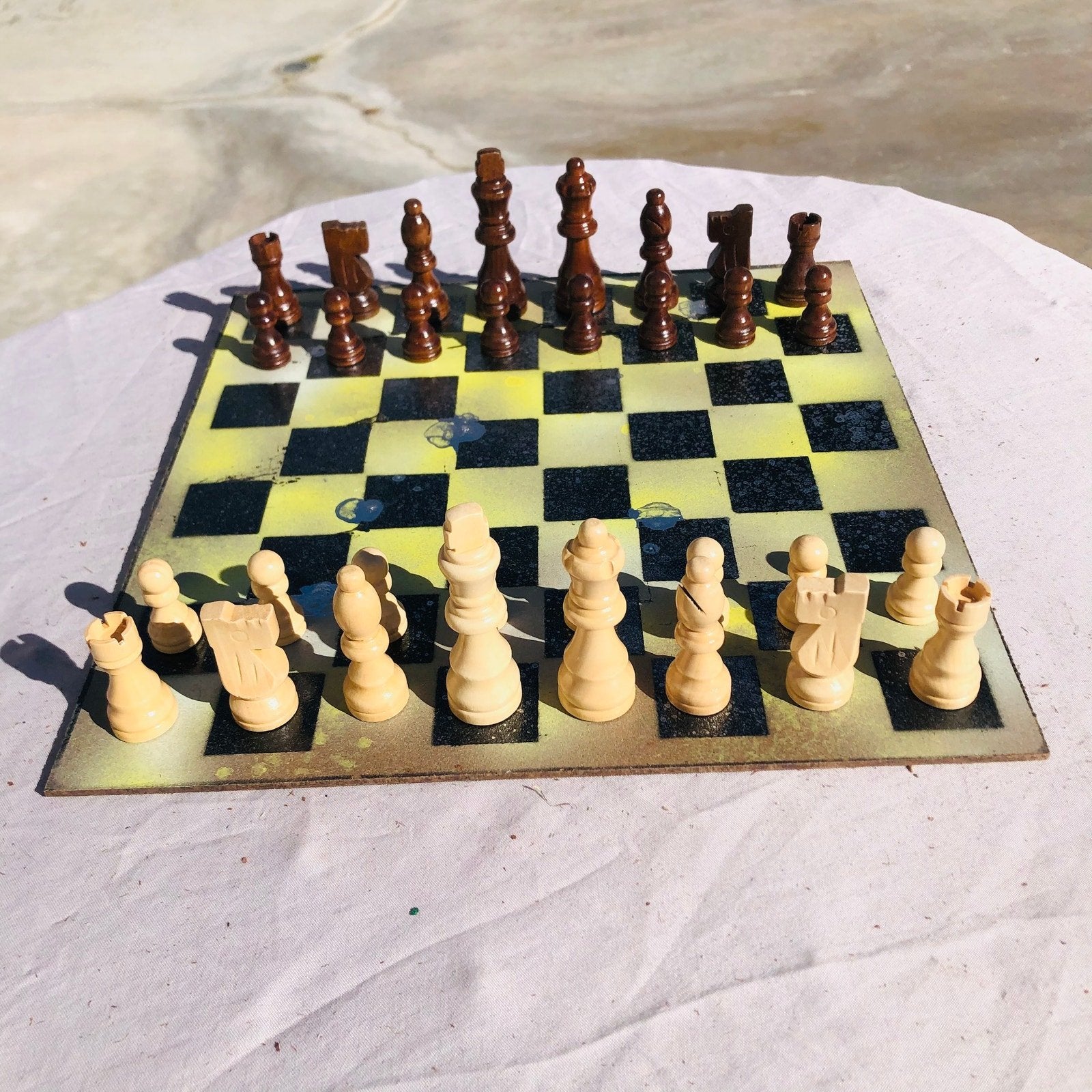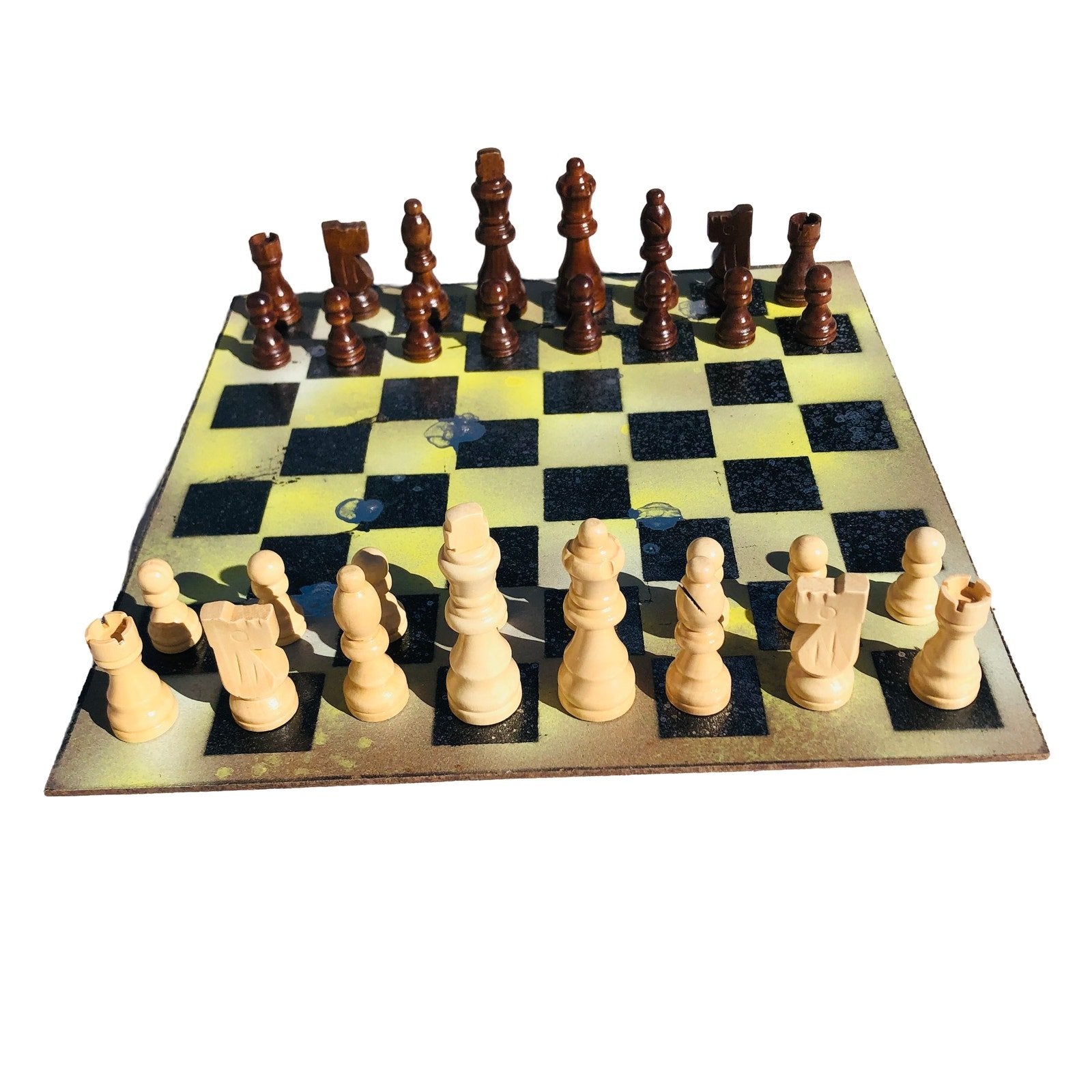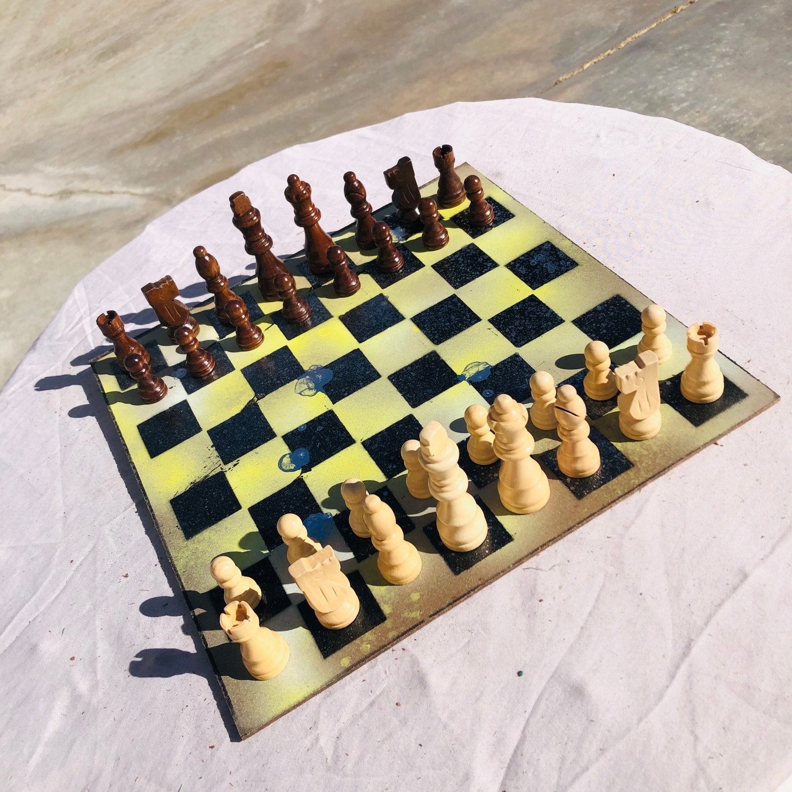 Introducing our exclusive Handcrafted Hardboard Chess Set, meticulously designed with precision and care. Measuring 12 inches by 12 inches, this chess set features a beautifully painted hardwood board that doubles as a work of art. Each set is a unique, one-of-a-kind creation, crafted by hand to ensure that no two sets are alike. Elevate your gaming experience with this exceptional chess set that combines vibrant design with the touch of artisan craftsmanship.