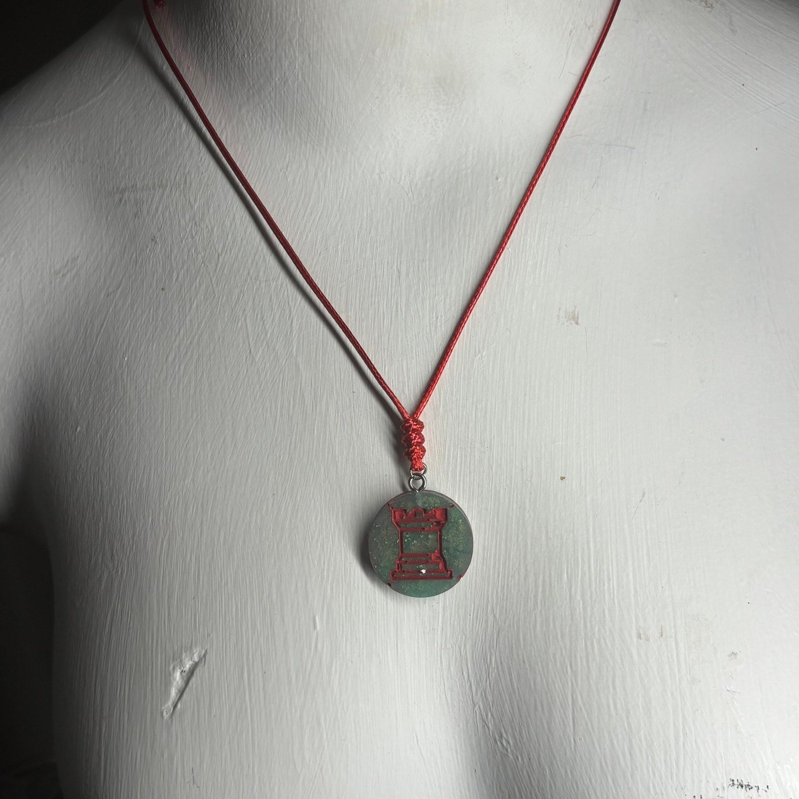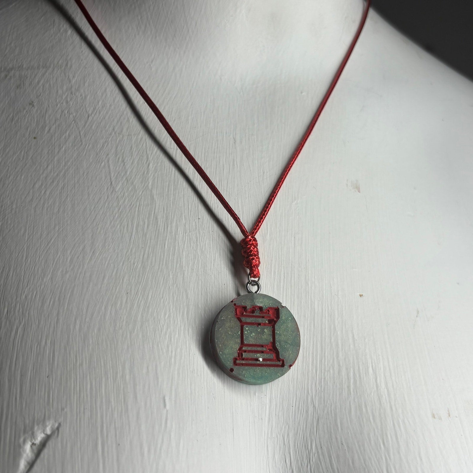Christmas Colored Rook - Handmade Resin Chess Necklace