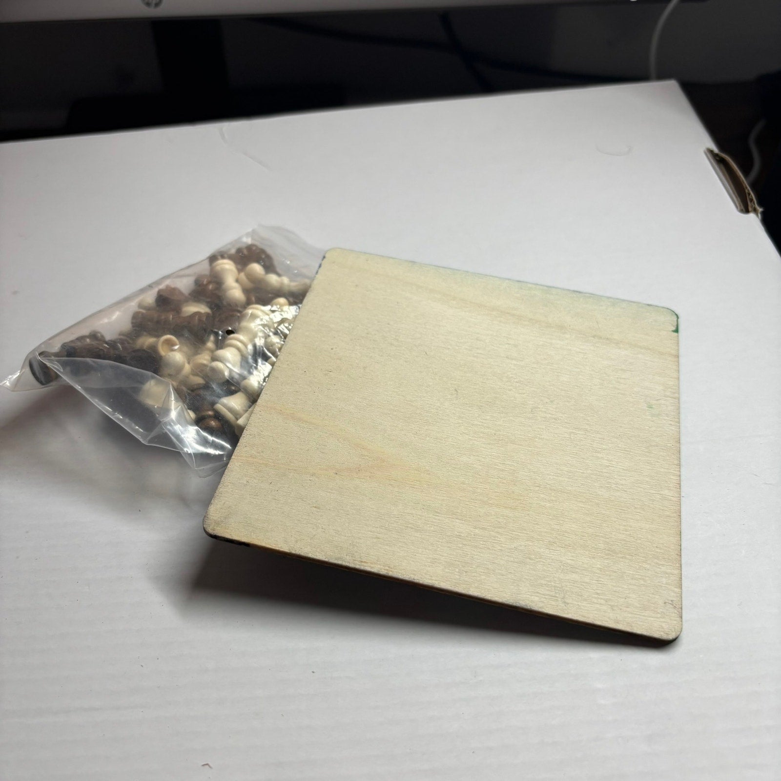 The chess pieces are small to match the board size, making it a delightful miniature set.