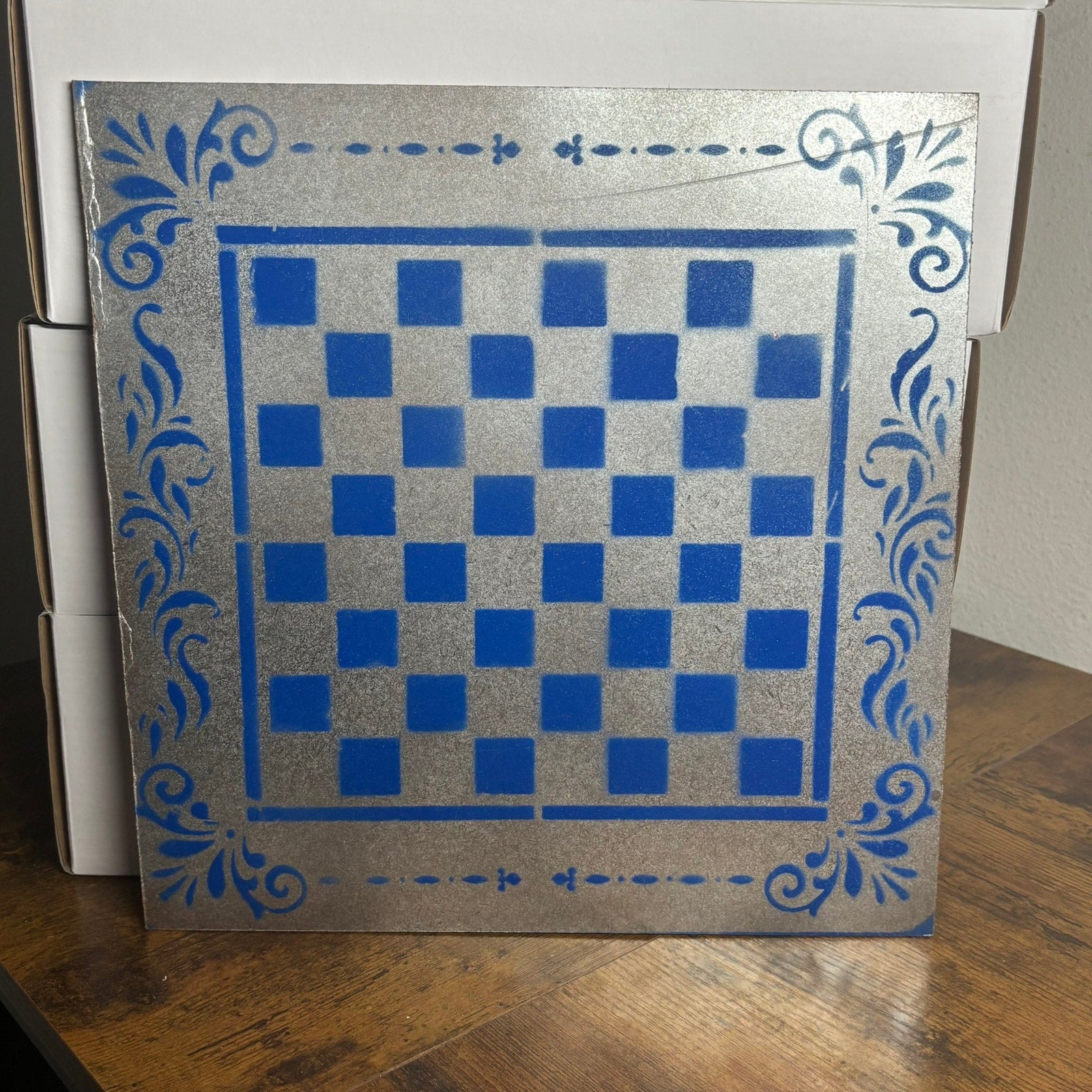 Chrome Blue - Painted Chess Board