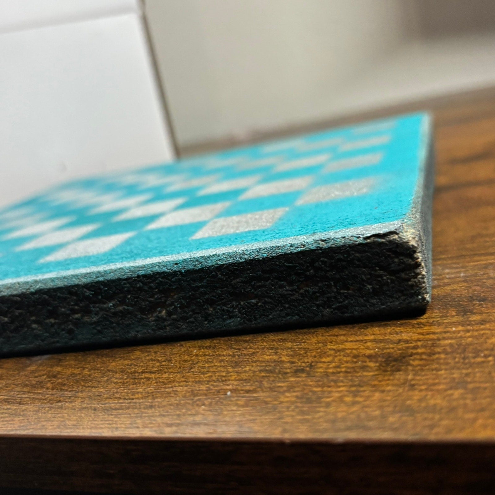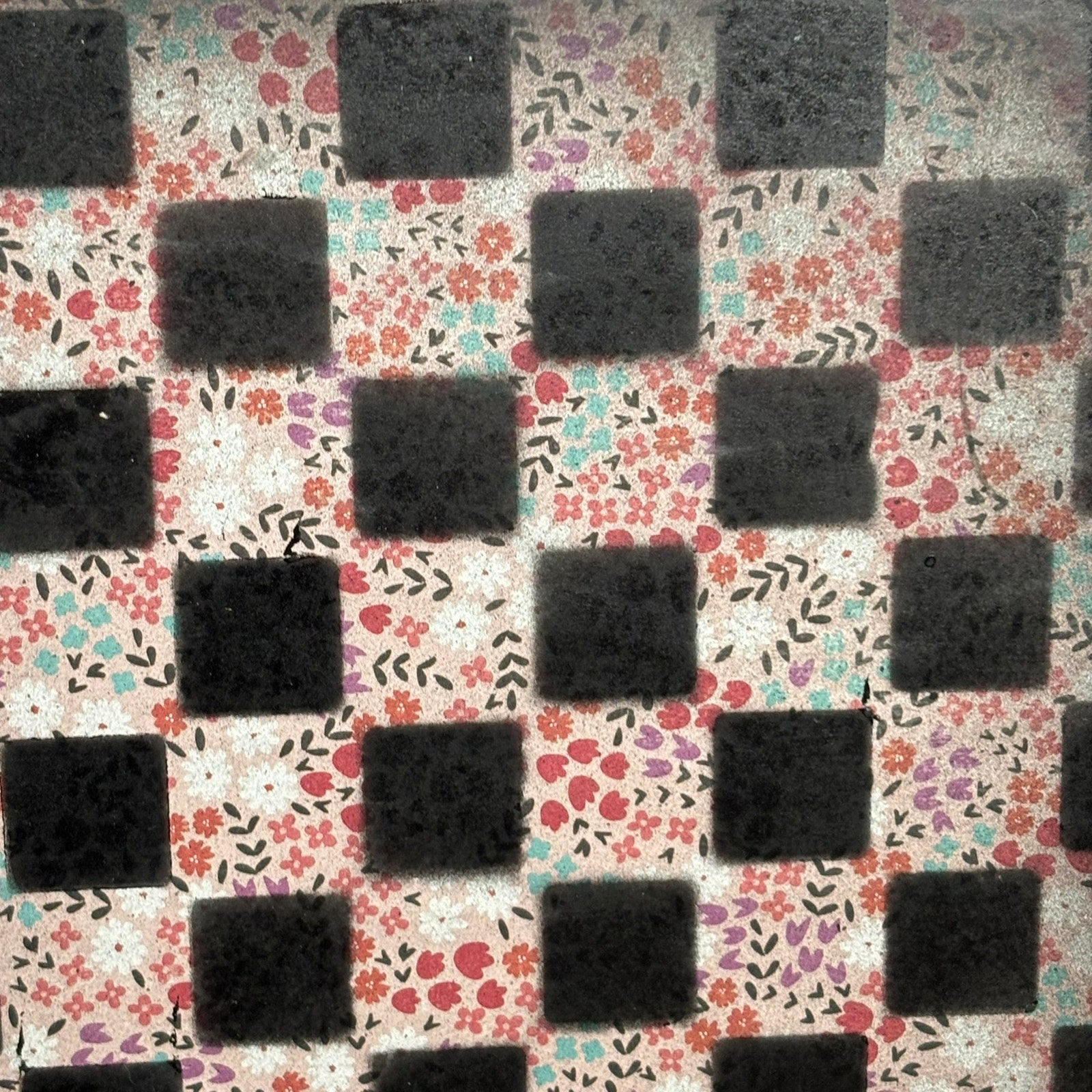 This is a one-of-a-kind, hand-painted chess board that will add a touch of artistry to your game. These are spray painted particle boards and have a double side. One side is painted and the backside is lined with scrapbook paper and has a different design. (The Scrapbook paper part is not meant to be played on but you can!)