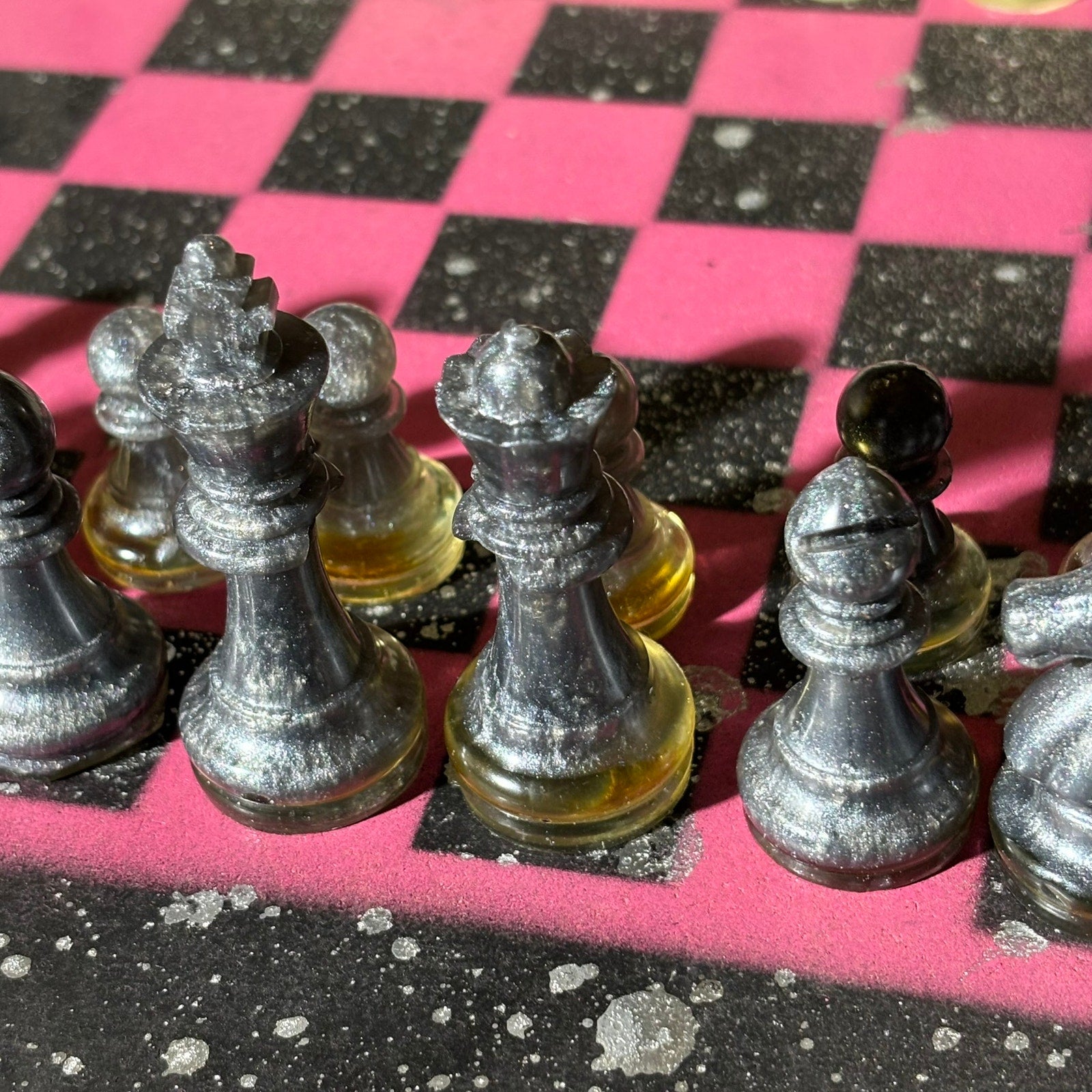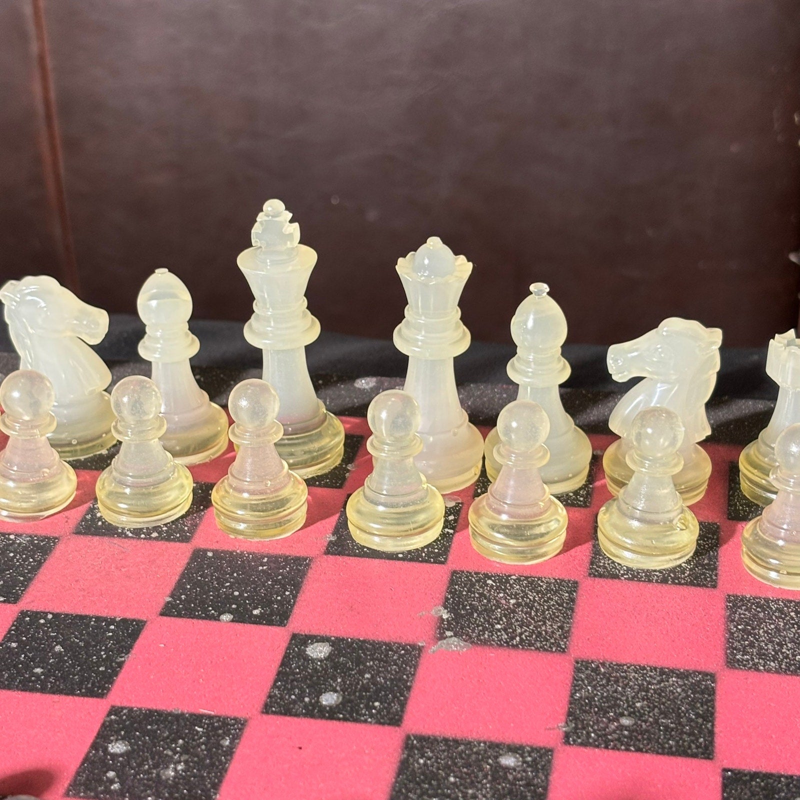 *** PLEASE READ: The resin pieces that have clear transparent parts will slowly turn royal amber as time goes on (Clear see through resin turn amber with time). Most of the sets are solid or colored so there is no need to expect a change at all, but some have clear transparent bottoms that will turn amber. I write this because some of our chess sets may not sell for a year or two and the photos are taken when the item is listed online. Meaning the photos will have slight difference. Rest assured, the amber is beautiful and vintage!