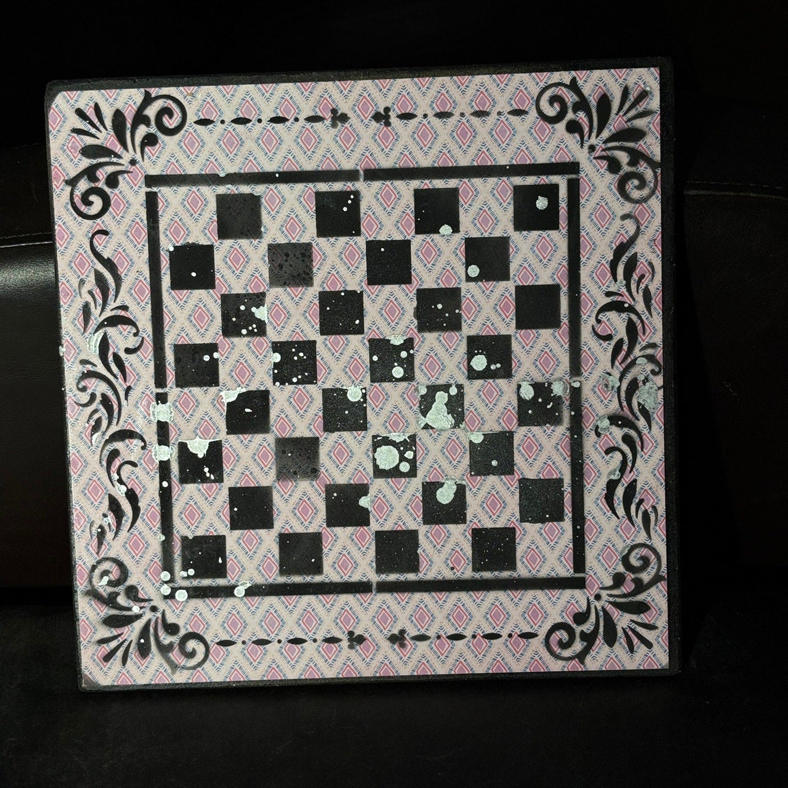 Each board features a layer of beautifully Scrapbook Paper Fused/Glued with particle board to give it a unique pretty pattern. We then paint squares onto the board to make them into fabulous chess boards. Made with a sturdy particle board base and smooth, beveled edges, this board is stunning.
