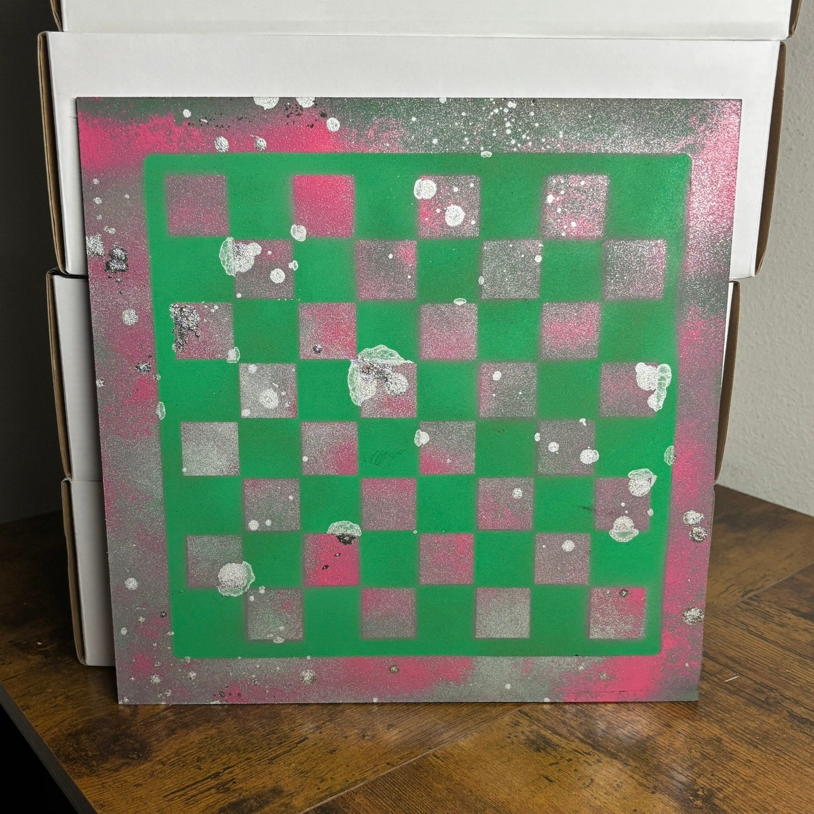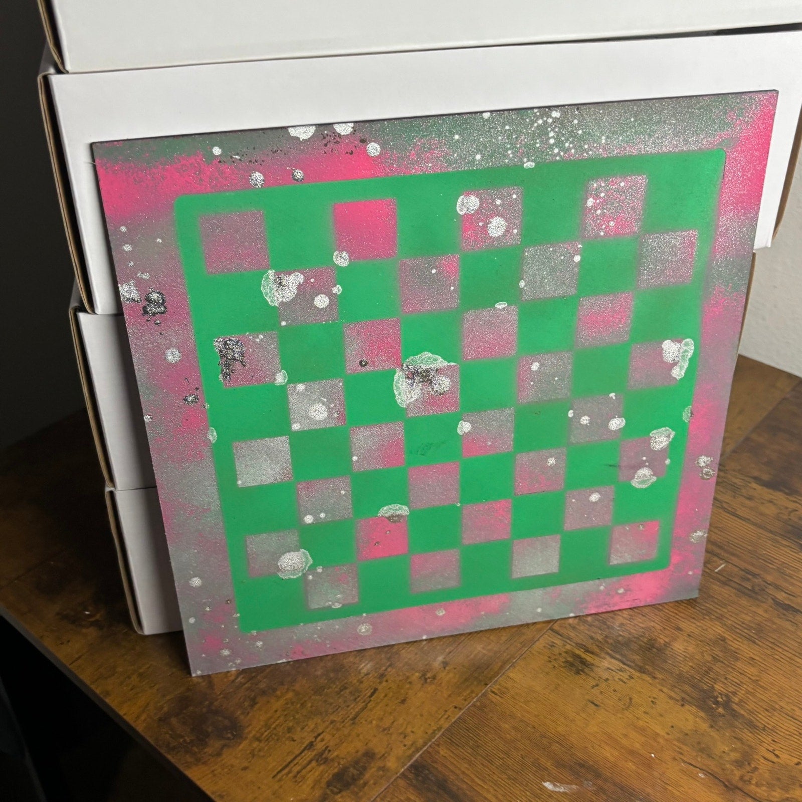 Each board features a beautifully Painted Hardboard with a unique pretty pattern. We then paint squares onto the board to make them into fabulous chess boards.